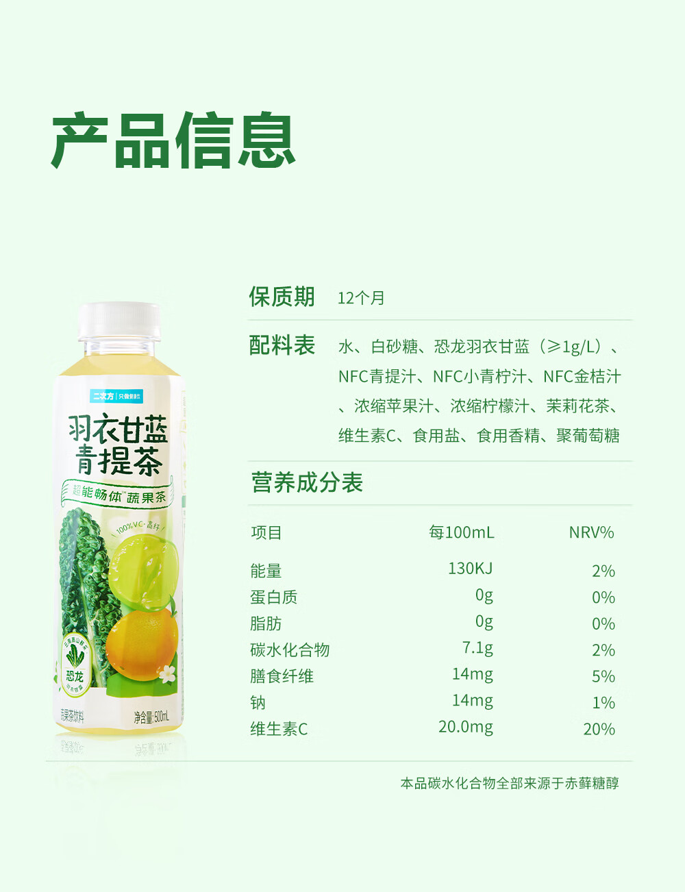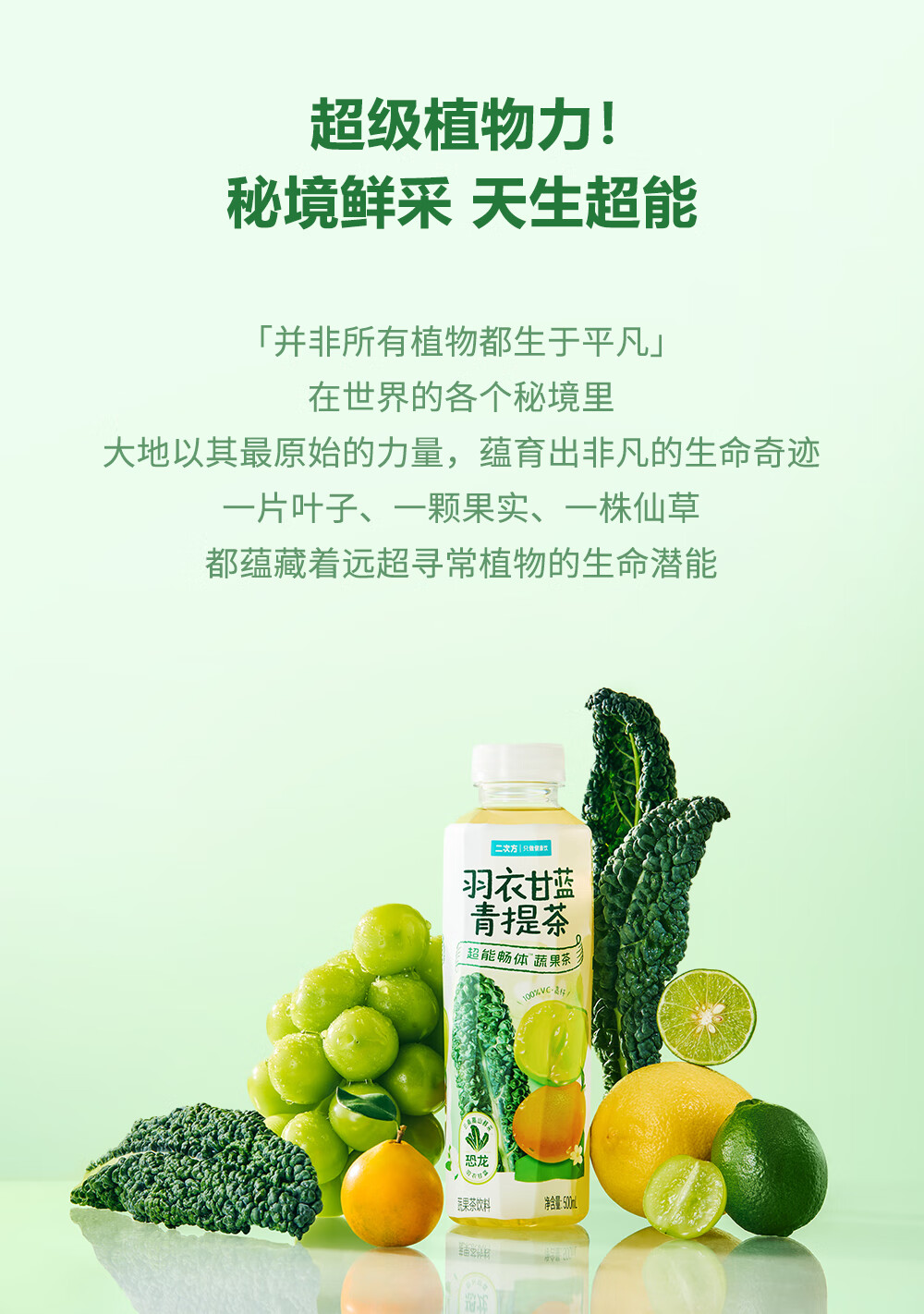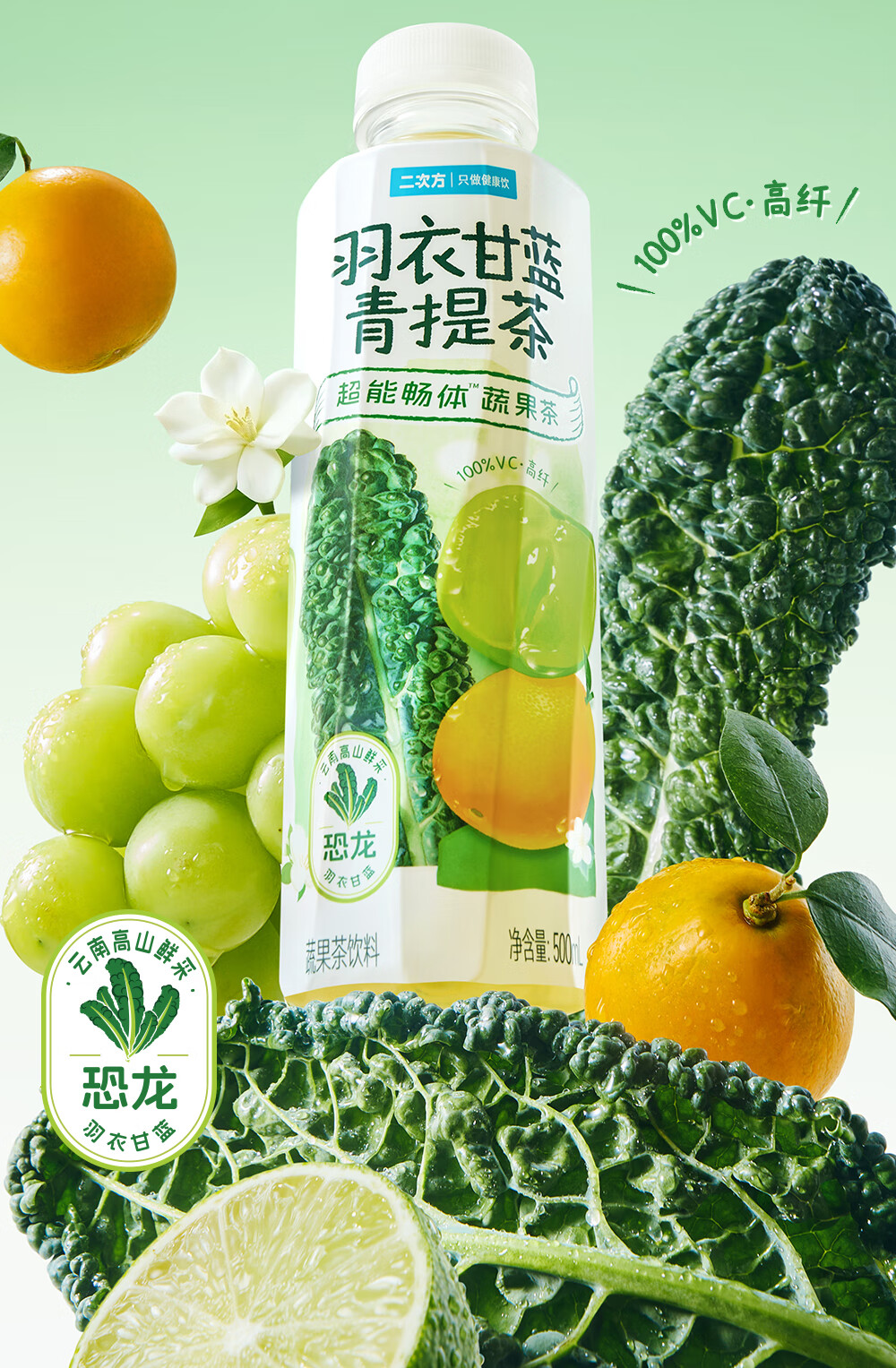 二次方羽衣甘蓝青提茶 蔬果茶 0脂0防腐剂 含NFC果汁饮料整箱年货 500ml*15瓶