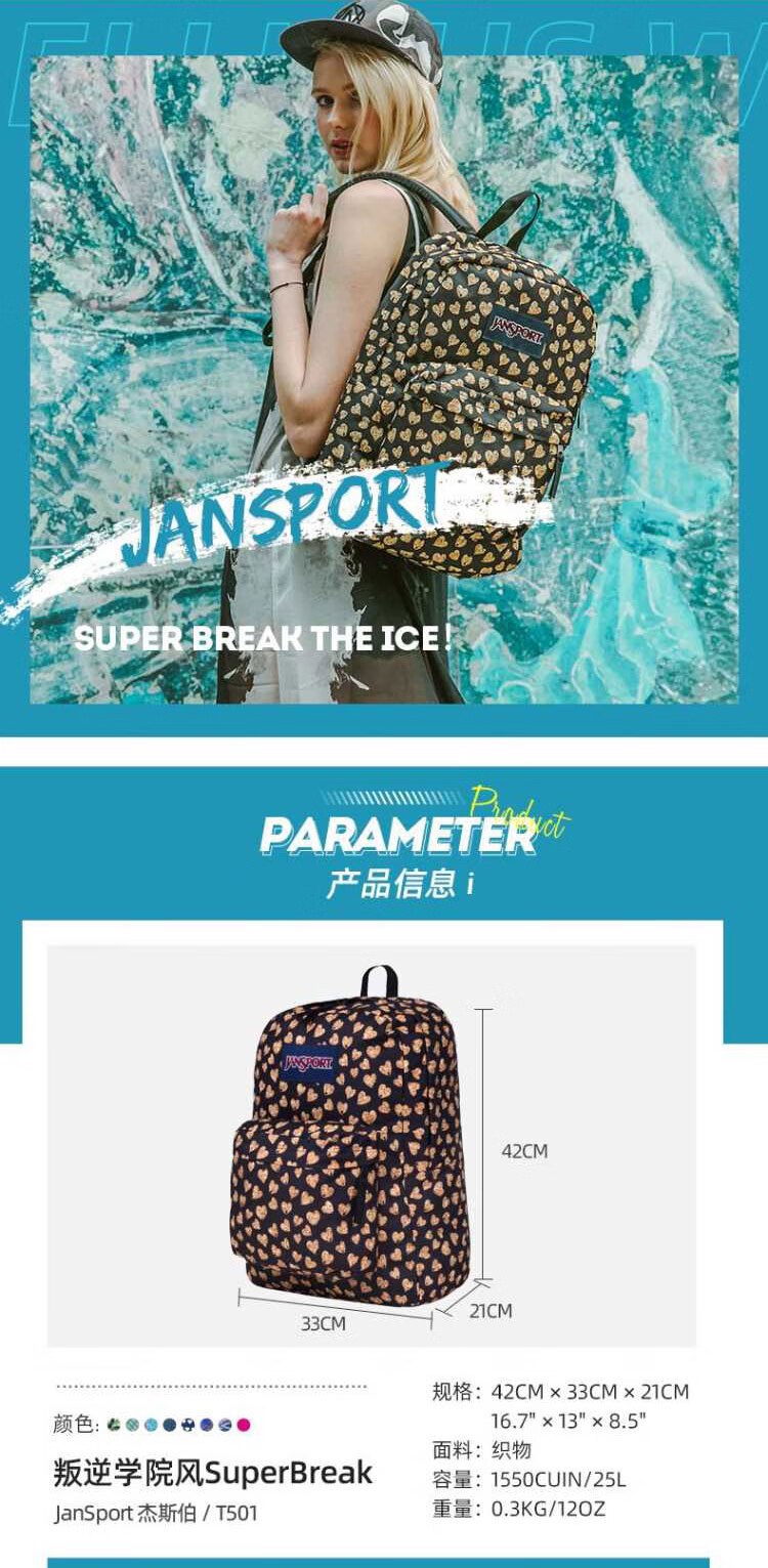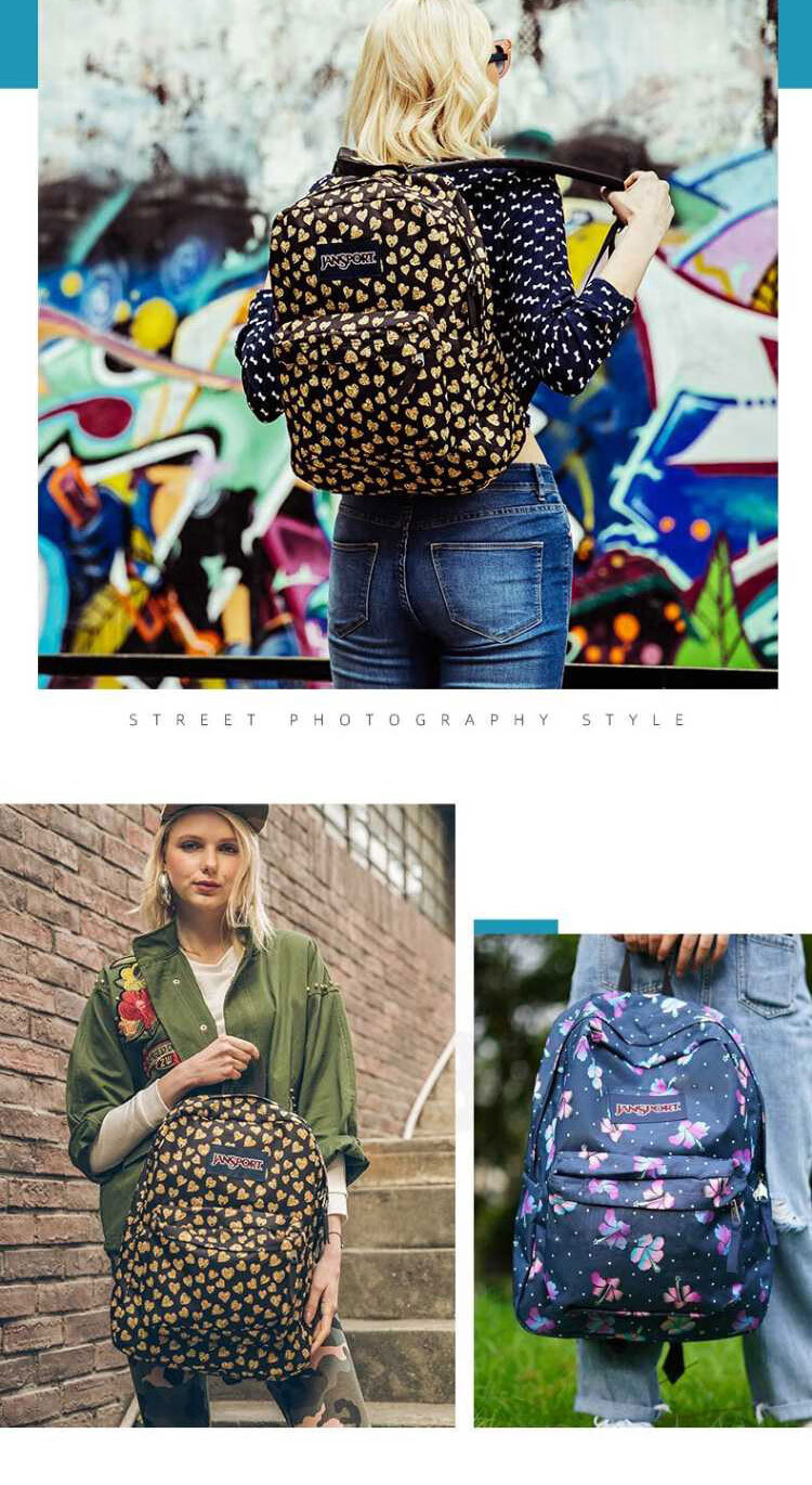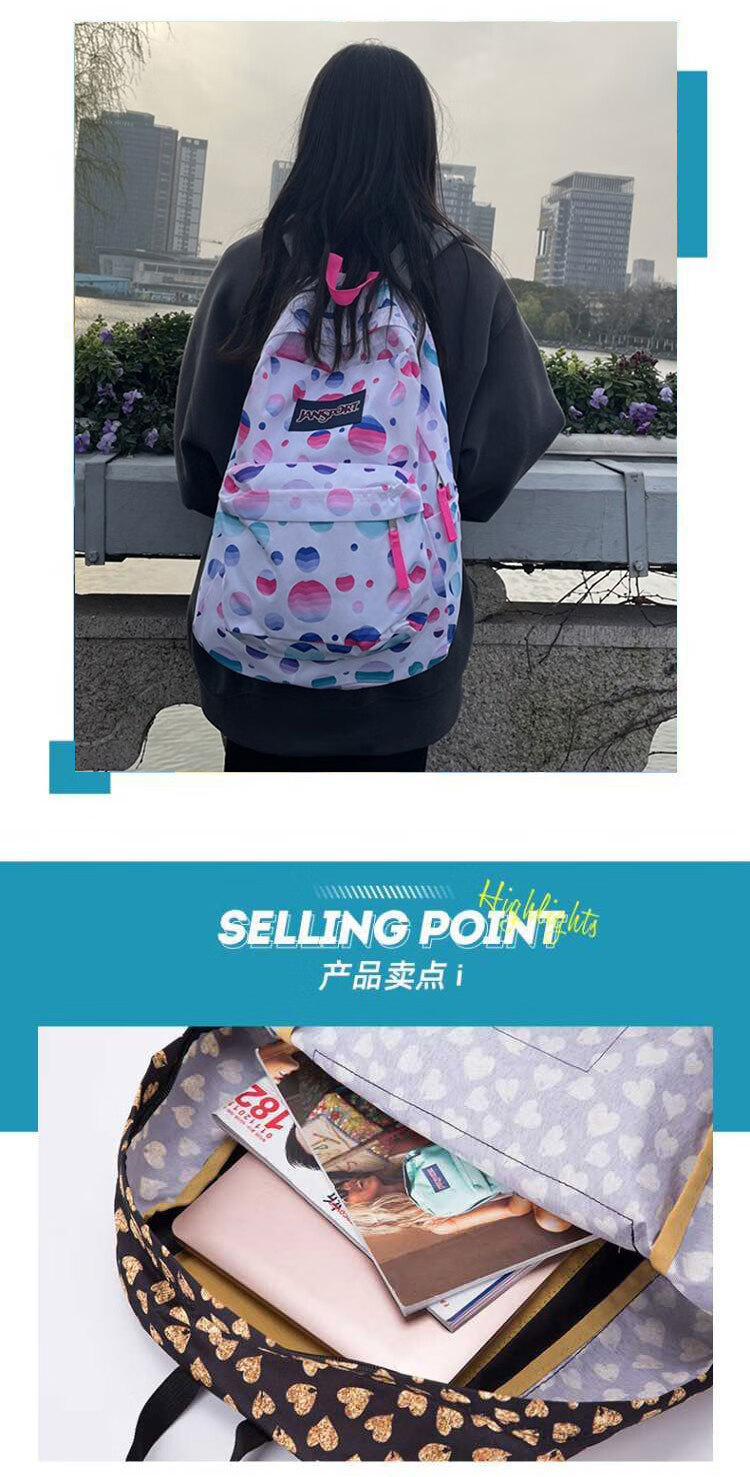 JANSPORT杰斯伯双肩包男女清新森系花色背书包\/裁切不同花纹会不一致 T5013CN豹纹爱心-无侧袋无隔层