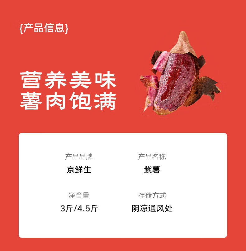 京鲜生广西紫罗兰紫薯 净重3斤单果100-400g新鲜蔬菜地瓜 源头直发
