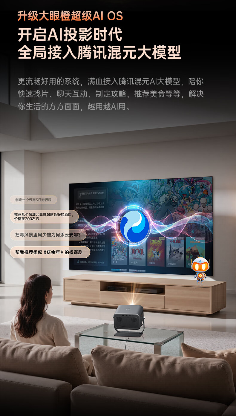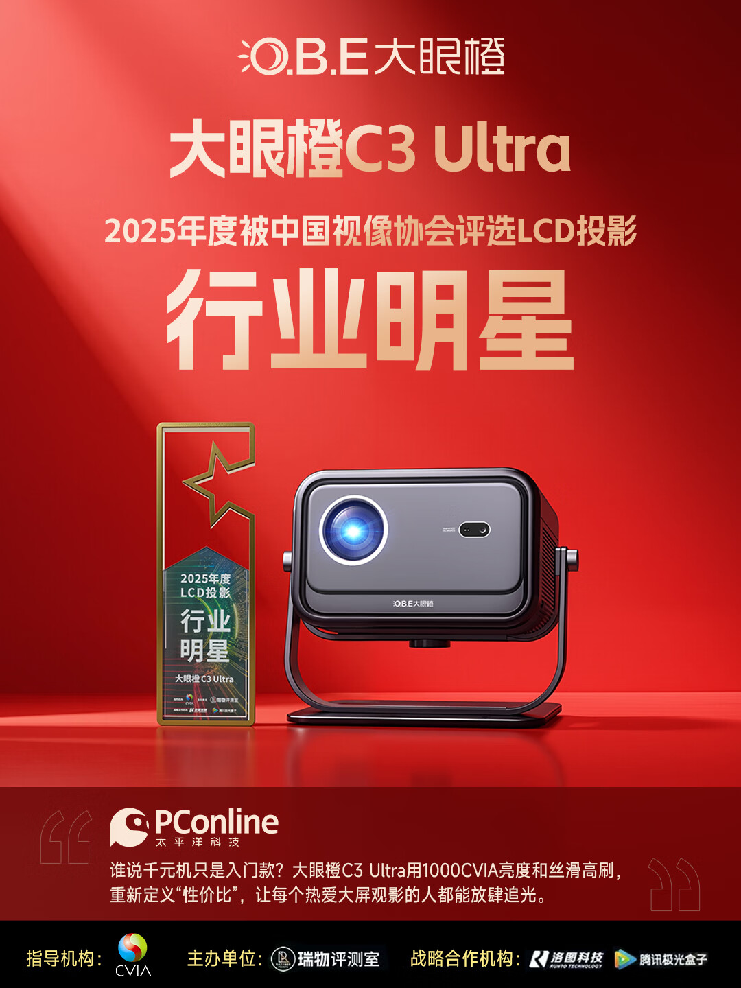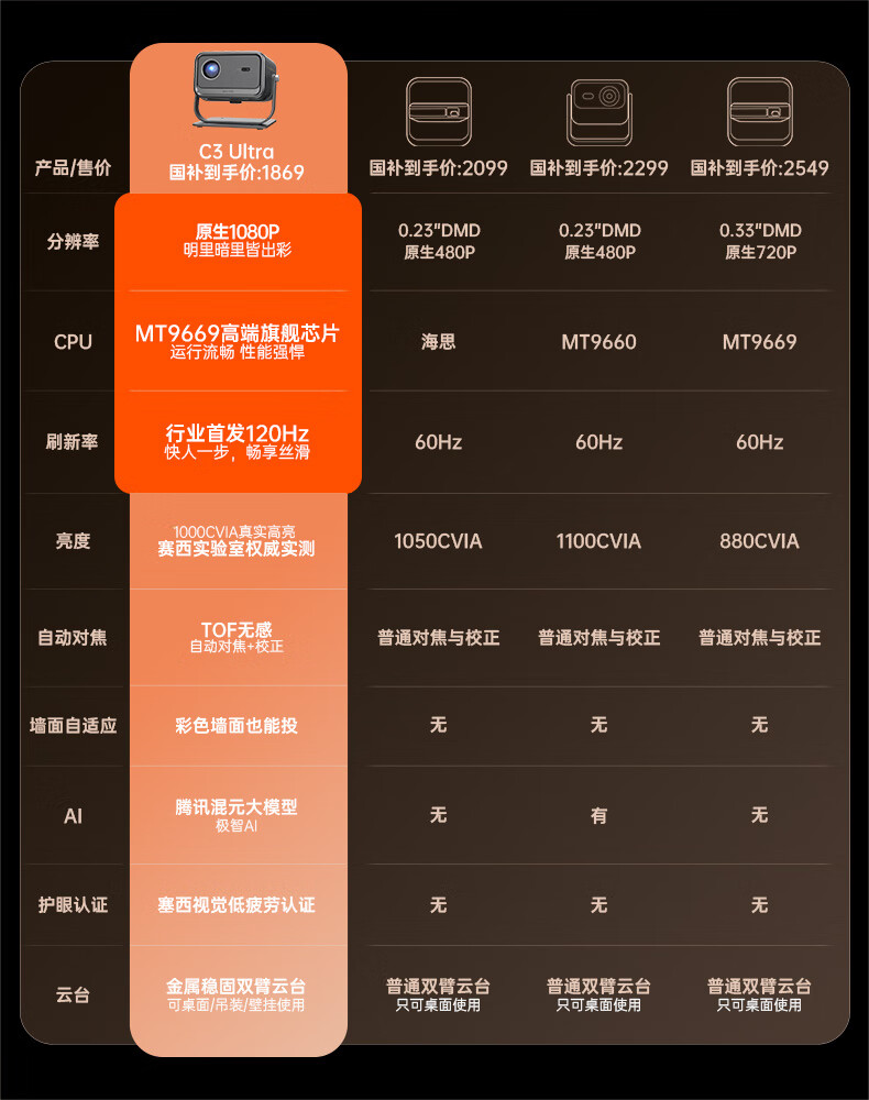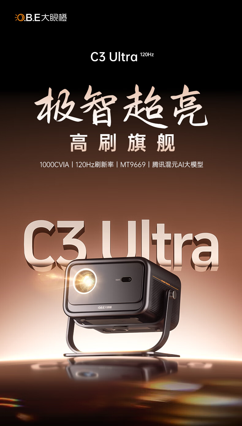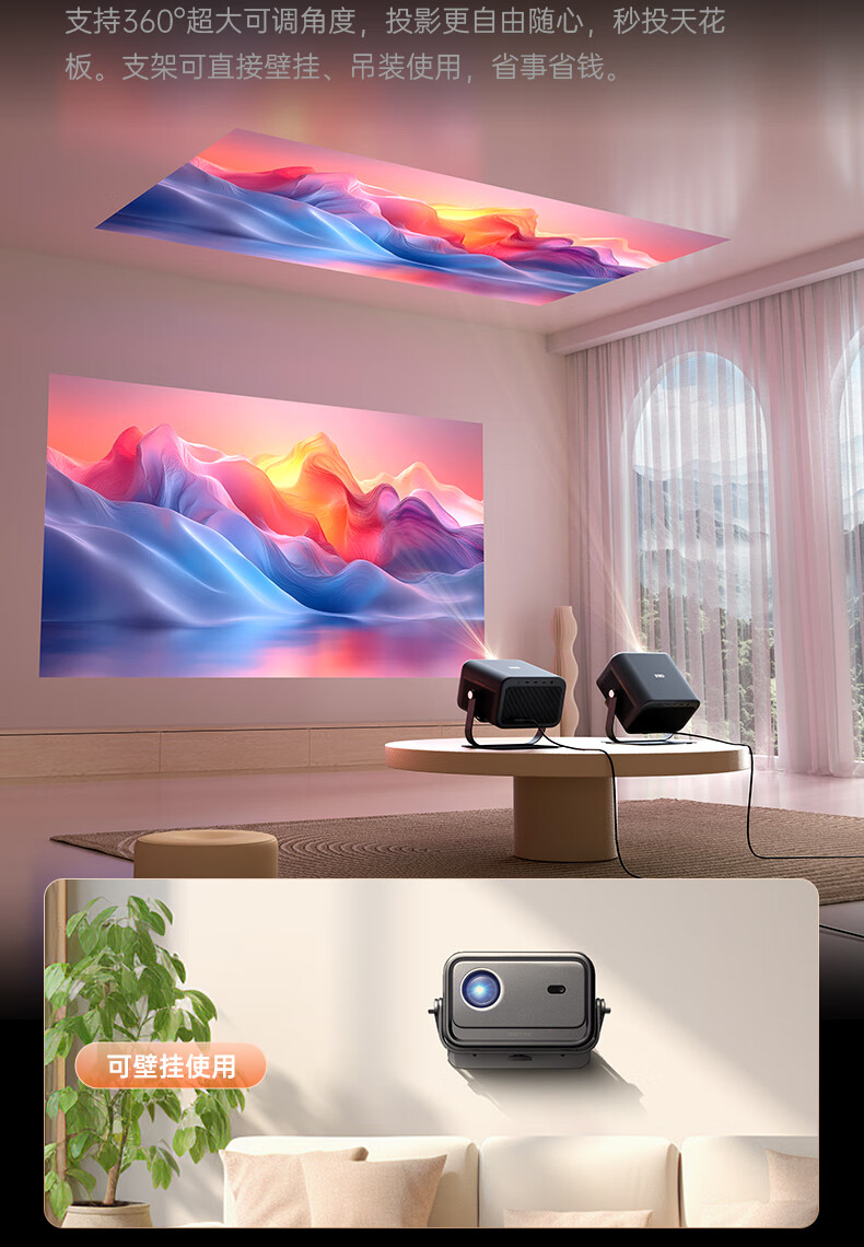 大眼橙C3 Ultra云台投影仪家用卧室真1080P便携投影机智能家庭影院 国家补贴(1000CVIA MT9669)9月新品