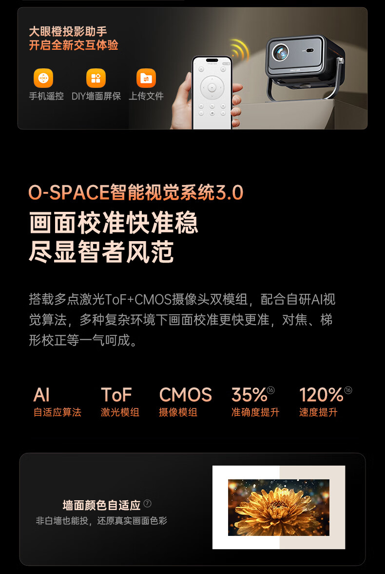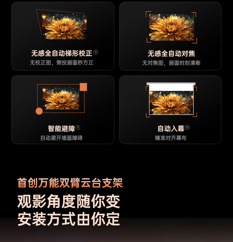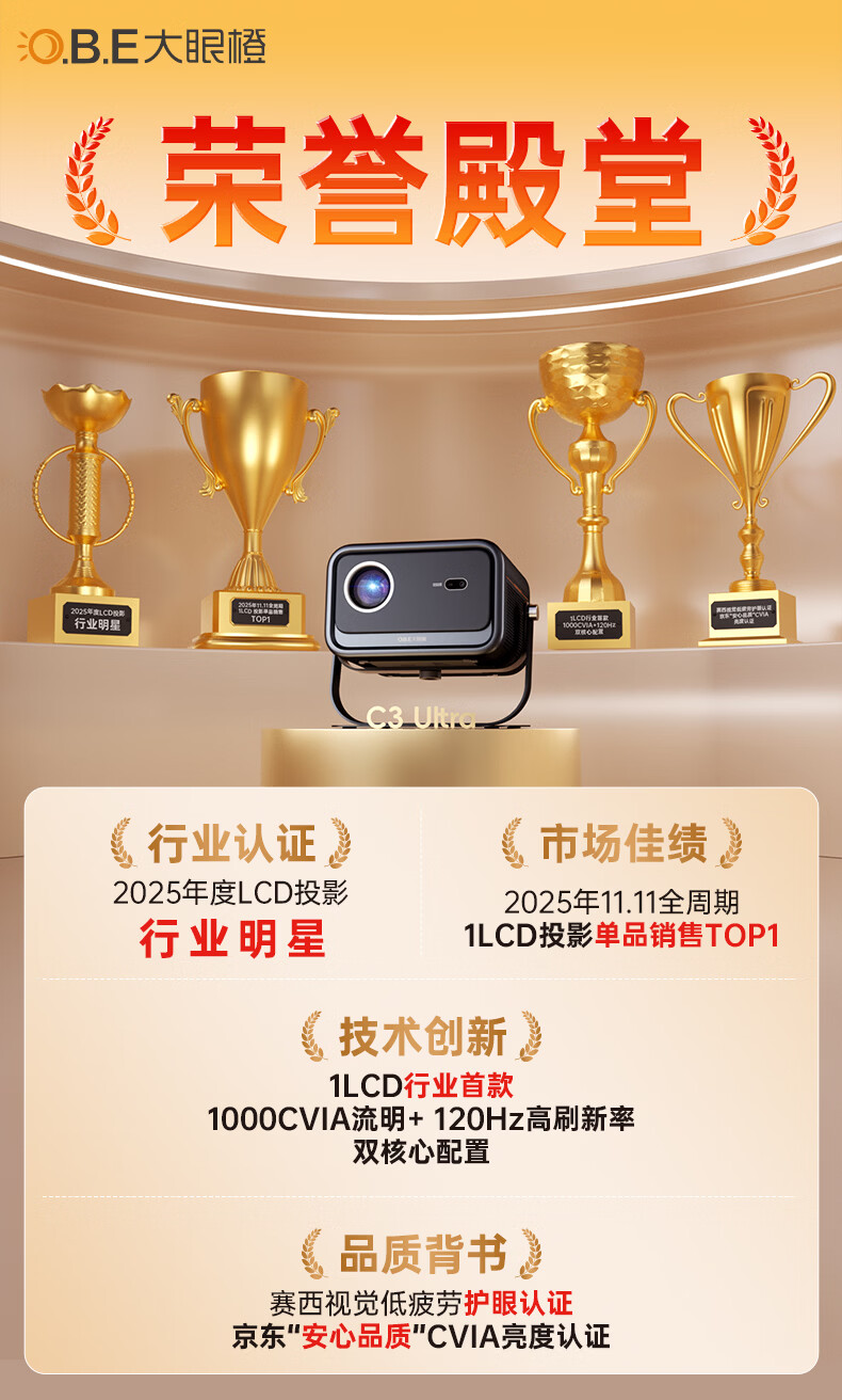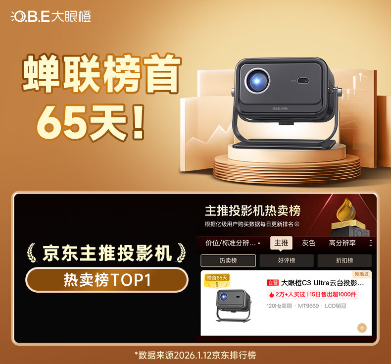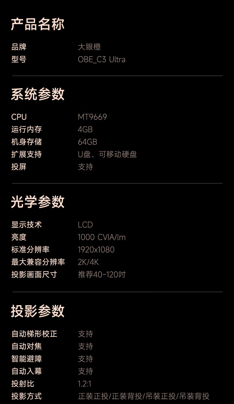 大眼橙C3 Ultra云台投影仪家用卧室真1080P便携投影机智能家庭影院 国家补贴(1000CVIA MT9669)9月新品