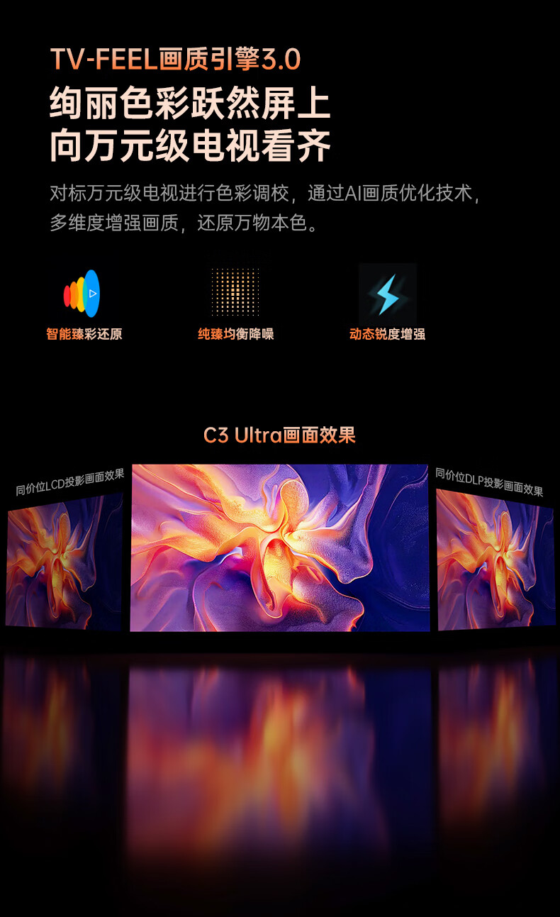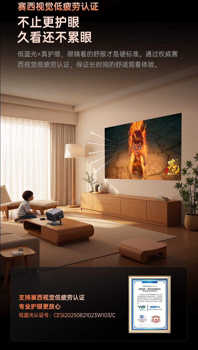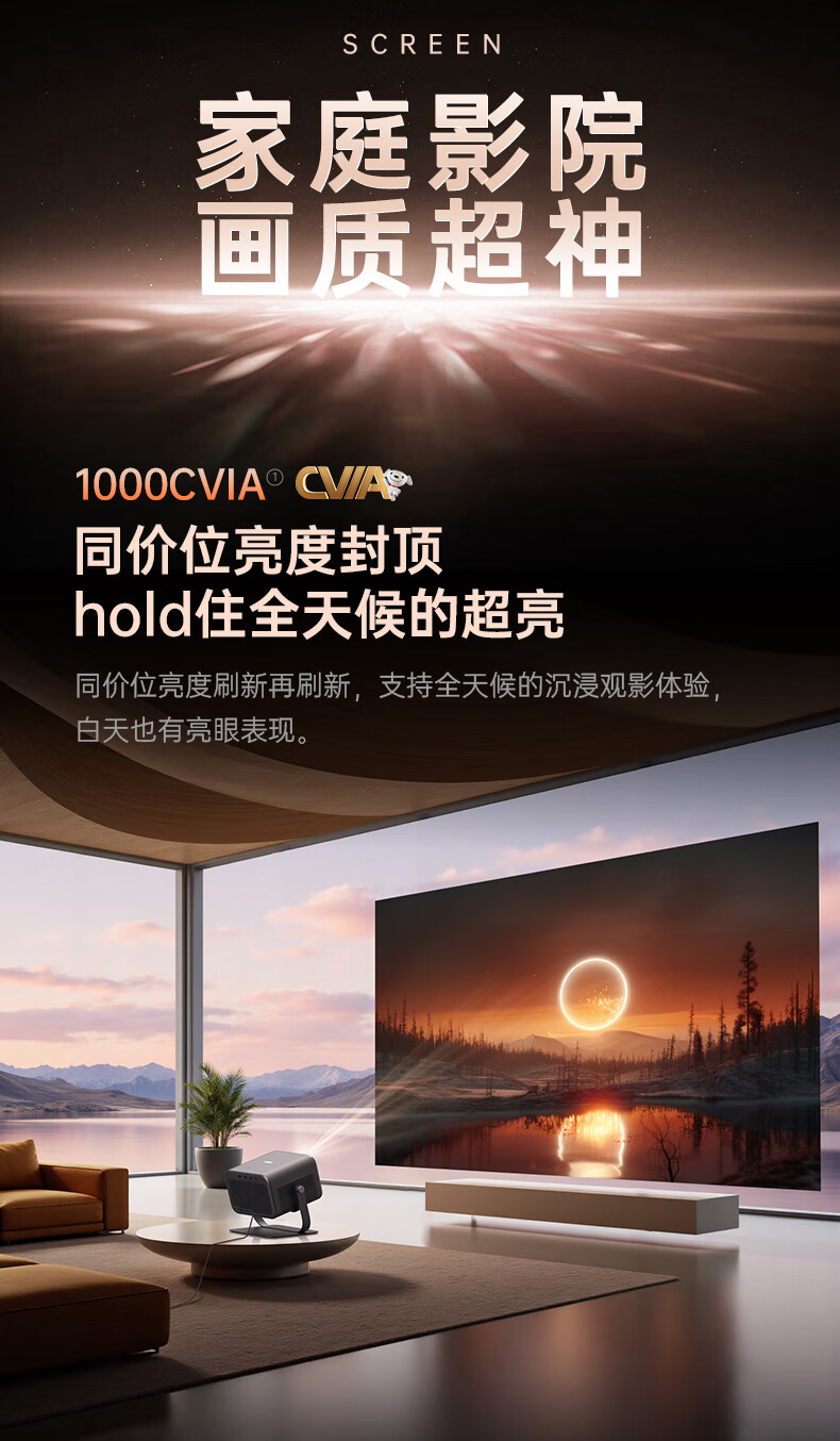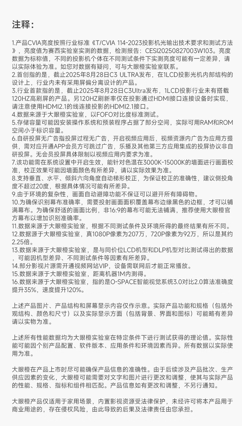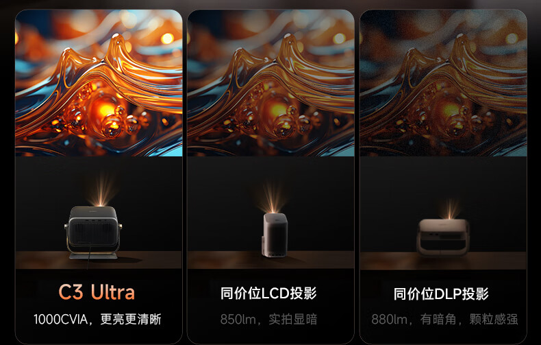 大眼橙C3 Ultra云台投影仪家用卧室真1080P便携投影机智能家庭影院 国家补贴(1000CVIA MT9669)9月新品