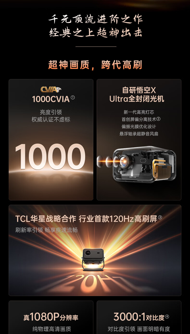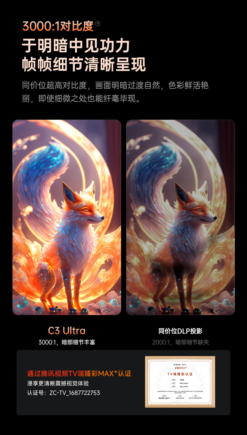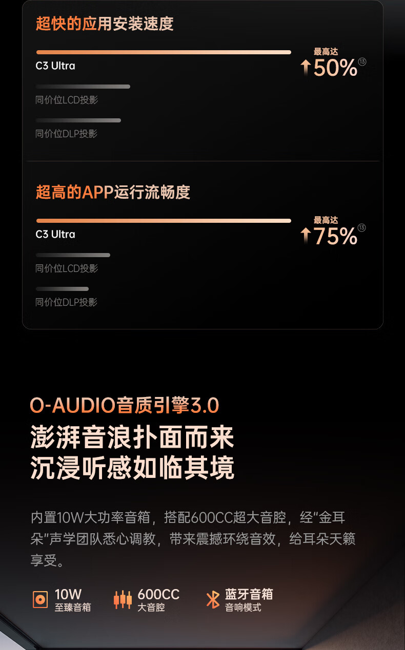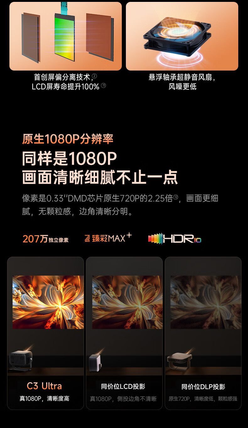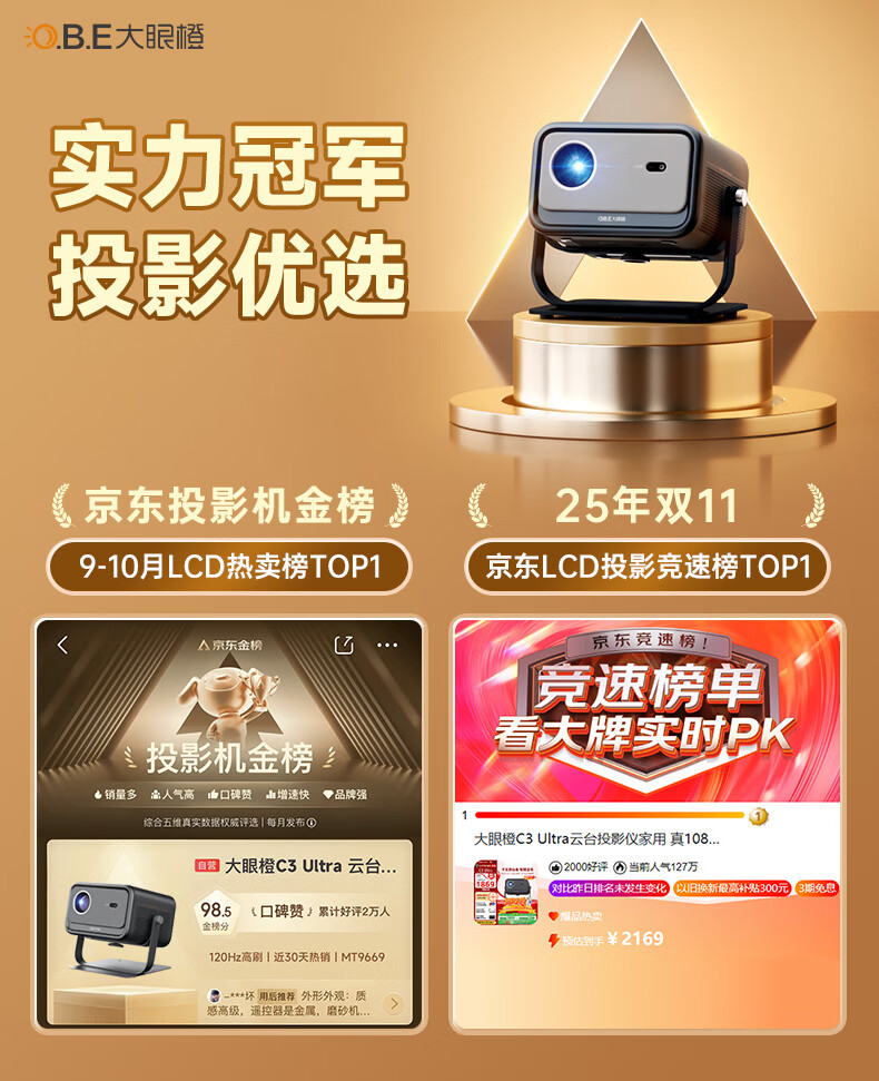 大眼橙C3 Ultra云台投影仪家用卧室真1080P便携投影机智能家庭影院 国家补贴(1000CVIA MT9669)9月新品