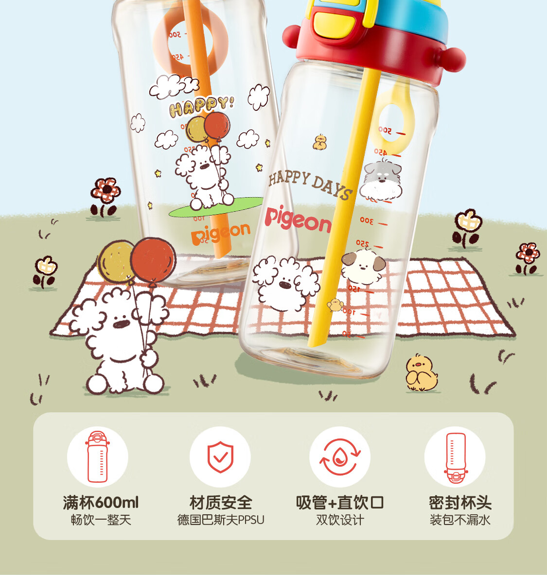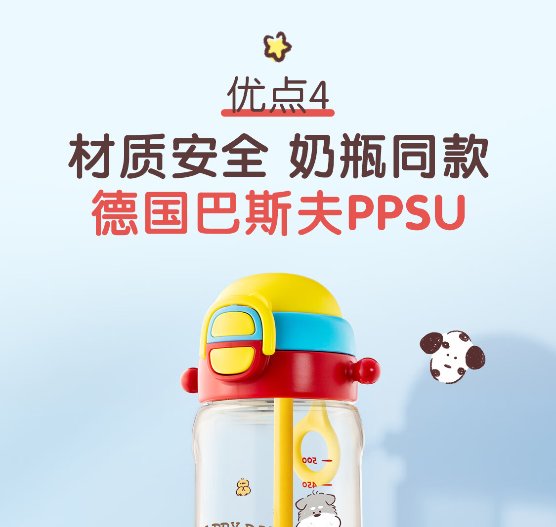 贝亲miiiiichan 儿童水杯 学生吸管杯 开学专用 500ml(甜趣日常)