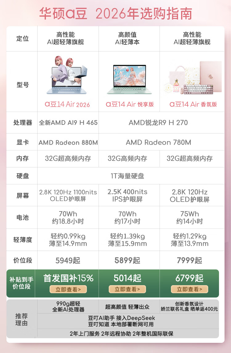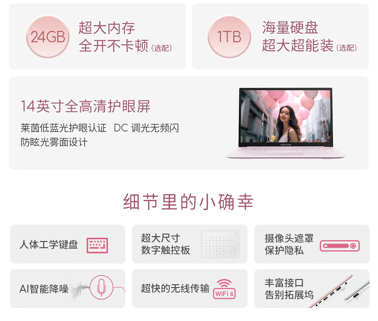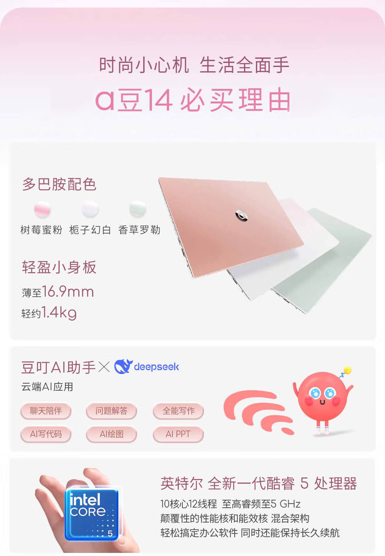 华硕a豆14 高颜值AI轻薄本 笔记本电脑(全新酷睿5 16G 1T大硬盘 护眼屏 预装office)国家补贴 办公学生