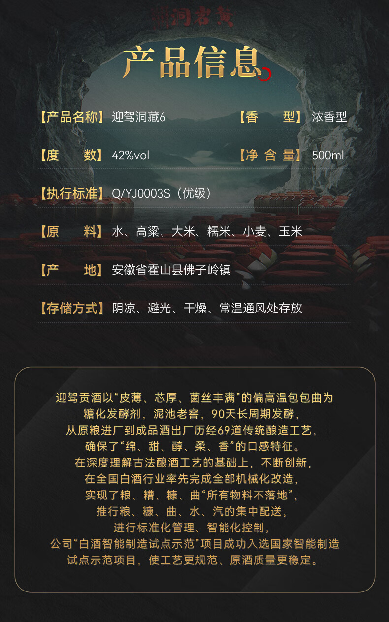 迎驾贡酒迎驾洞藏6 浓香型 白酒 42度 500ml*4瓶 整箱装 年货送礼