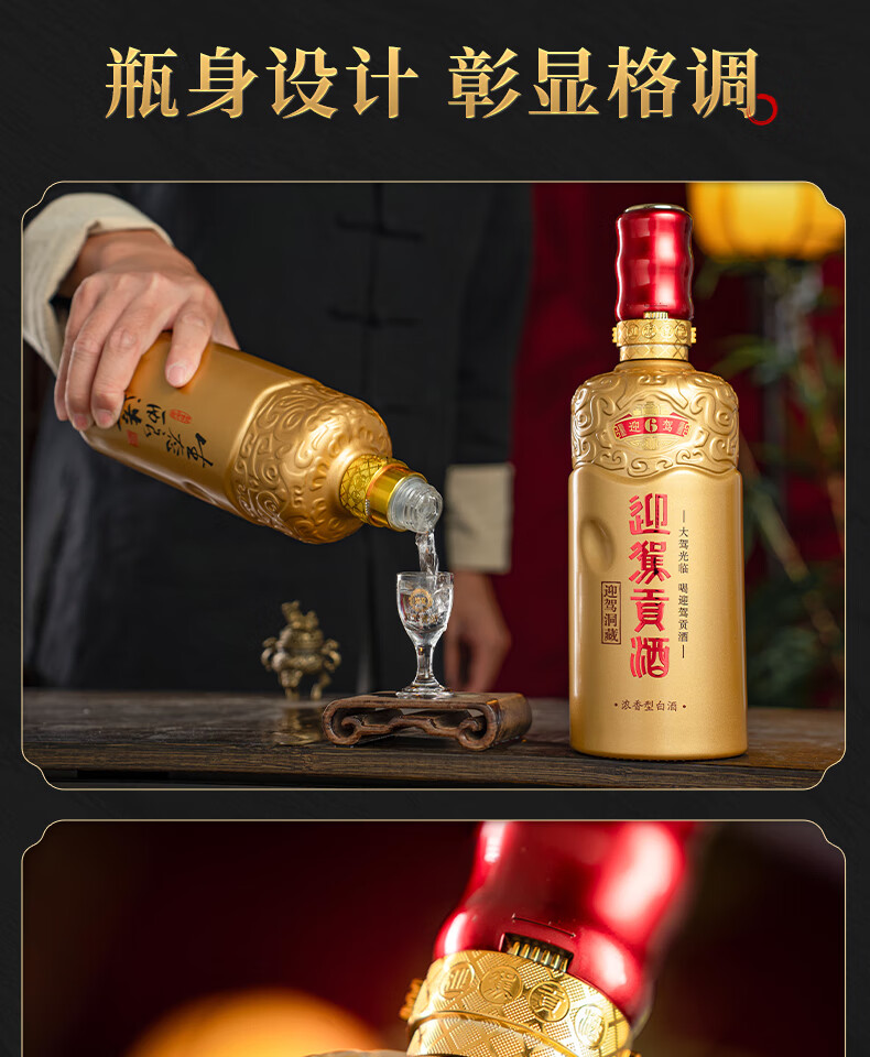 五粮浓香五粮液股份出品 官方授权 52度优级 浓香型白酒 喜福盛世 52度 500mL 6瓶 聚财金樽整箱装