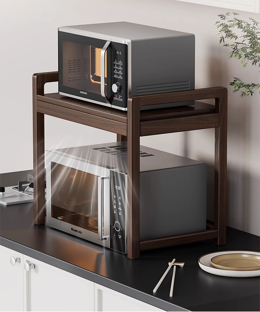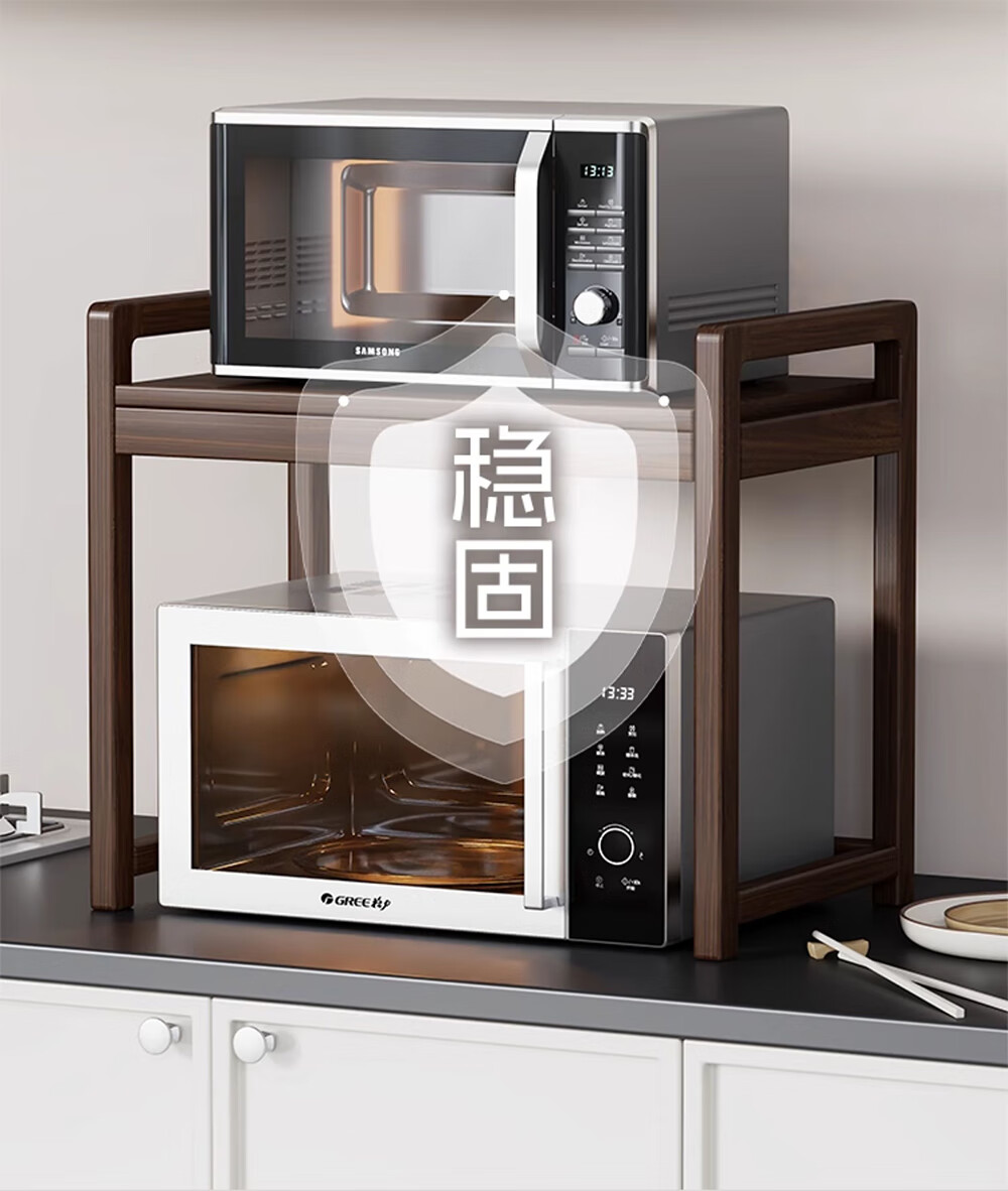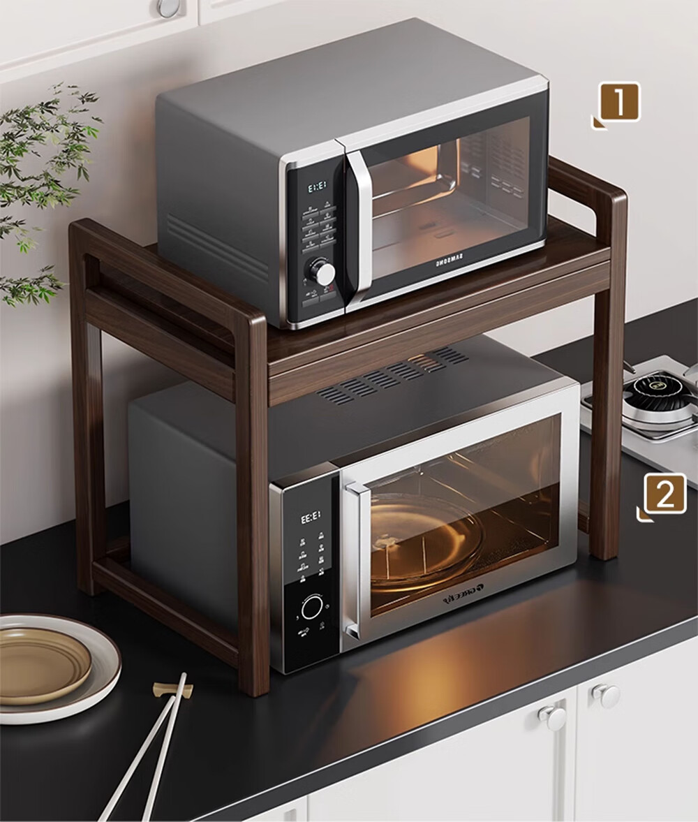 尔思家微波炉架子置物架日本厨房收纳架多层烤箱放置架台面空气炸锅支架 胡桃色中号【进口实木】