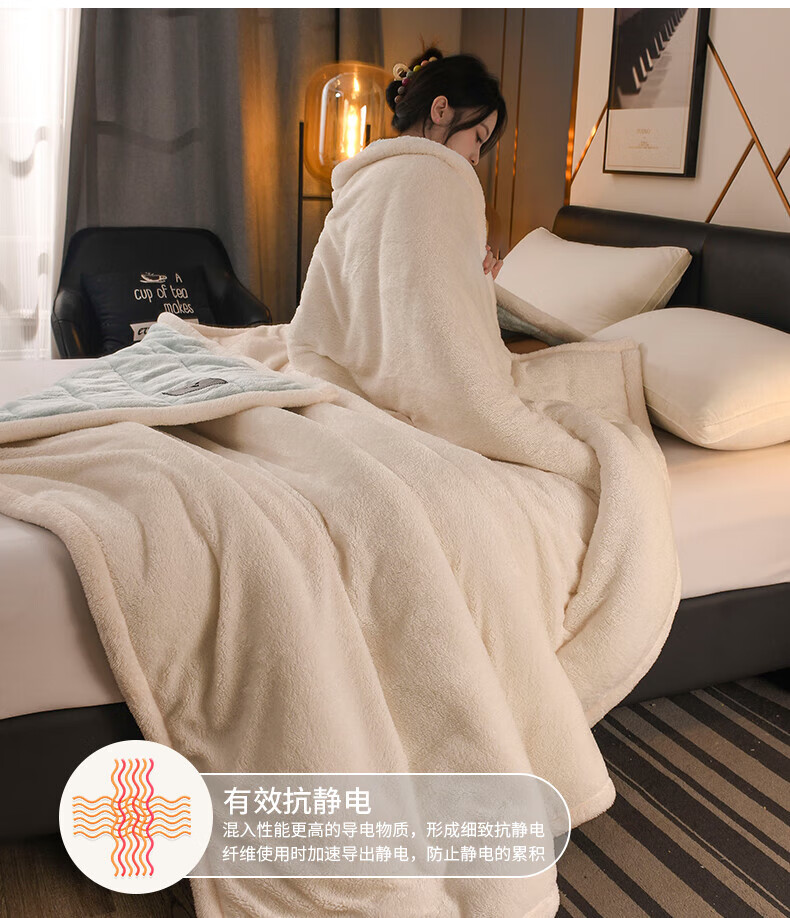 猫人(MiiOW)加厚牛奶绒毛毯子冬季盖毯珊瑚绒办公室午睡单双人被子学生宿舍 浅灰【3层加厚保暖抗寒】 午睡毯100*150cm【柔软触感】