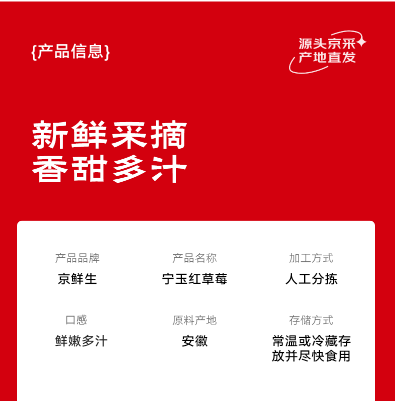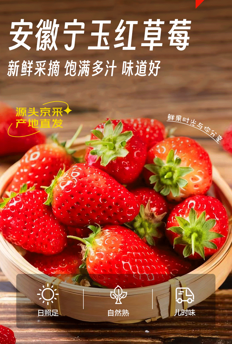 京鲜生 长丰红颜草莓1斤装 大果 单果30g+ 生鲜水果 源头直发包邮