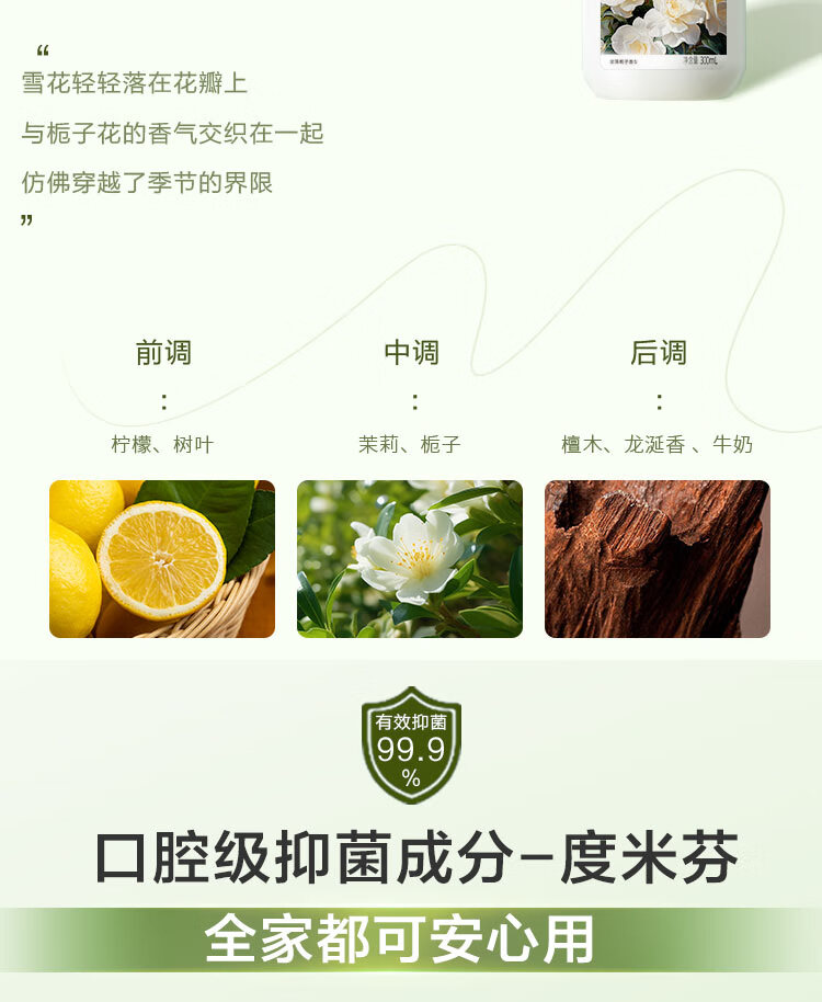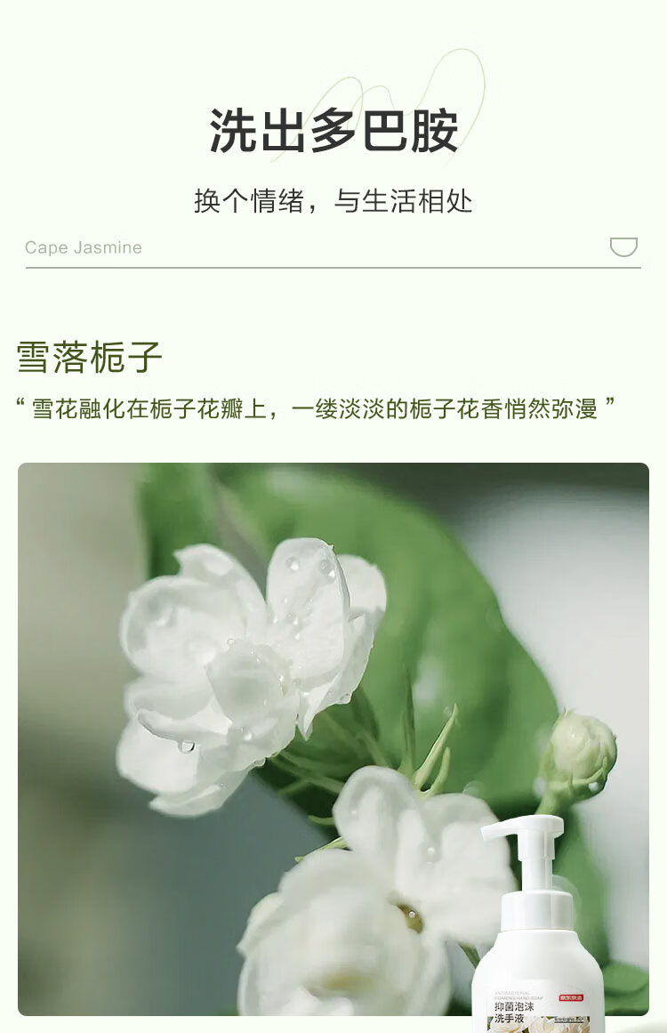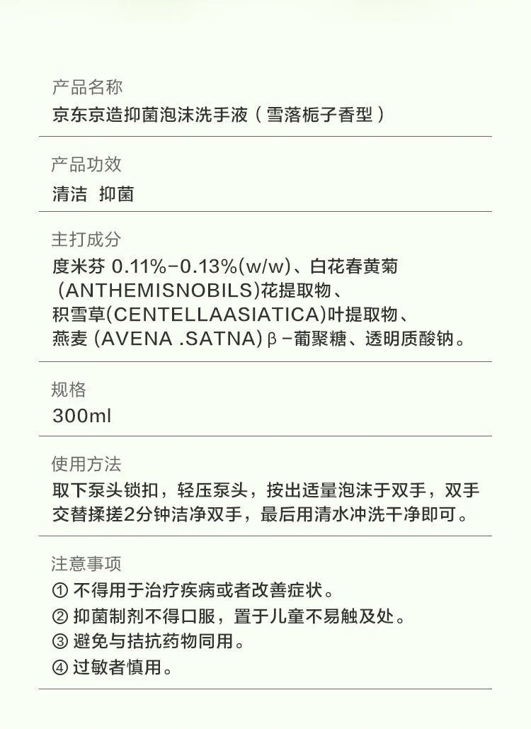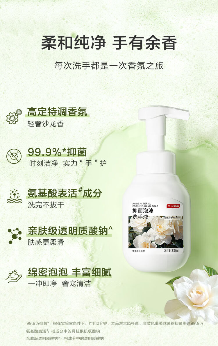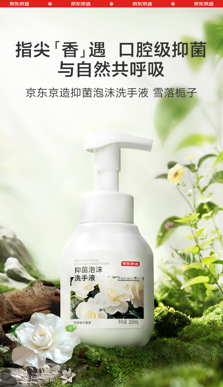 京东京造抑菌99.9%雪落栀子泡沫洗手液300ml 健康口腔级儿童成人消毒易洗