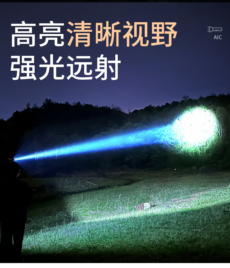 Aic手电筒强光充电户外超亮远射灯超长续航耐用家用轻量小型便携 【轻量便携】三档调节