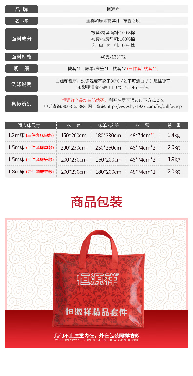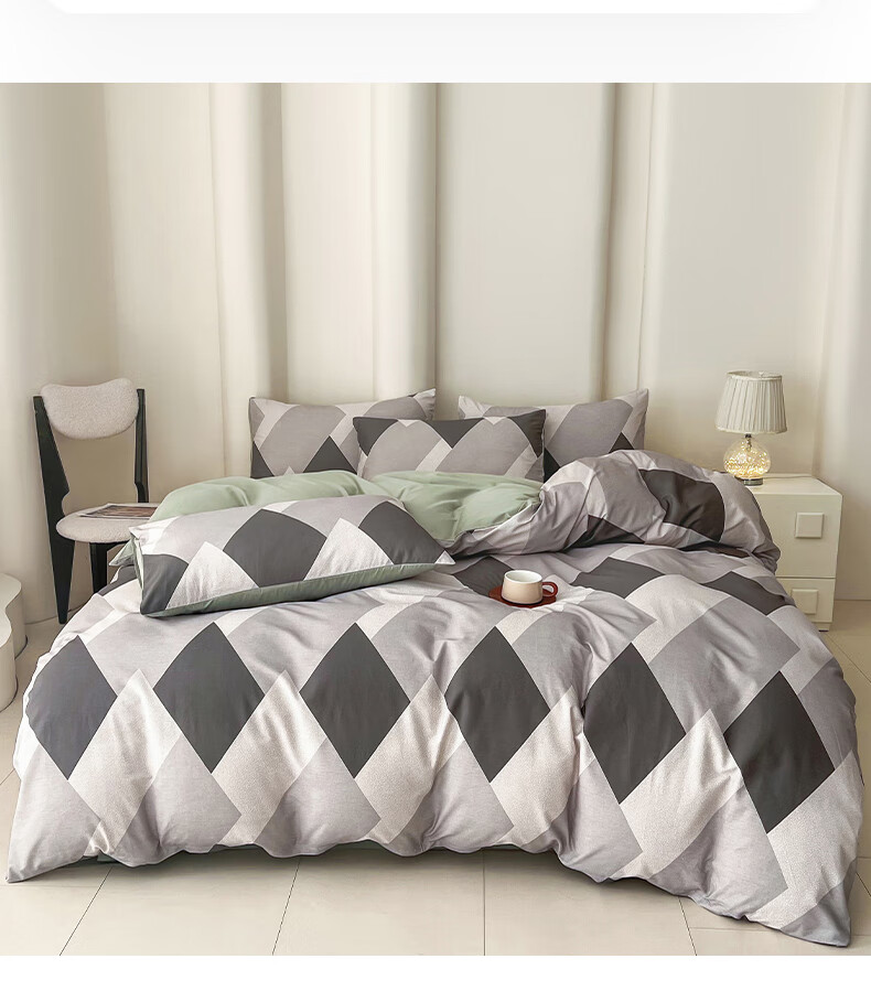 恒源祥 全棉四件套 100%纯棉印花四件套北欧风加厚舒适被套200x230cm 布鲁之境【纯棉加厚】 三件套1.2m 床单款 (被套150*200cm)