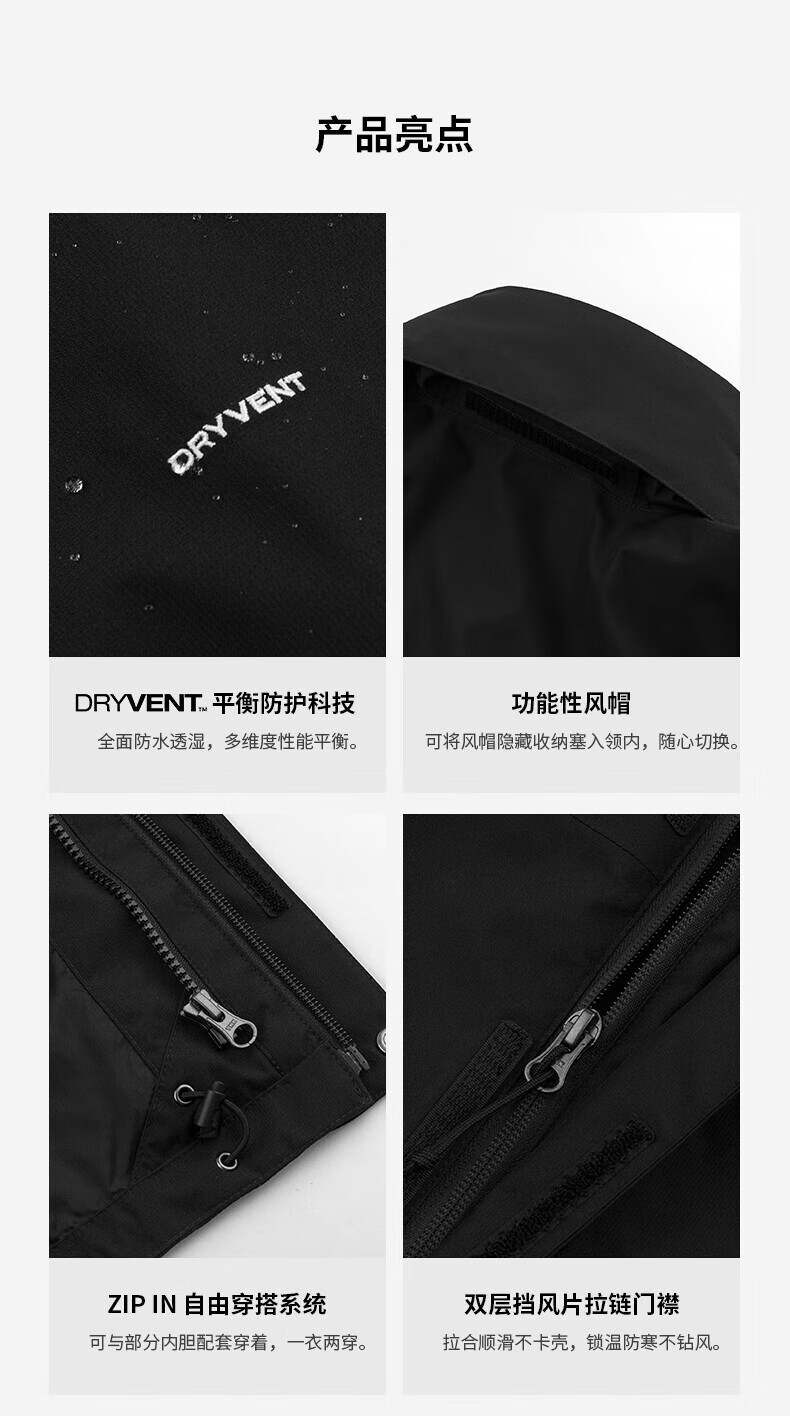 北面(The North Face)冲锋衣男硬壳外套DRYVENT防水夹克外套可挂内胆25秋冬新品8GKX JK3/宇宙黑 XL /180