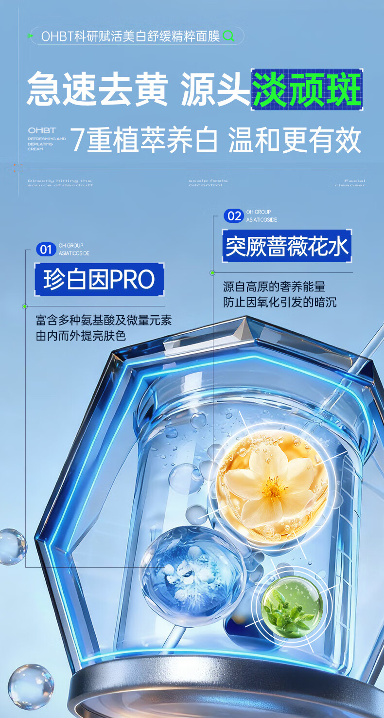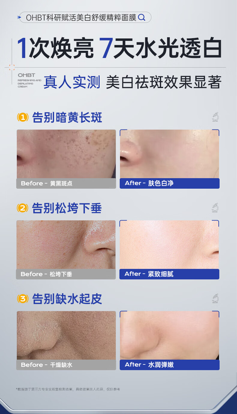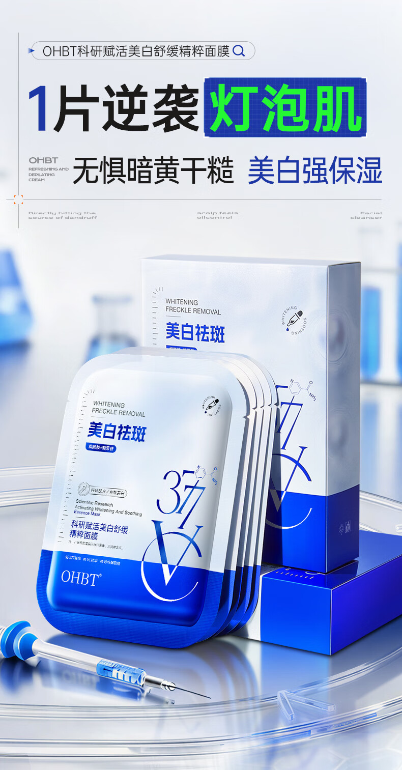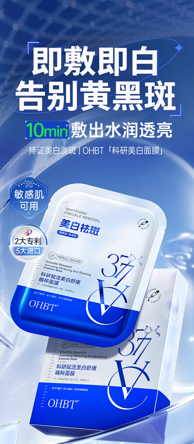 OHBT377美白面膜10片补水保湿淡斑男女士抗皱紧致抗衰老去黄提亮肤色