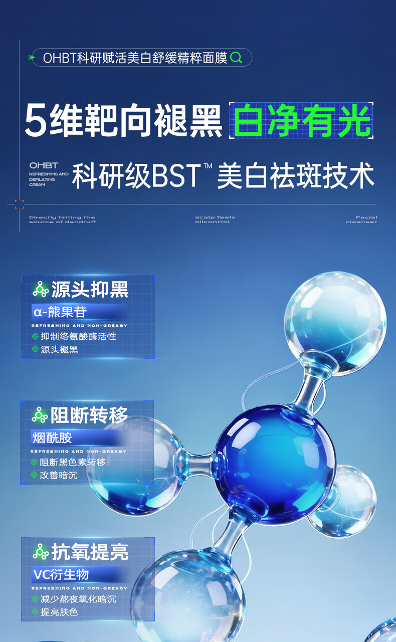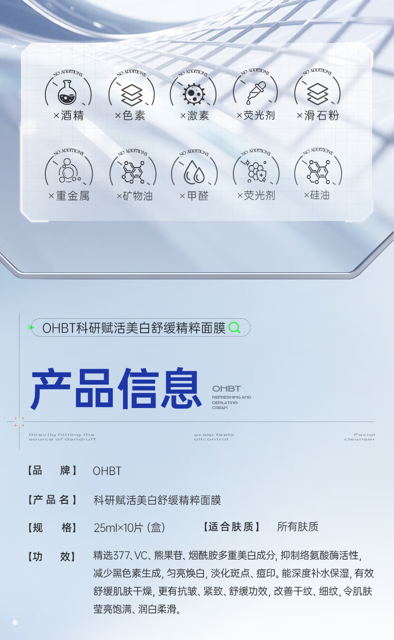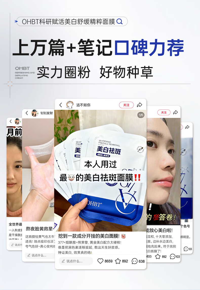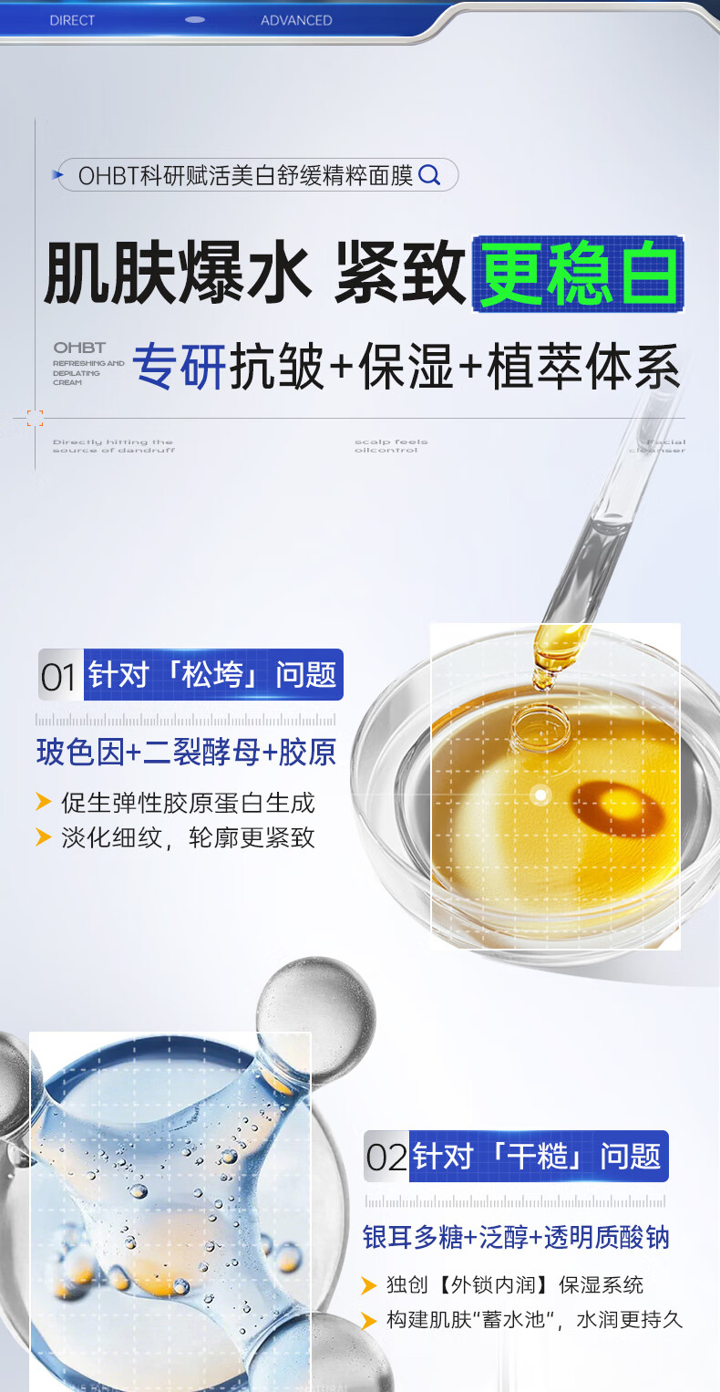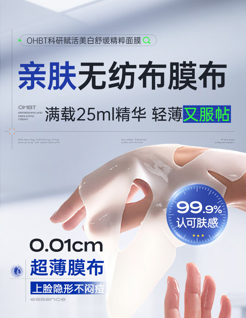 OHBT377美白面膜10片补水保湿淡斑男女士抗皱紧致抗衰老去黄提亮肤色