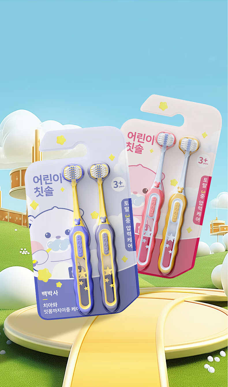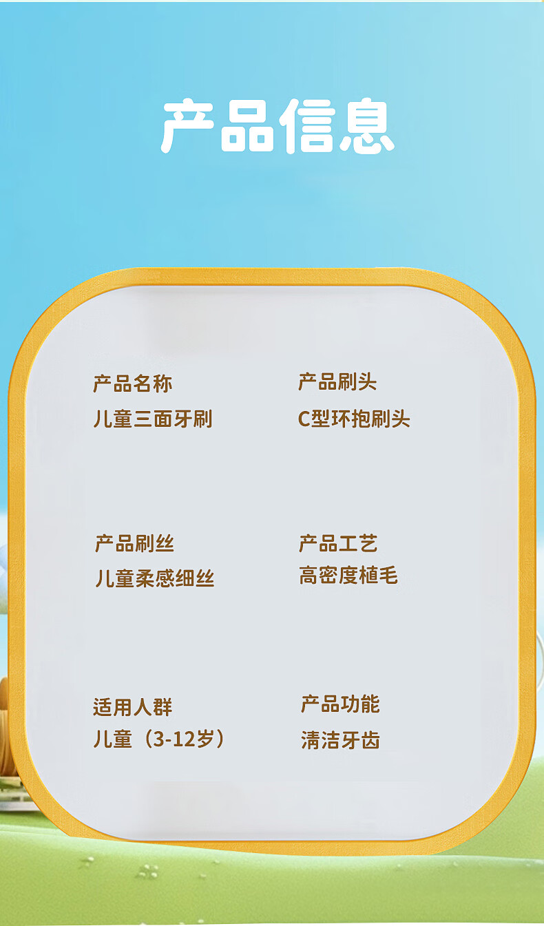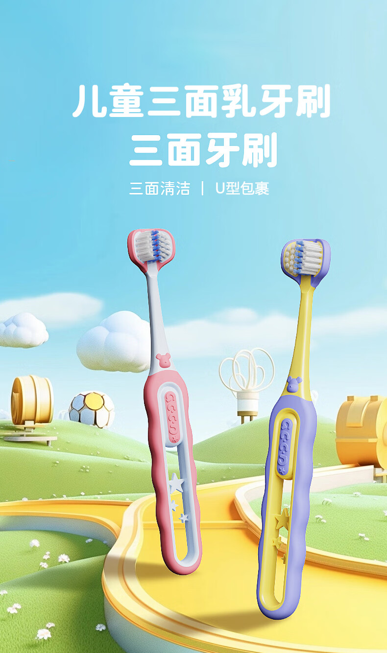 伊诺齿儿童三面牙刷软毛牙刷3-6-12岁宝宝专用乳牙刷包裹式三头牙刷卡通 儿童软毛三面牙刷【1盒】