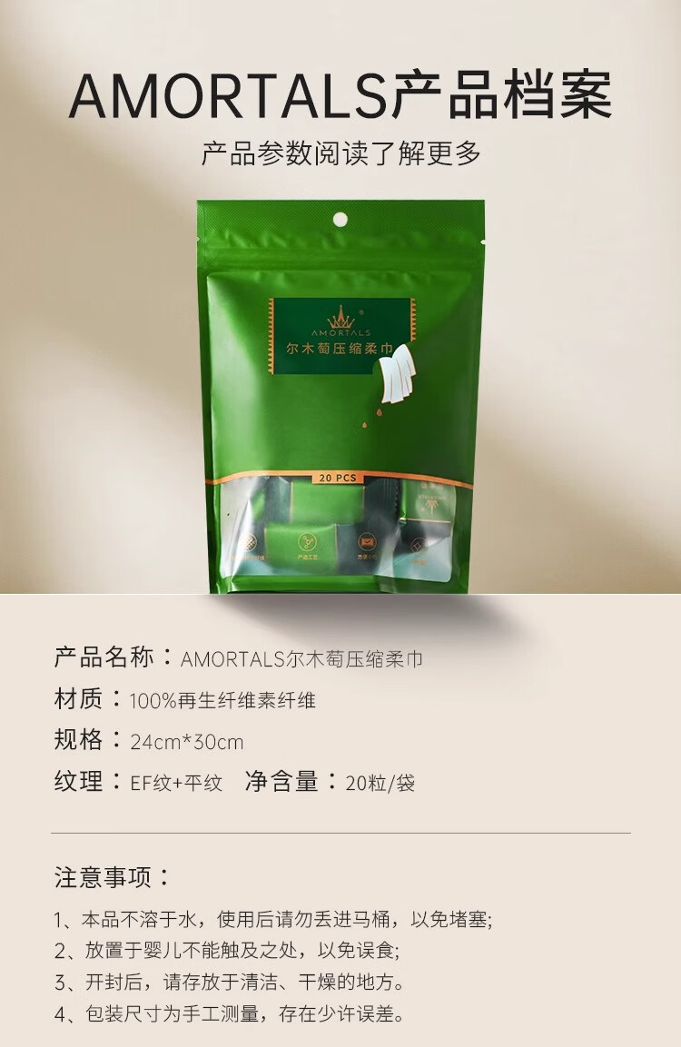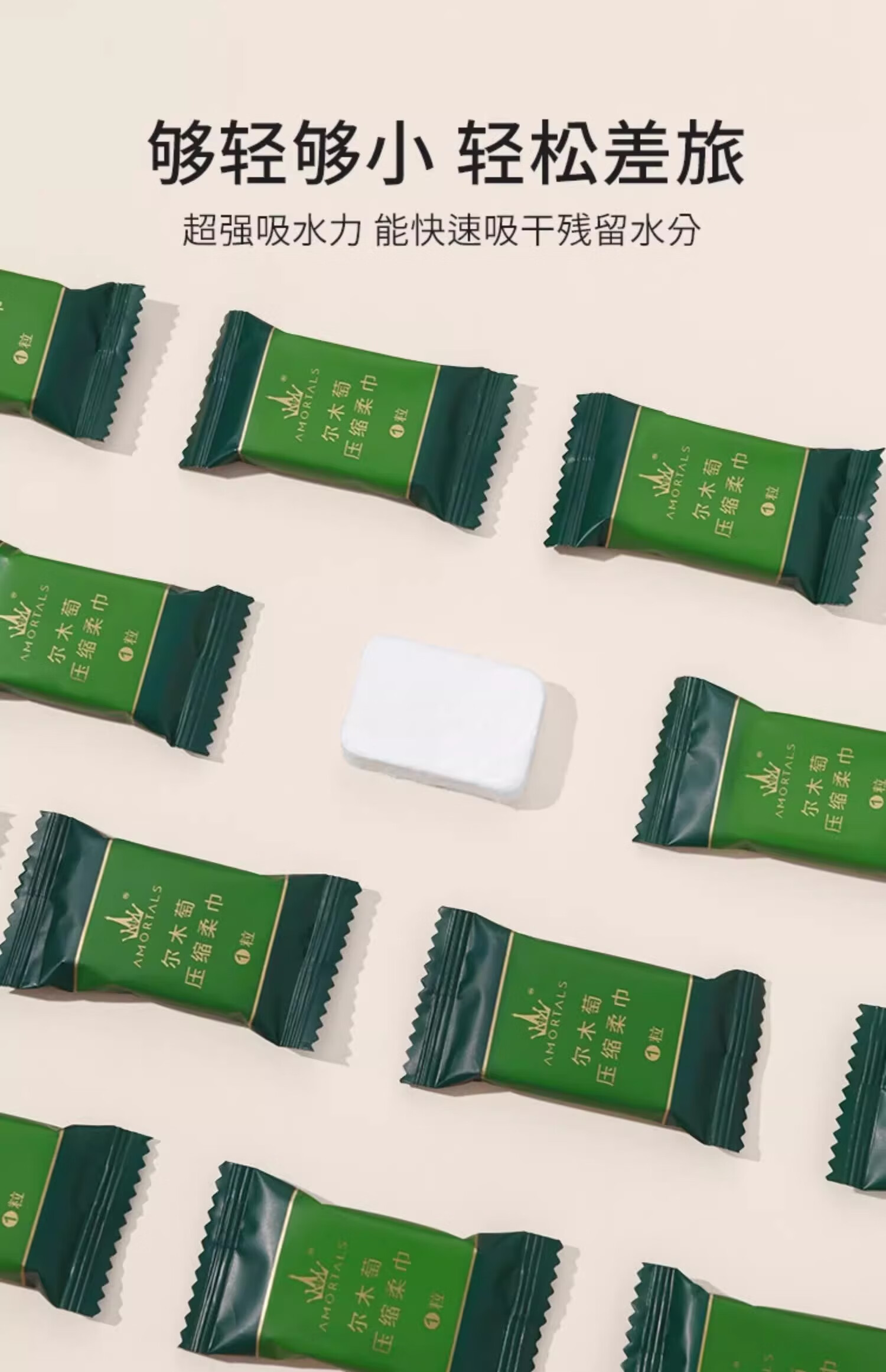 尔木萄(AMORTALS)一次性压缩毛巾洗脸巾擦脸巾化妆绵20粒旅行干湿两用节日礼物