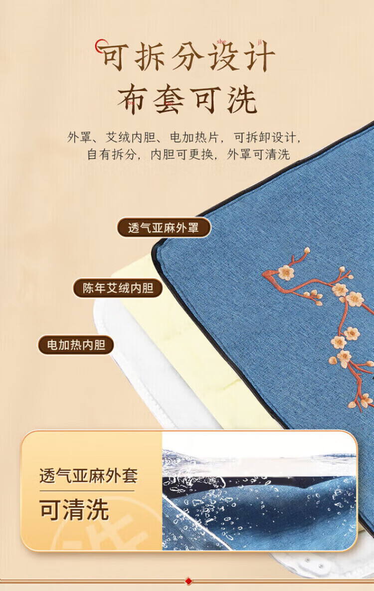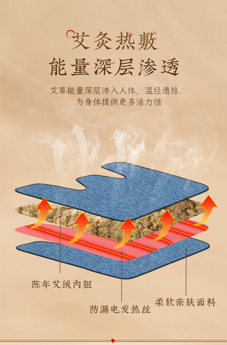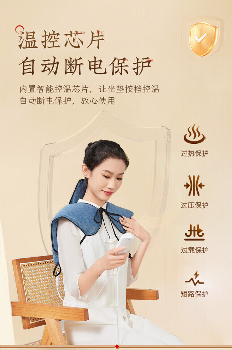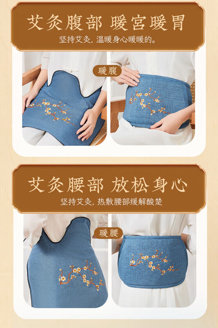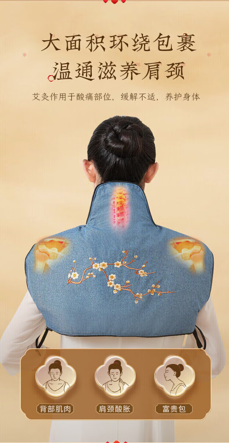 LUCYLEE美国电加热艾绒披肩颈部热敷包保暖护背艾灸艾草理疗仪 【腰腹热敷】刺绣蓝+智能控温