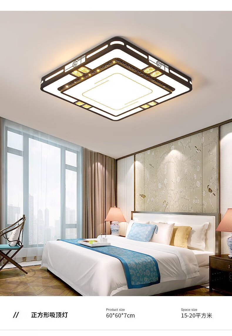 灯诺堡新中式客厅灯吸顶灯仿古金丝檀实木长方形家用餐厅卧室灯具中国风 55*55cm48w白光