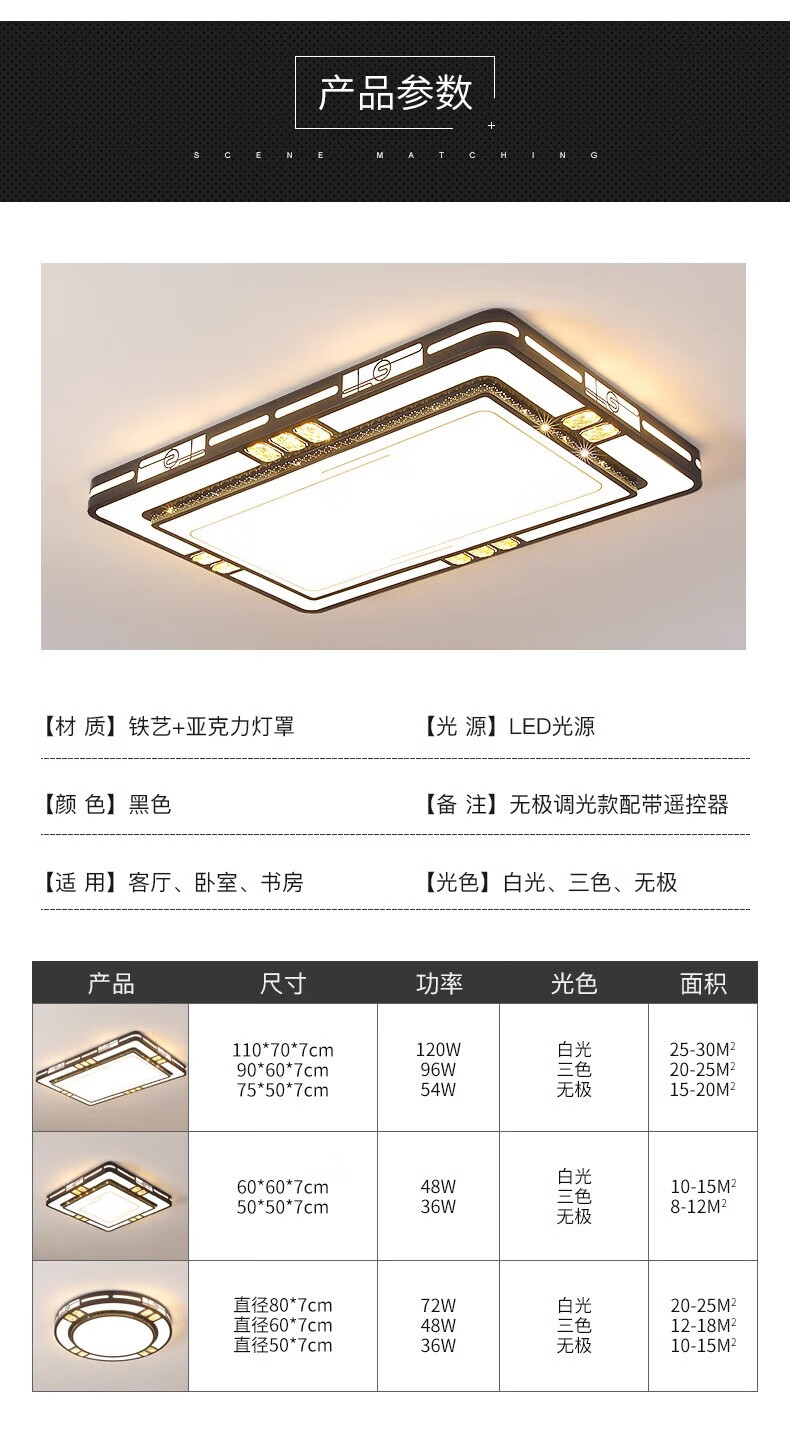 灯诺堡中山灯具2025款客厅餐厅卧室餐厅灯简约现代大气家用中式吸顶灯 【5.0升级全光谱】套餐7