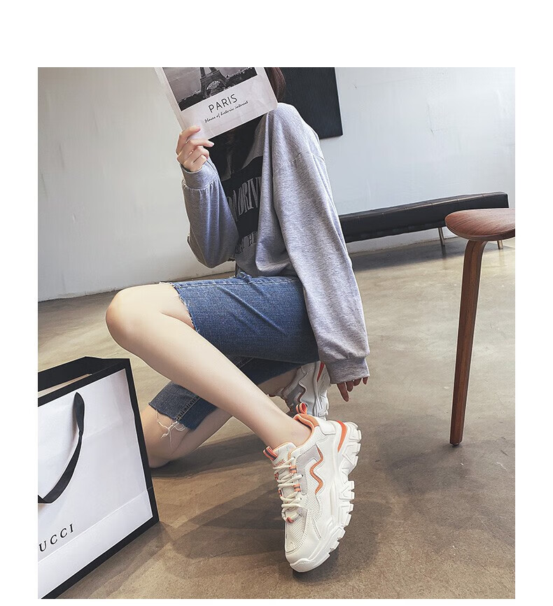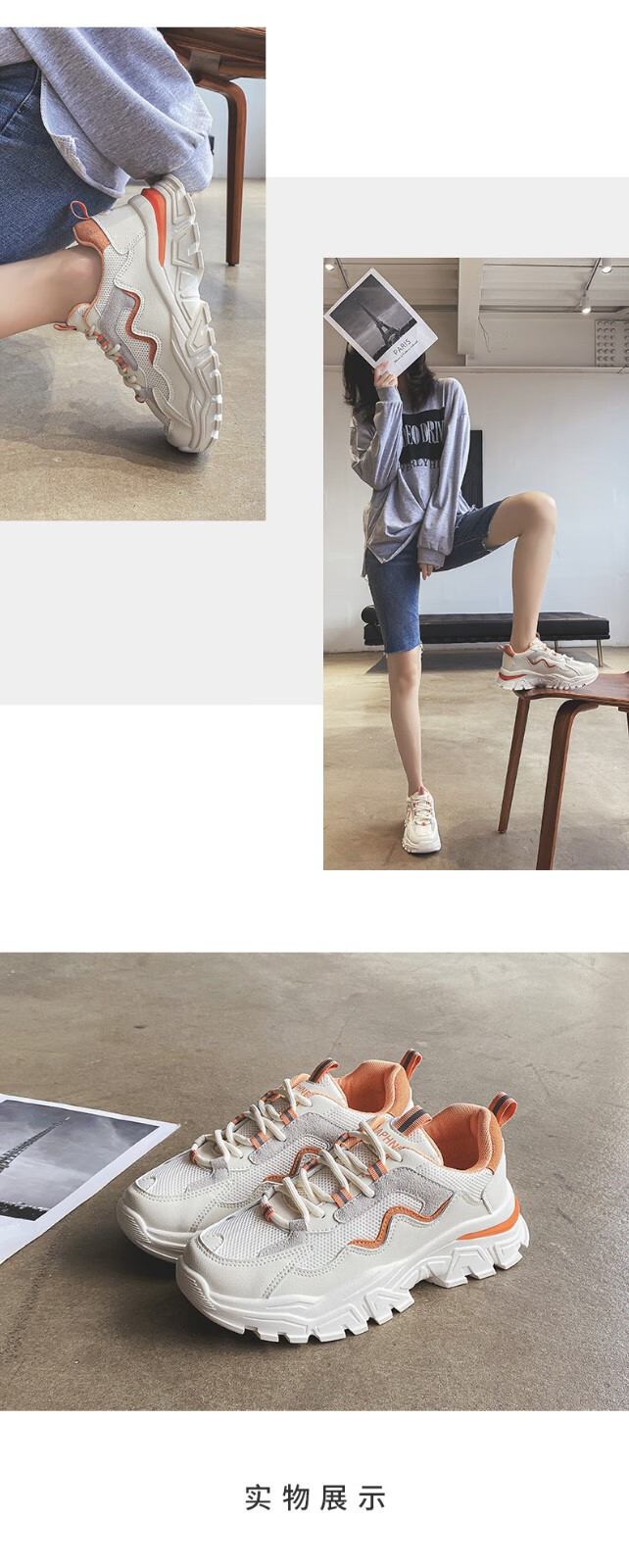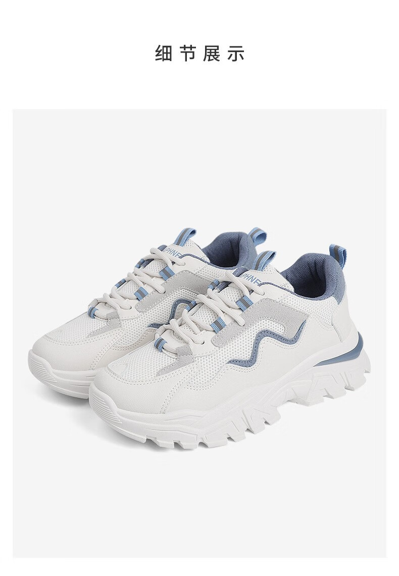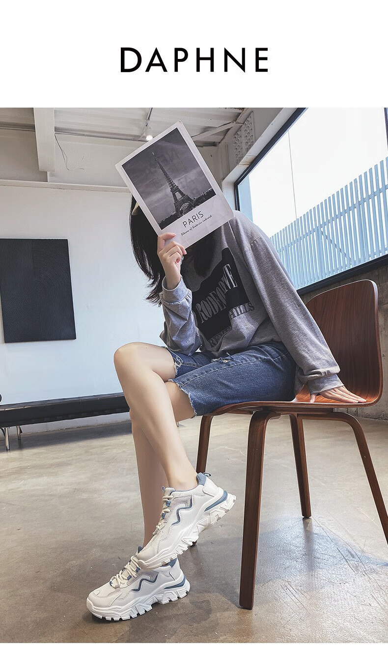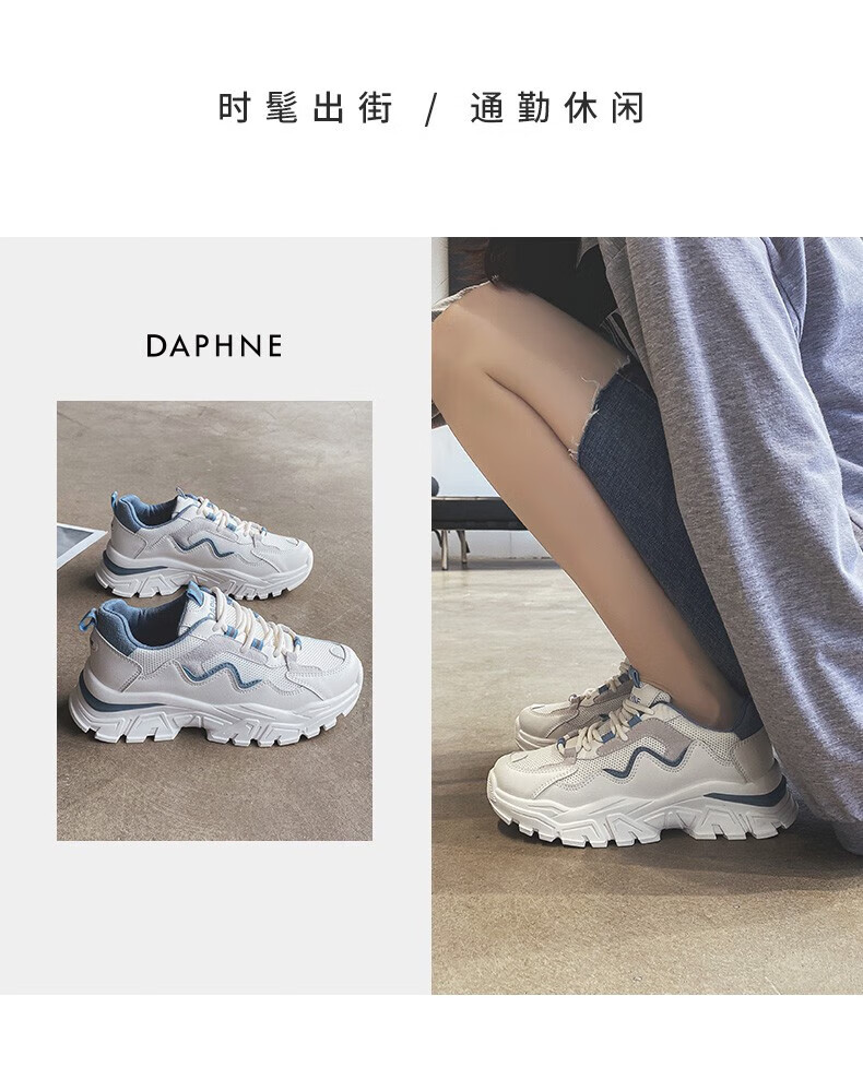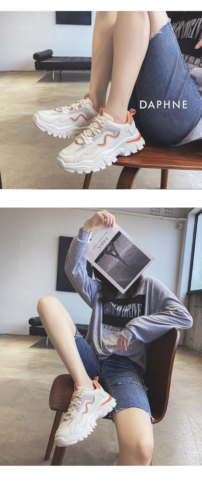 达芙妮(DAPHNE)女鞋增高小白鞋女透气鞋子女2021新款休闲运动鞋JL 米黑色 40
