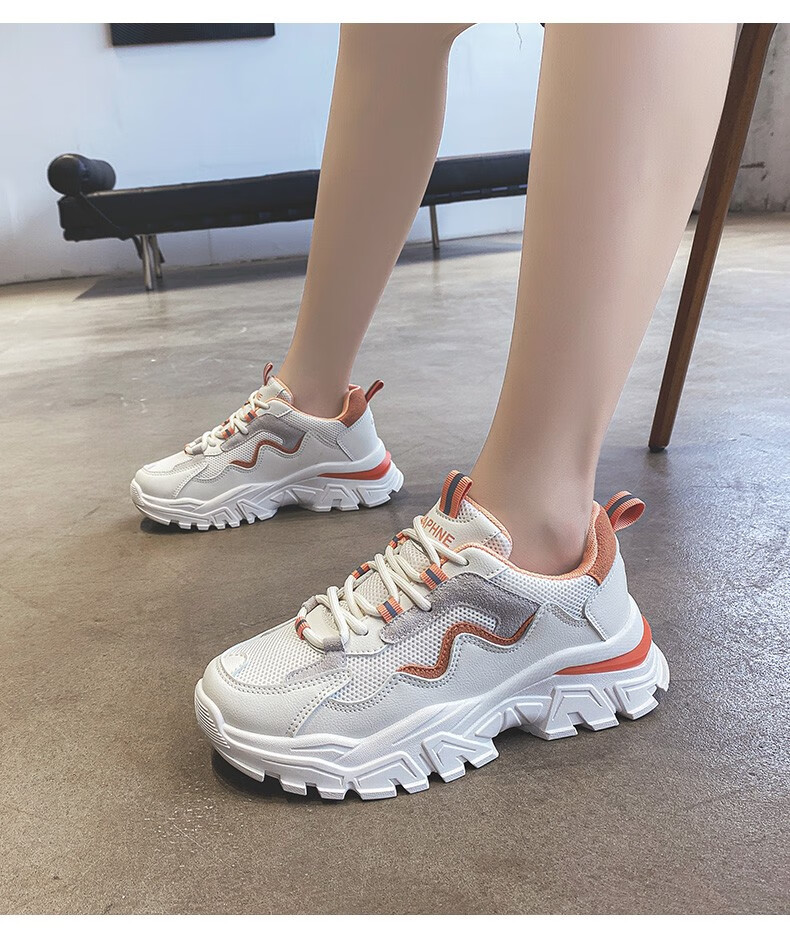 星期六星期六丑萌镂空老爹鞋女2025春季新款女鞋户外徒步鞋登山鞋运动鞋 杏色 37