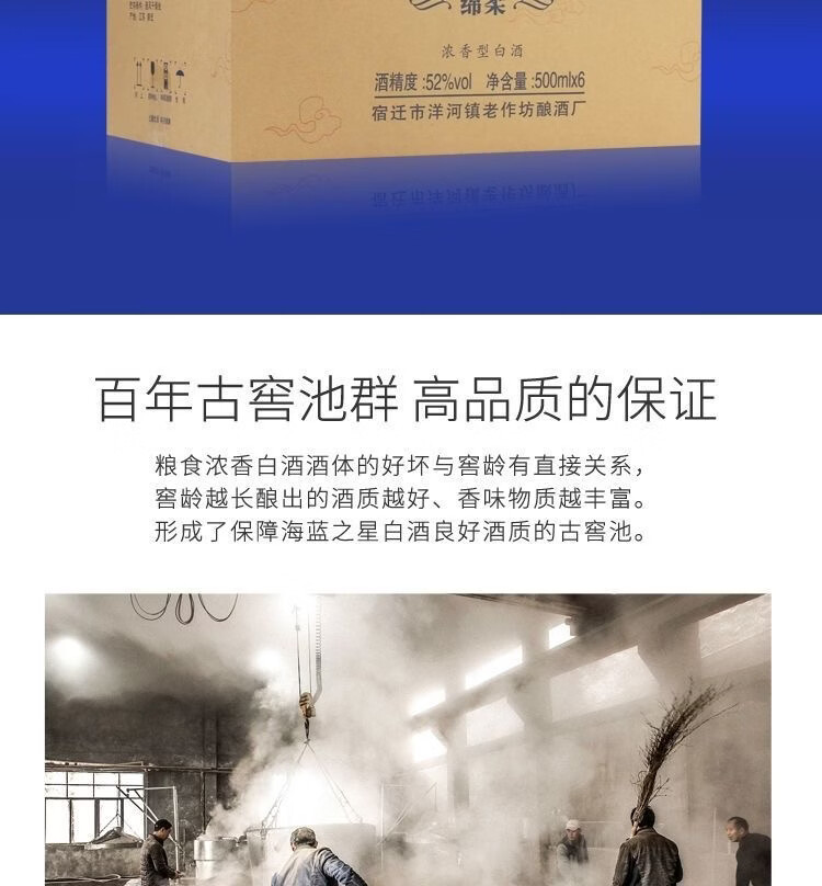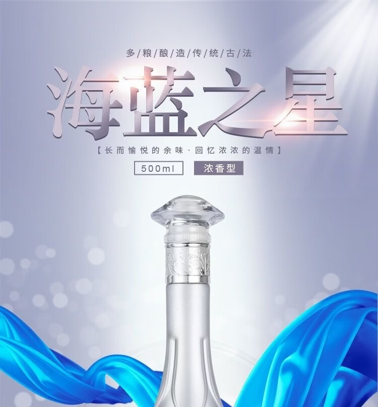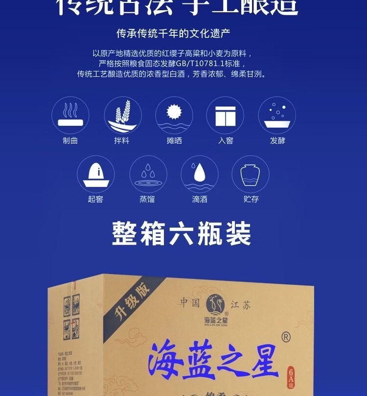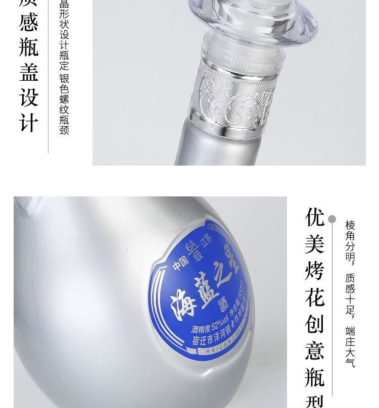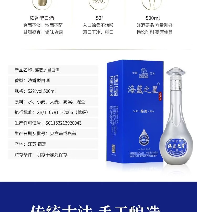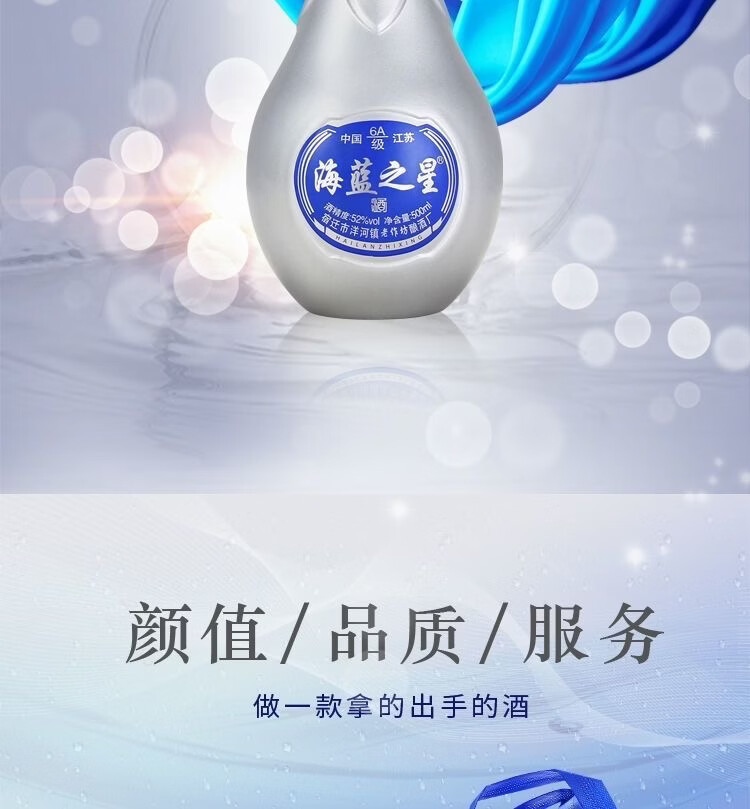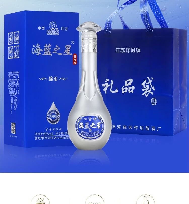 海蓝之星52度浓香型白酒500ml*6瓶整箱赠3礼品袋 52度 500mL 6瓶