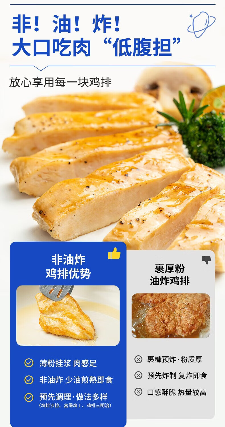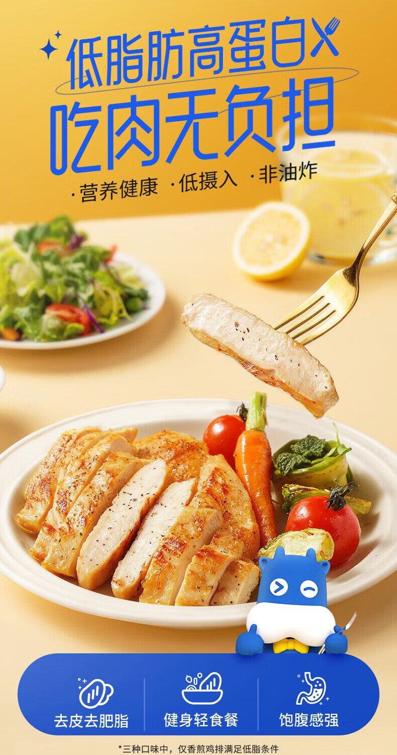 小牛凯西鸡排鸡胸肉健身轻食代餐食品空气炸锅食材半成品鸡扒 小鲜肉香煎鸡排100g*10片