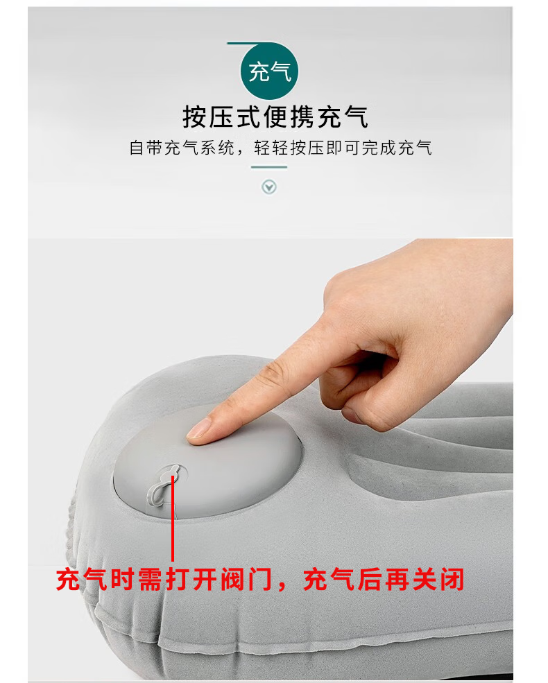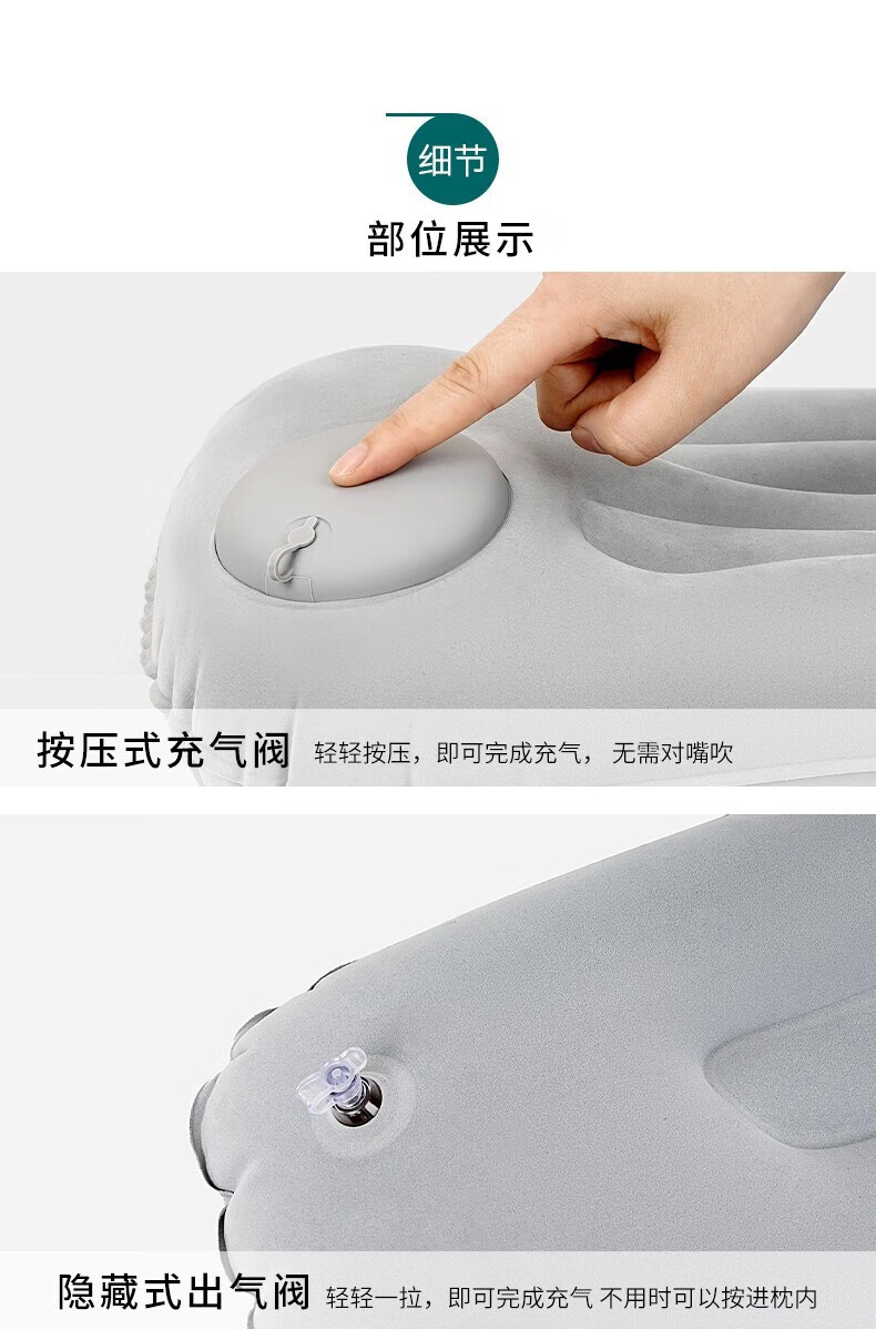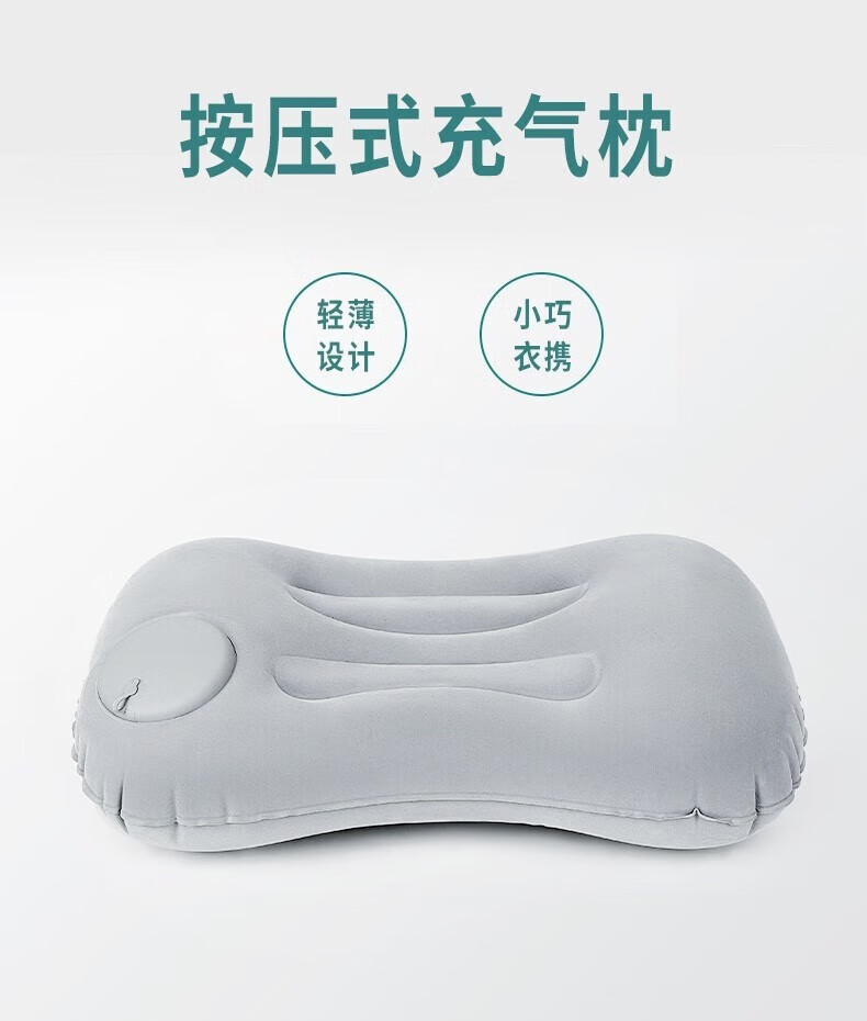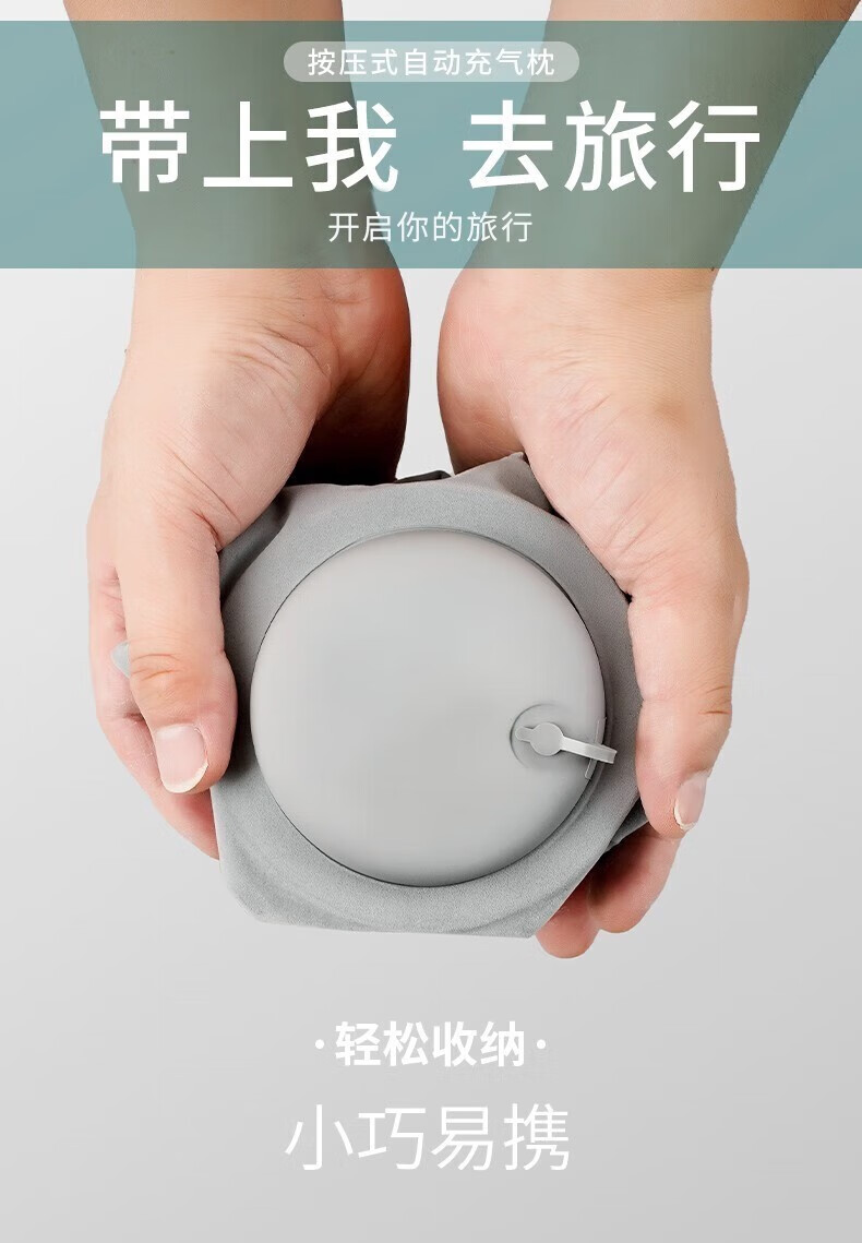 山头林村【优选百货】 充气枕头 户外便携式自动充气枕旅行枕靠垫按压午睡 【灰色】