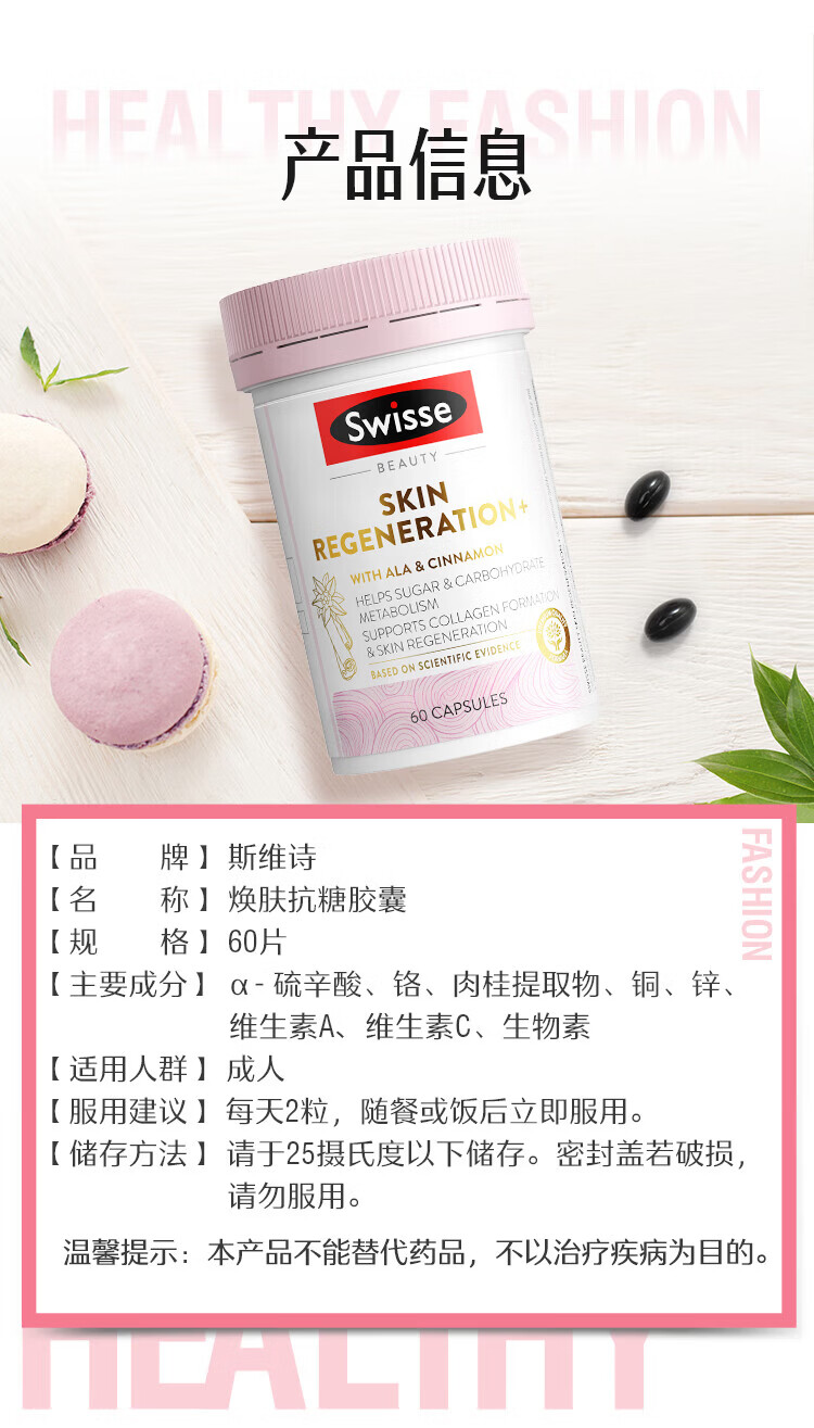 Swisse 斯维诗抗糖焕肤胶囊 60粒*1瓶加快糖分代谢糖化皮肤 抗糖丸60粒