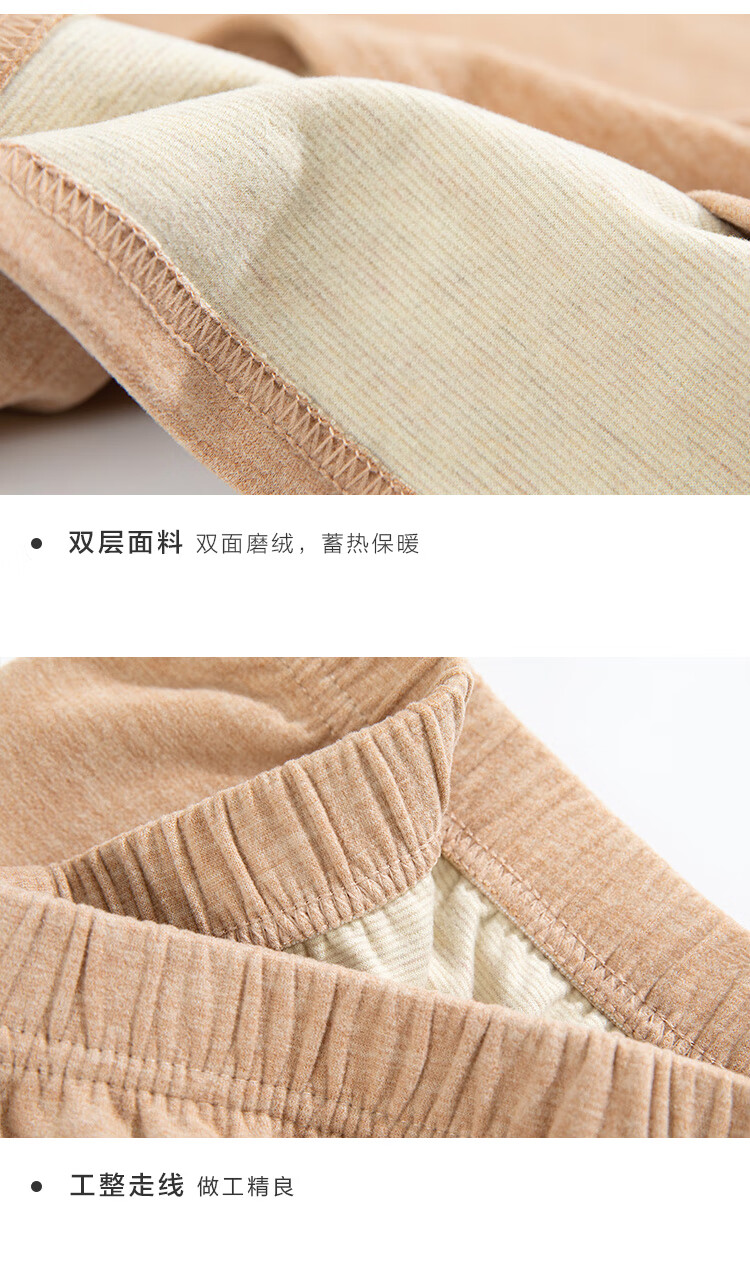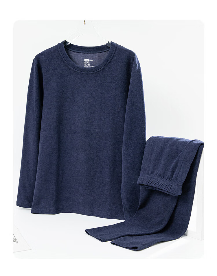 宜而爽圆领纯色保暖套装秋衣情侣款高弹力修身不勒肉暖羊毛双面绒 【男款】牛仔蓝 2XL