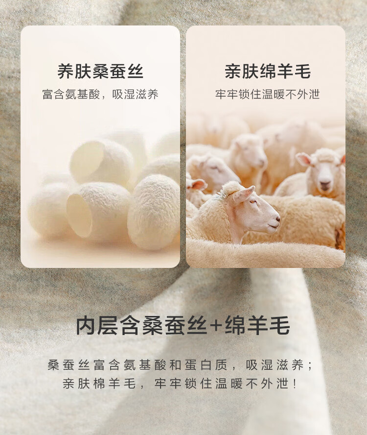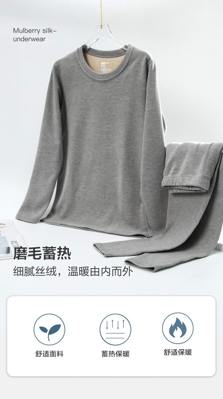 丝界秋冬羊毛蚕丝保暖内衣男款加绒加厚德绒恒温发热秋衣秋裤打底套装 藏青 2XL