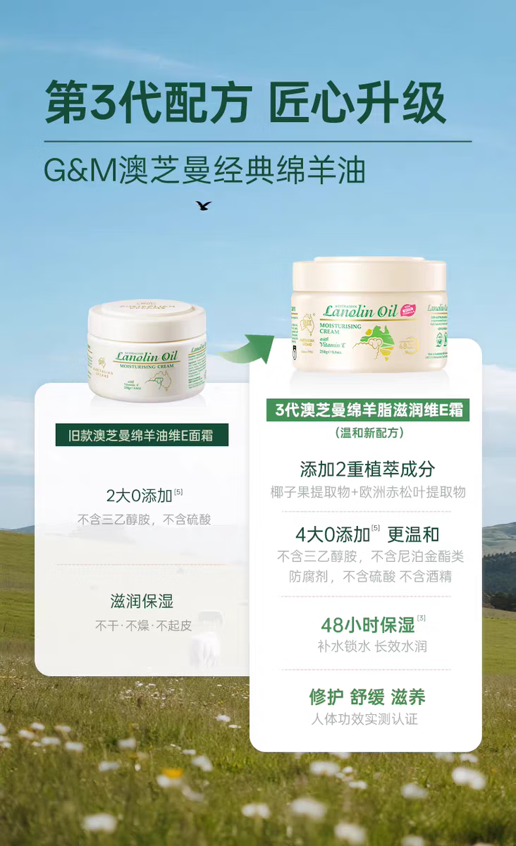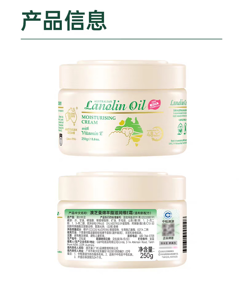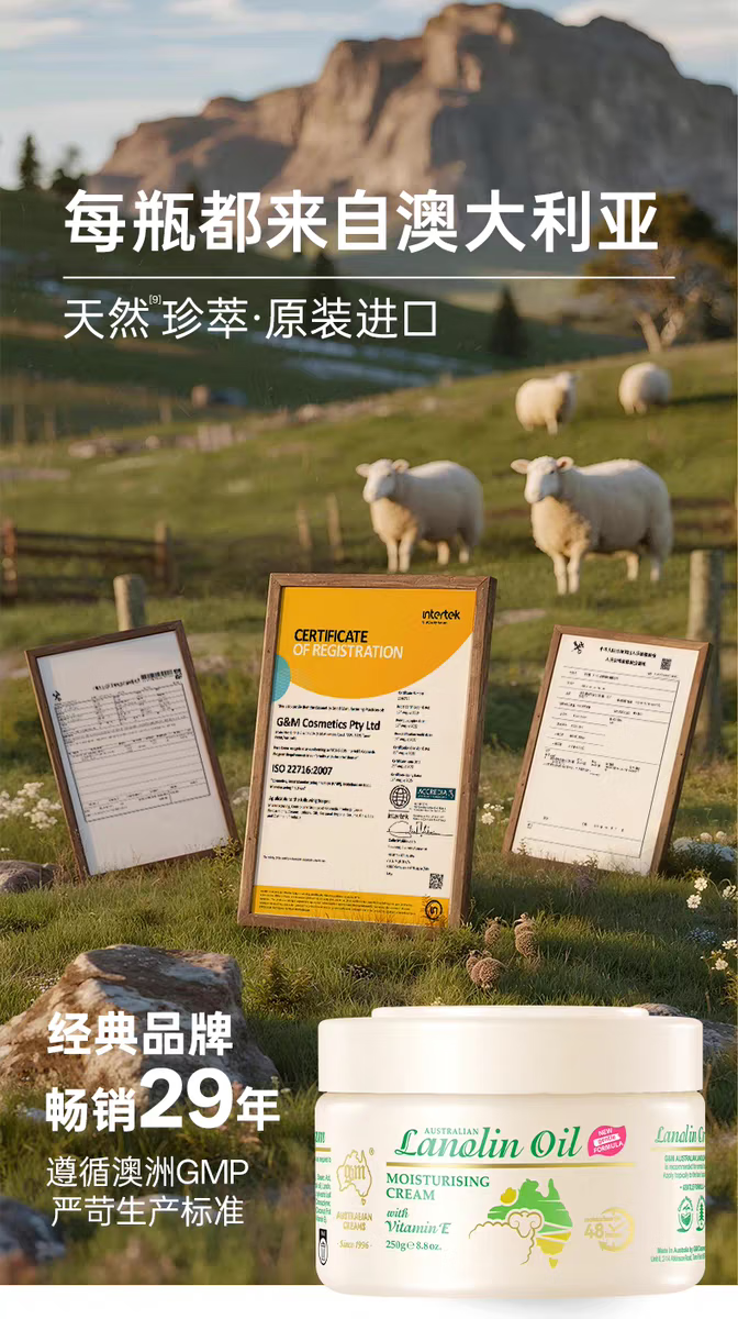 澳芝曼澳洲绵羊油维E滋润面霜素颜补水保湿宝宝日霜护肤乳液身体乳正品 【3代升级】澳芝曼经典绵羊油面霜250g*1罐