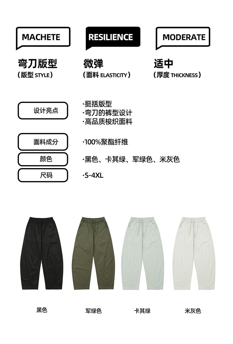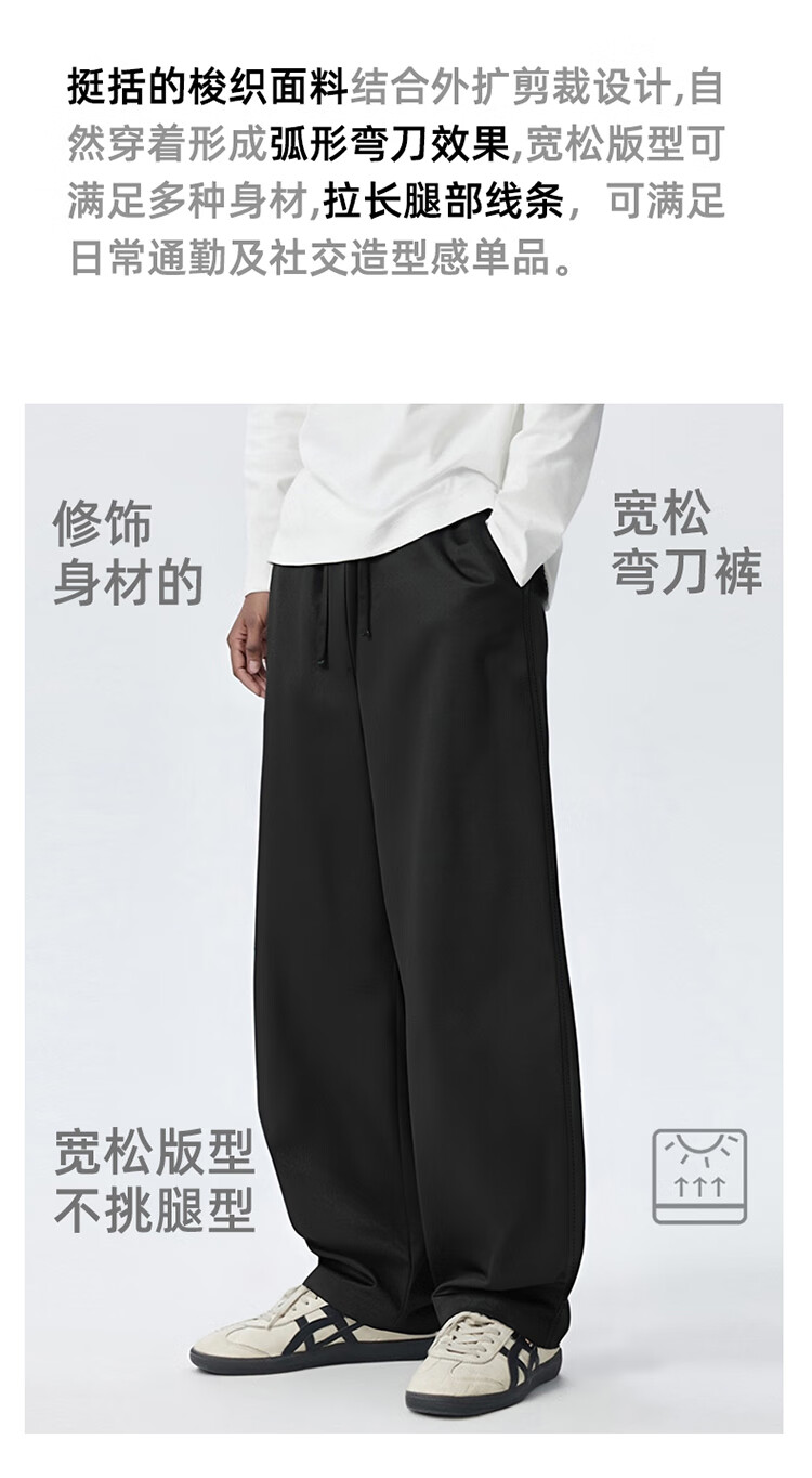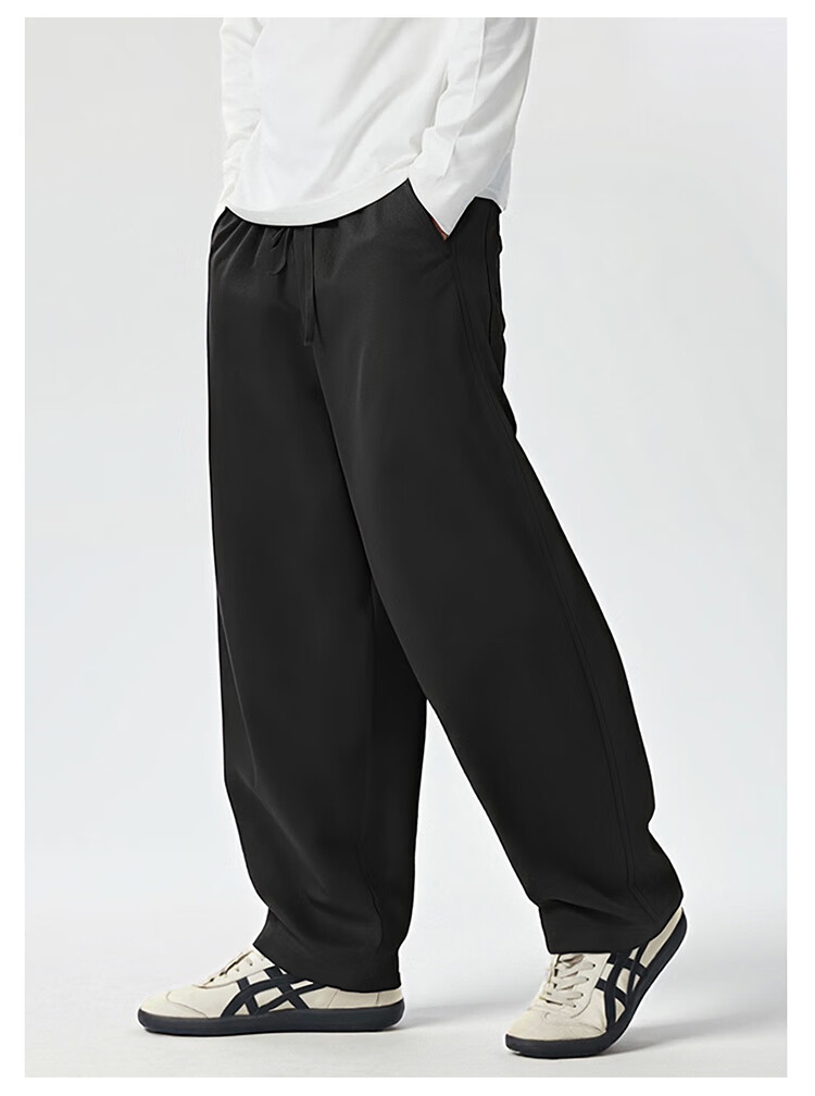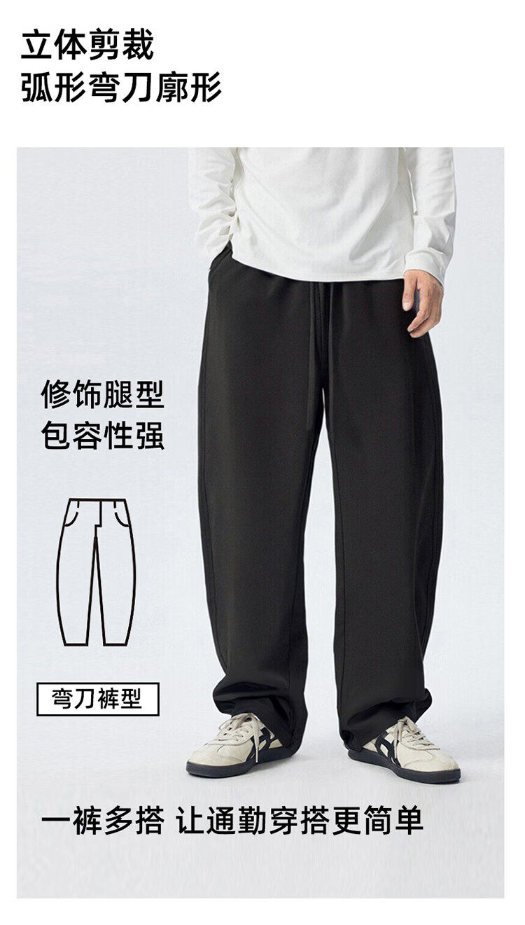 BD.POWER UP+休闲加绒弯刀裤男秋冬季新款简约梭织长裤直筒宽松运动裤子 黑色(加绒款) 4XL 120-140kg
