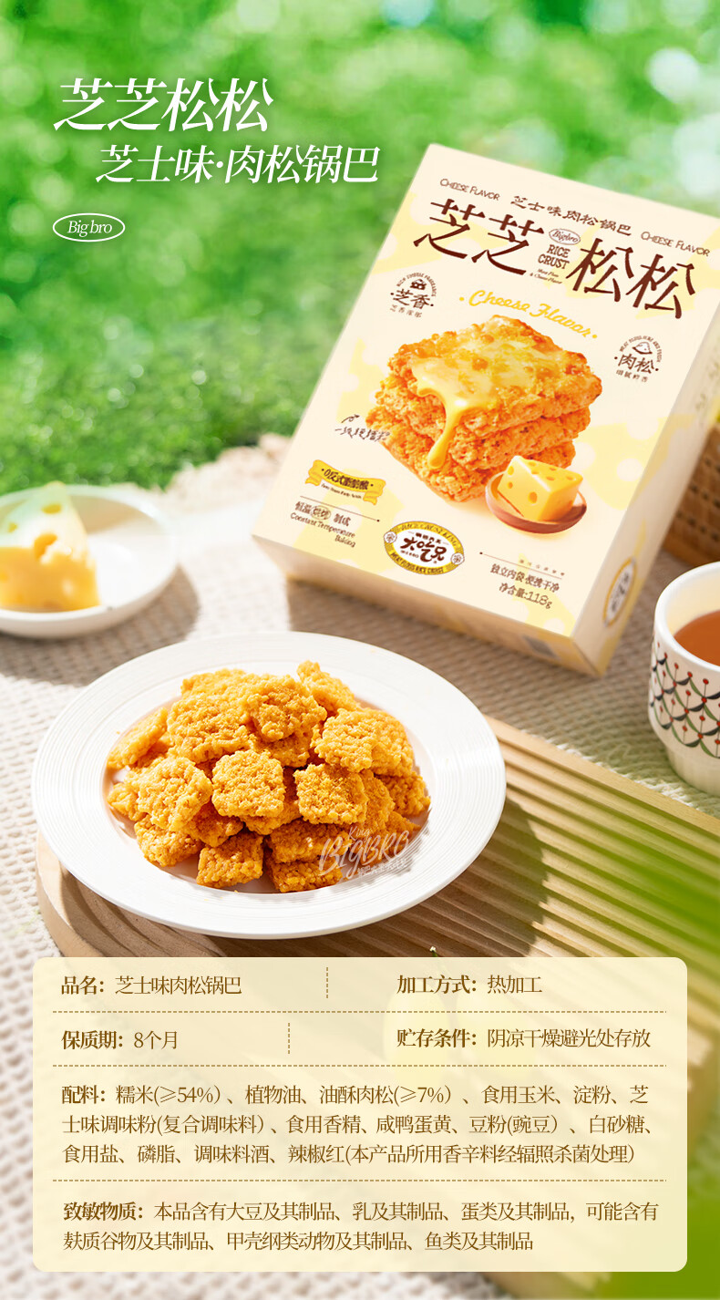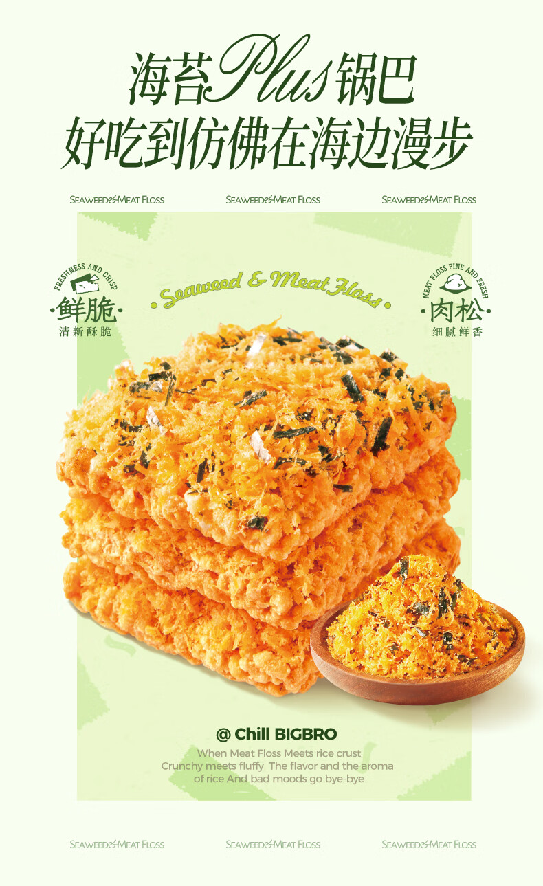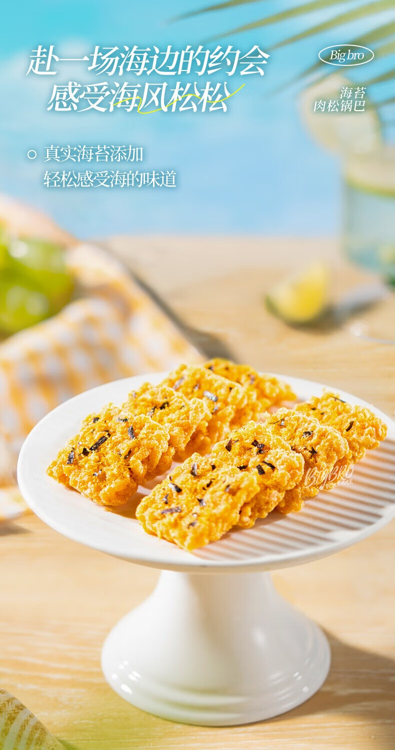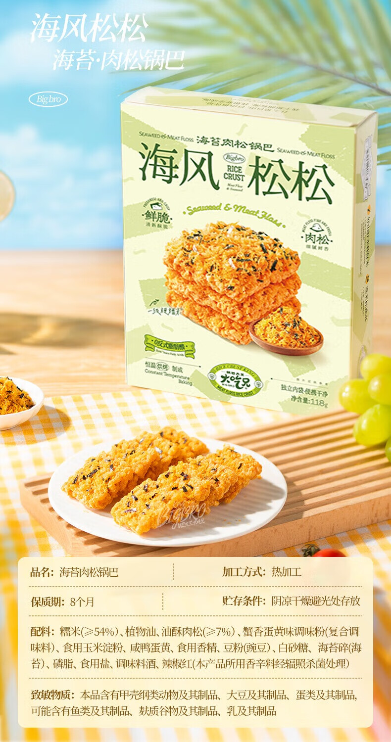 粮悦(LIRAY)大吃兄蛋黄锅巴 海苔肉松 芝士肉松锅巴 追剧休闲小零食独立包装 海苔肉松蛋黄锅巴 168g*1盒