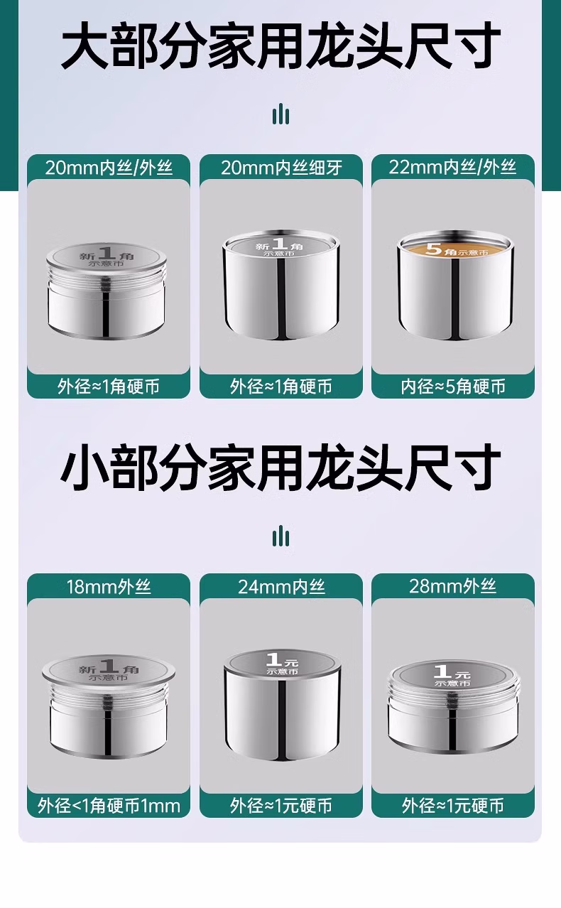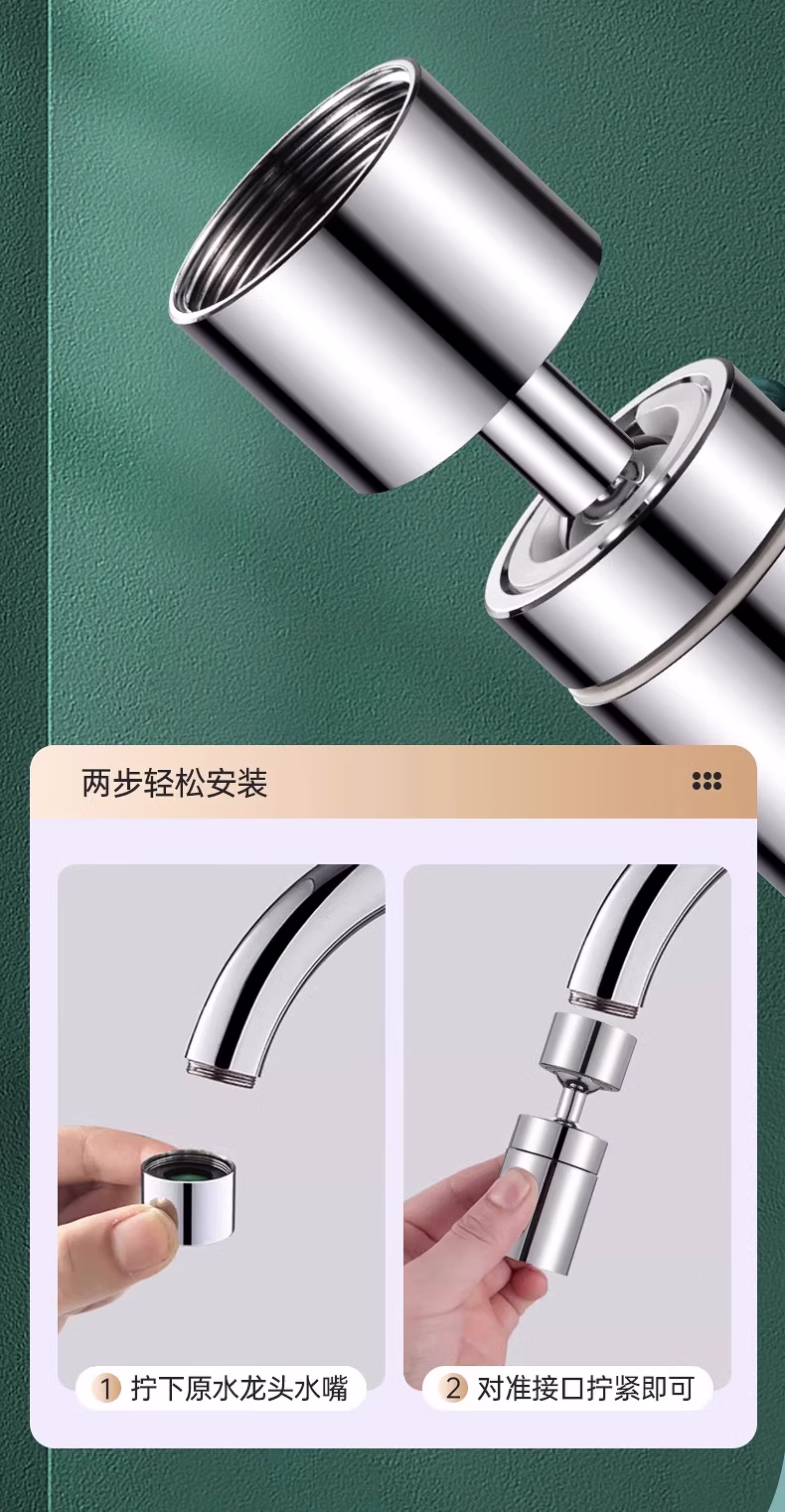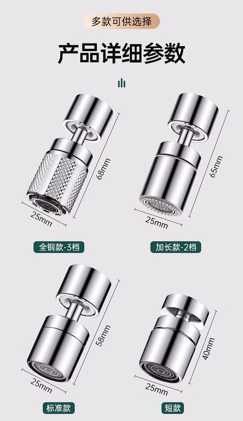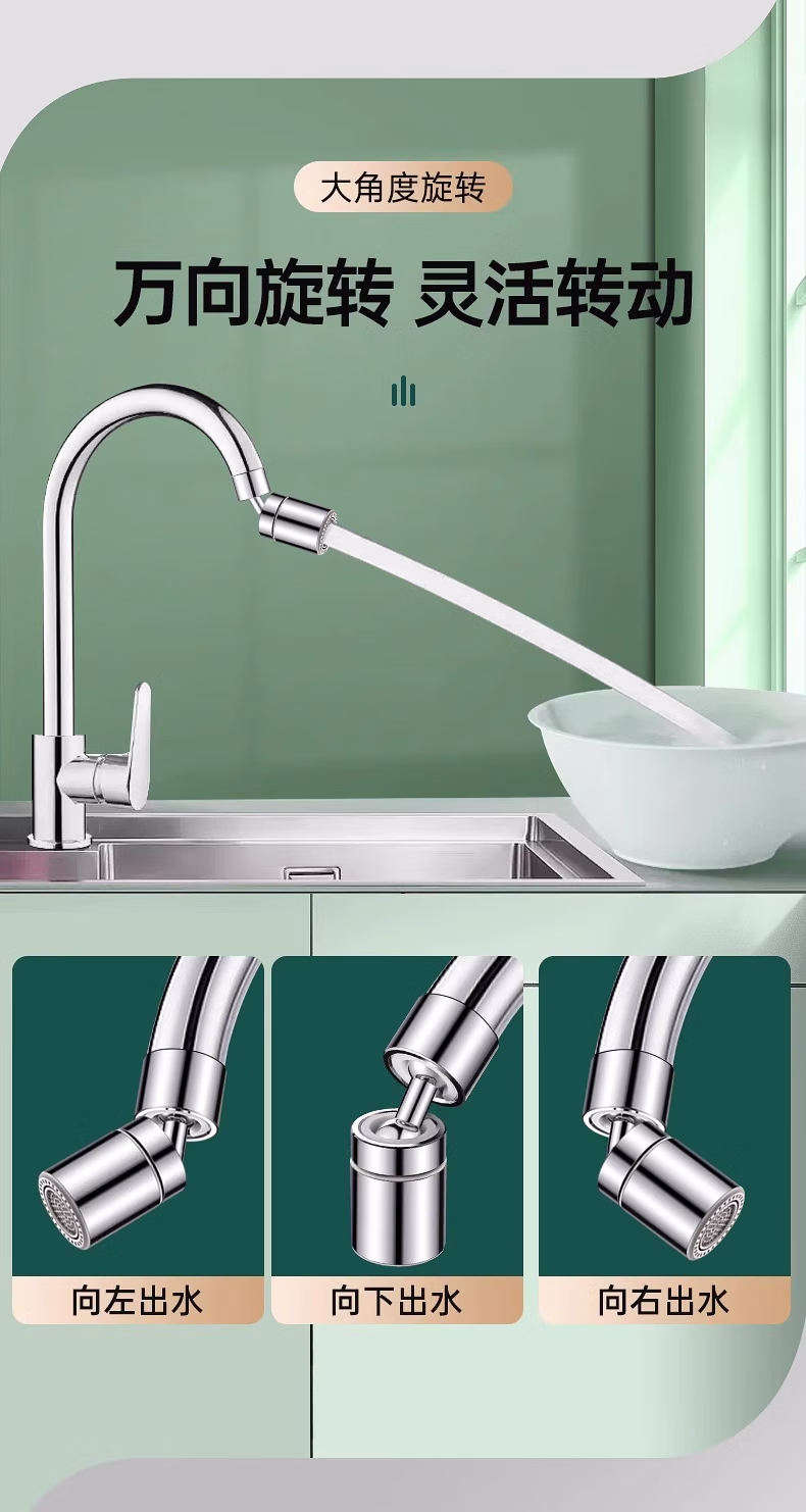 收米水龙头延伸器防溅水万能接头万向微纳米起泡过滤气泡转换套嘴 1个装【不锈钢】万向旋转/单档