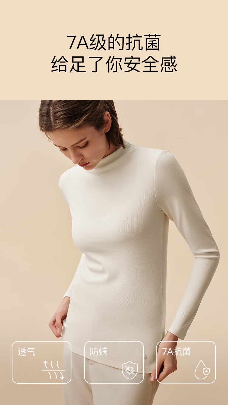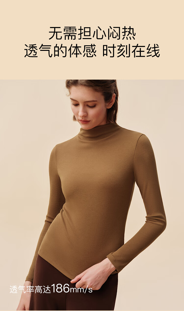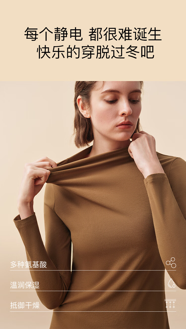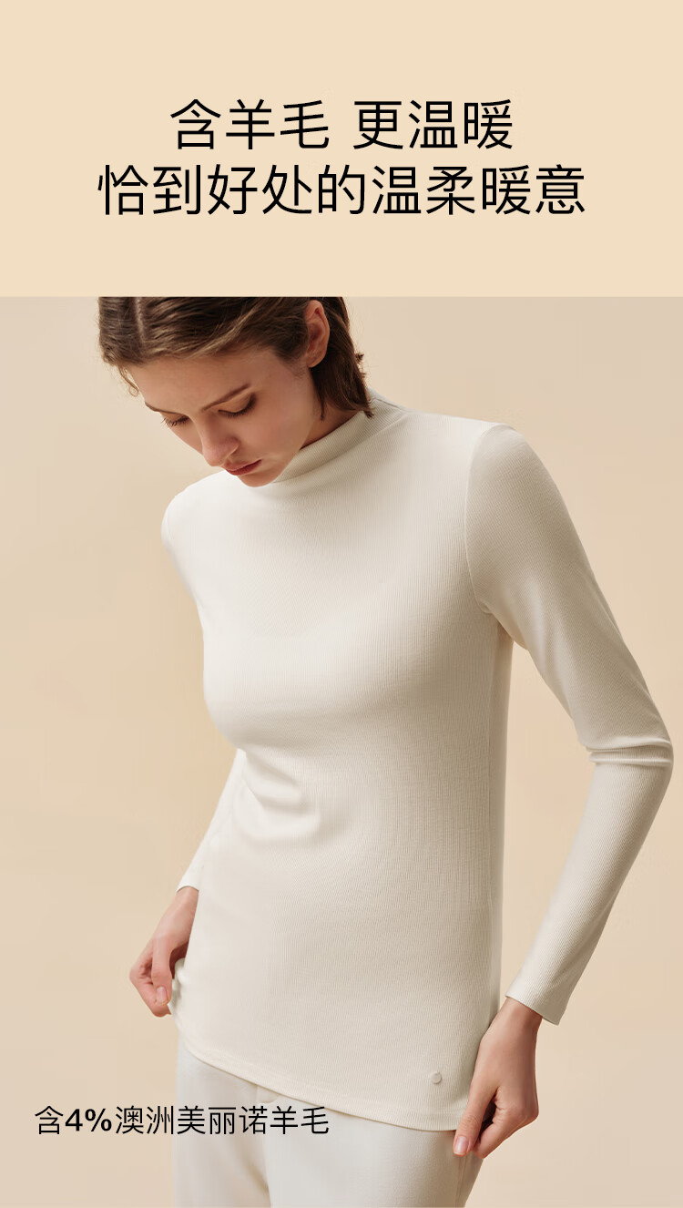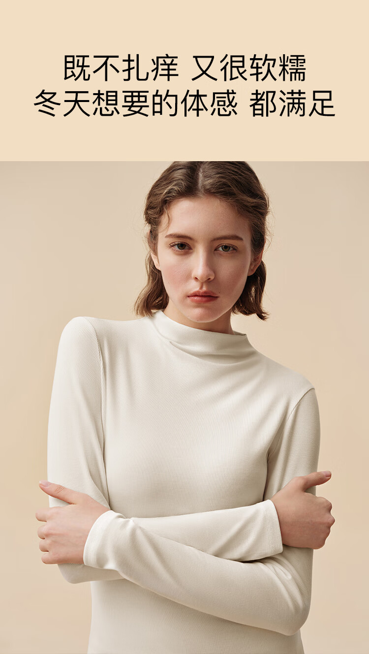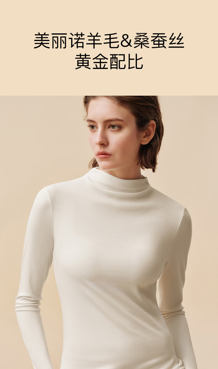 ubras虞书欣同款羽绒化蚕丝含羊毛肌底衣女秋冬打底内搭保暖漆黑色 L