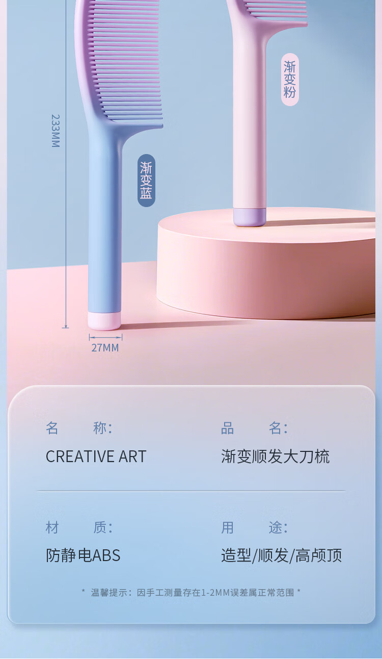 Creative art梳子女儿童秋冬防静电密齿梳理发梳柔顺细齿梳女生宿舍专用分发梳