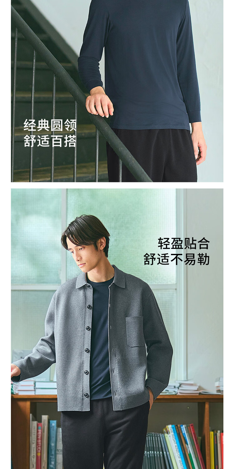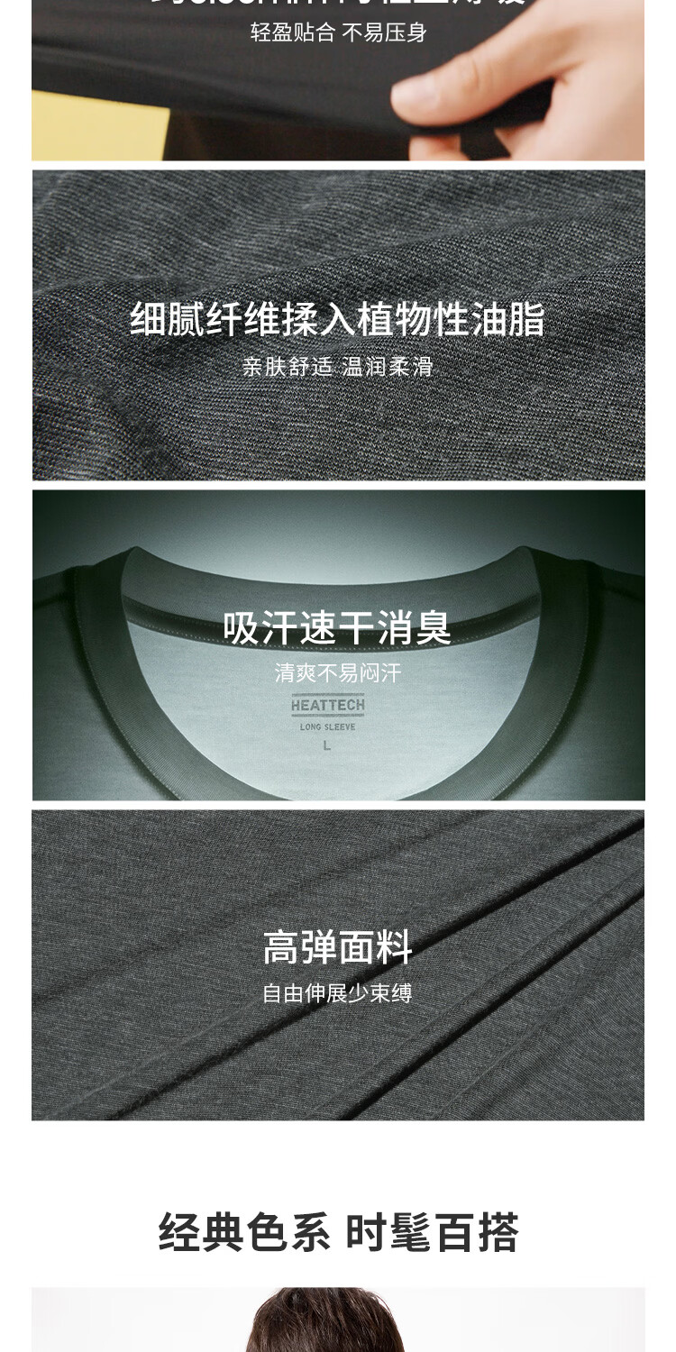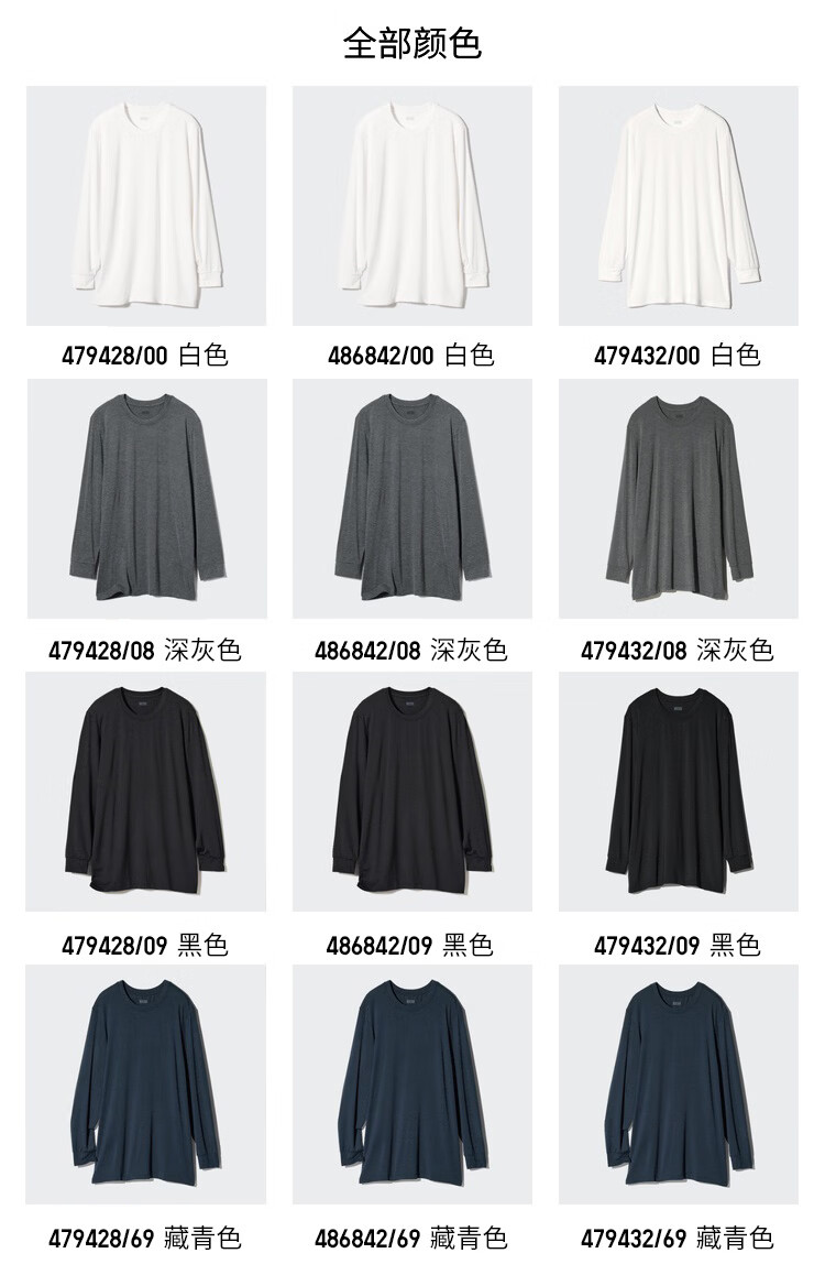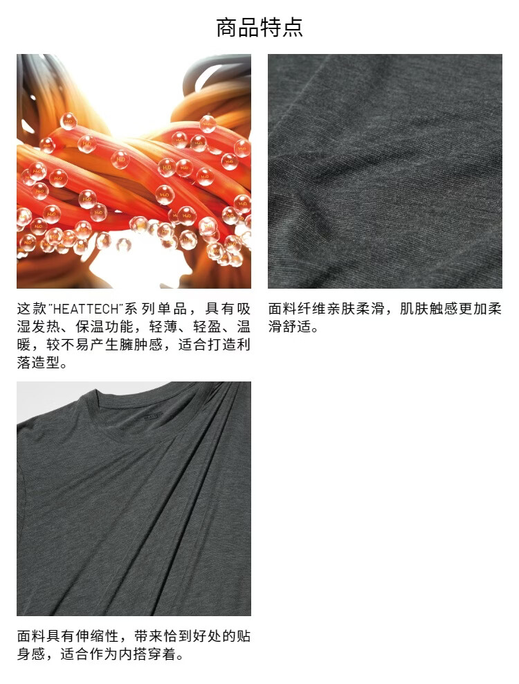 优衣库男装HEATTECH圆领T恤9分袖保暖衣秋衣内衣479428 486842 479428/08深灰色 3XL