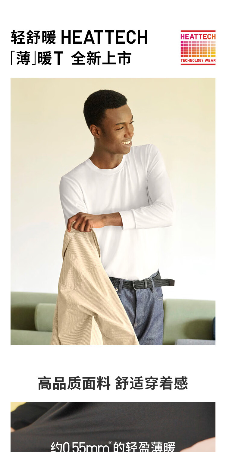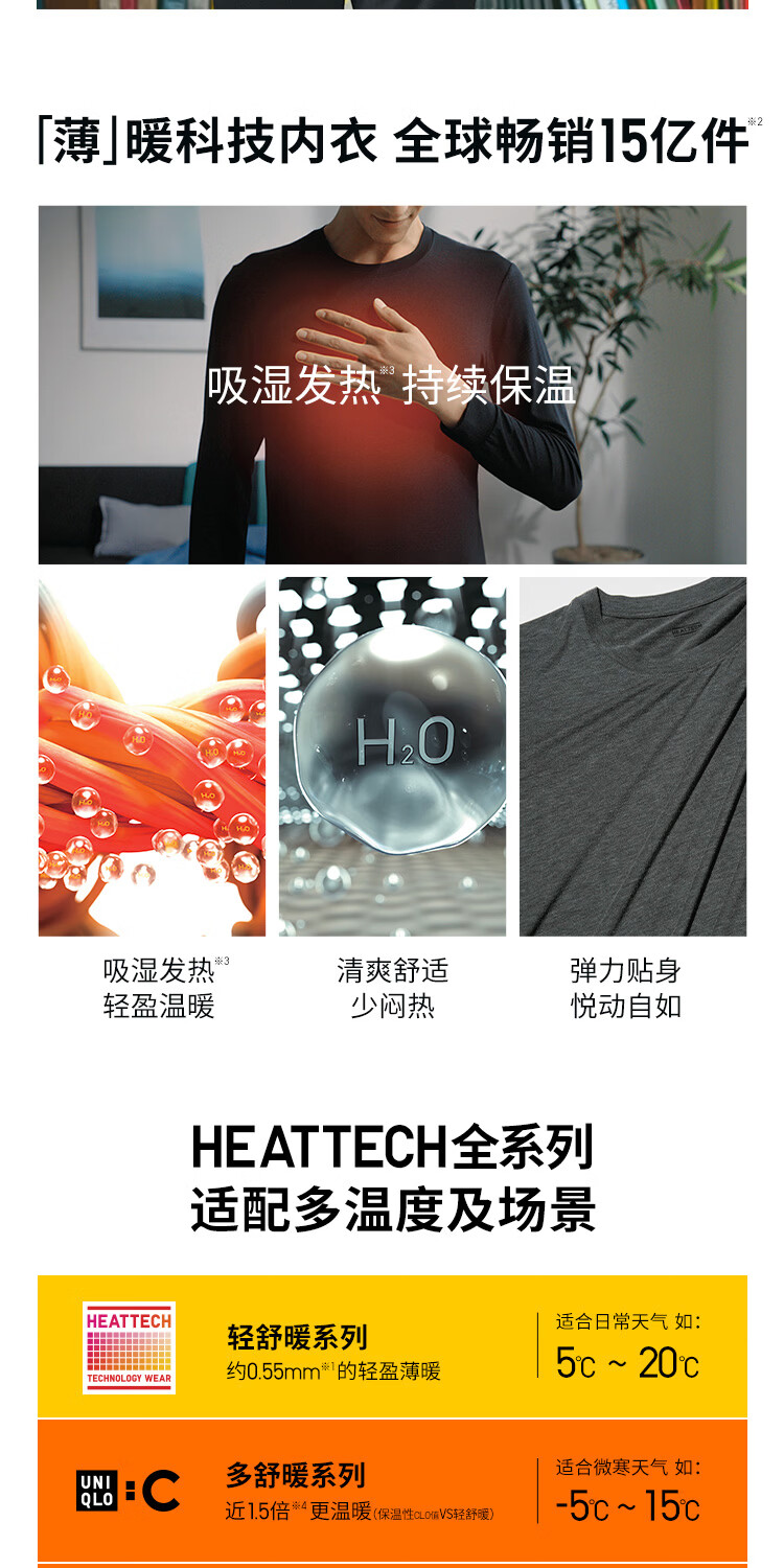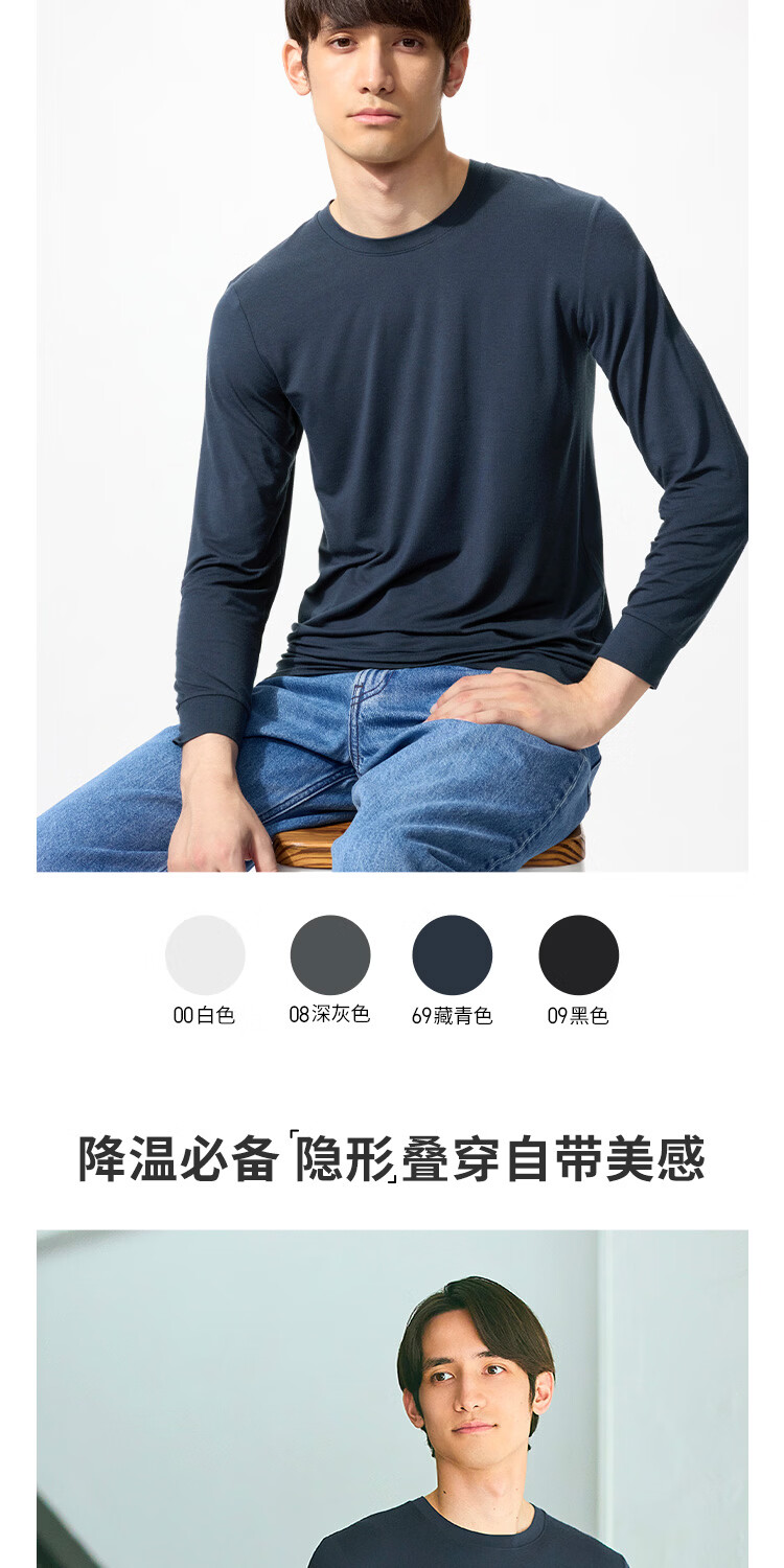 优衣库男装HEATTECH圆领T恤9分袖保暖衣秋衣内衣479428 486842 479428/08深灰色 3XL