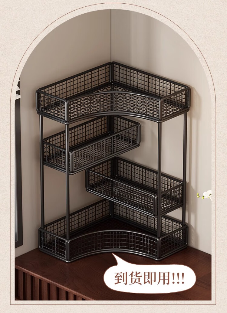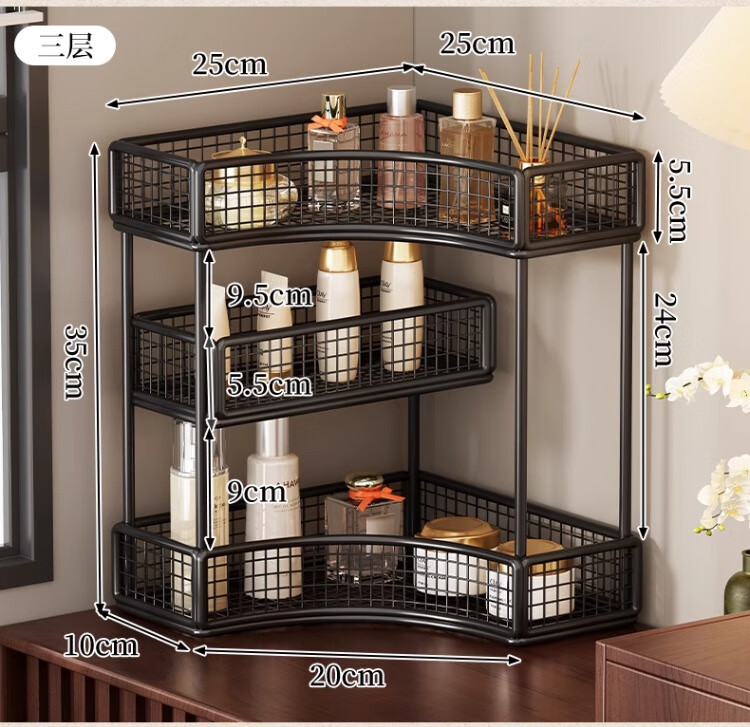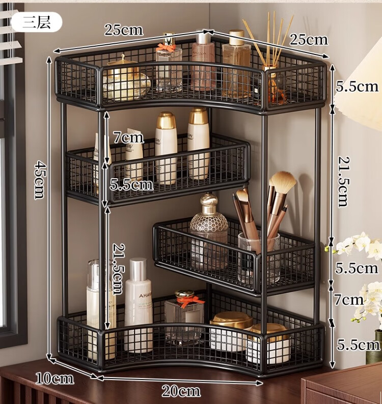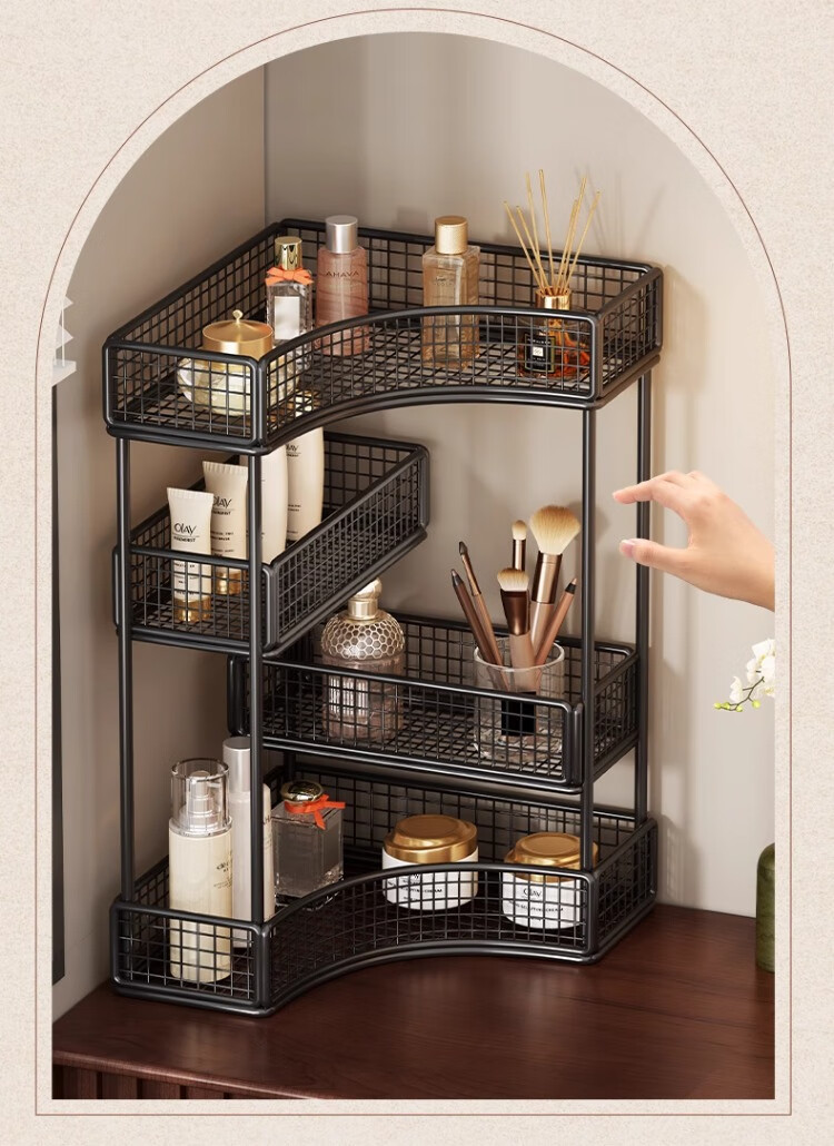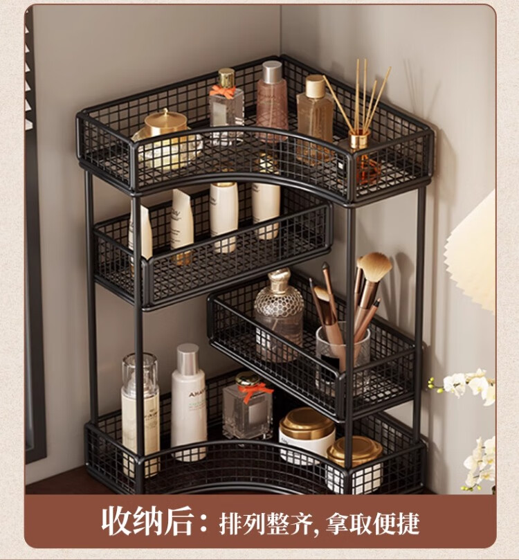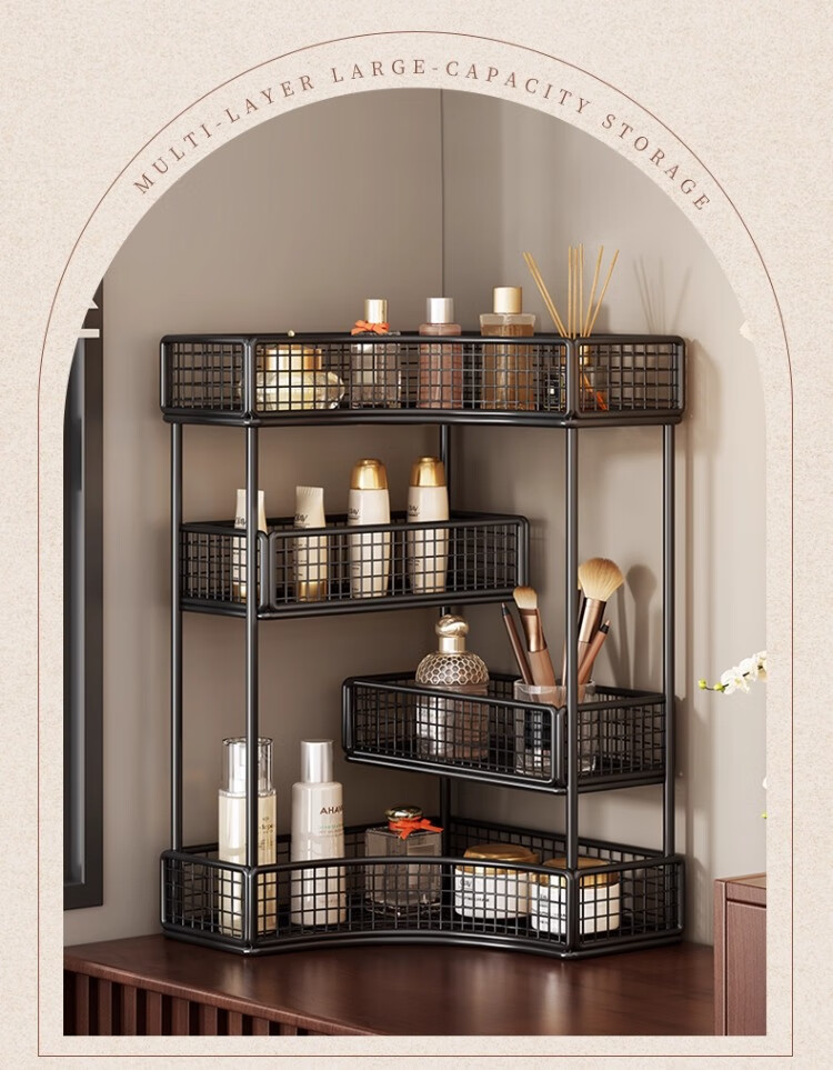 尔思家化妆品置物架护肤品桌面高级感收纳盒大容量梳妆台口红香水架子 黑色-四层