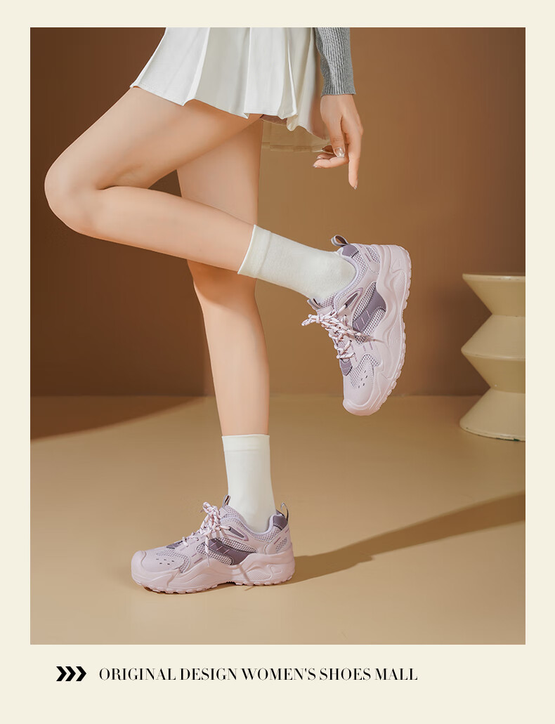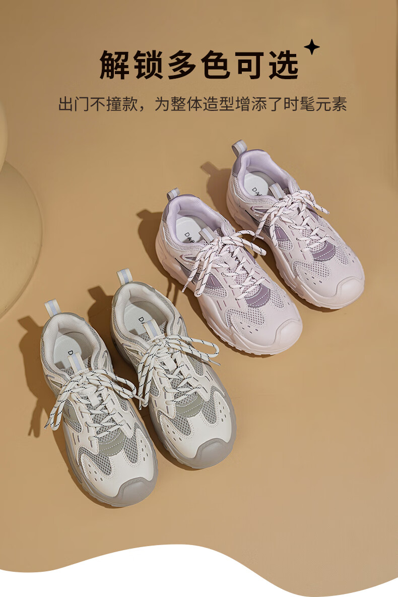 达芙妮多巴胺紫色老爹鞋女2025秋季新款透气轻便厚底户外登山运动鞋子