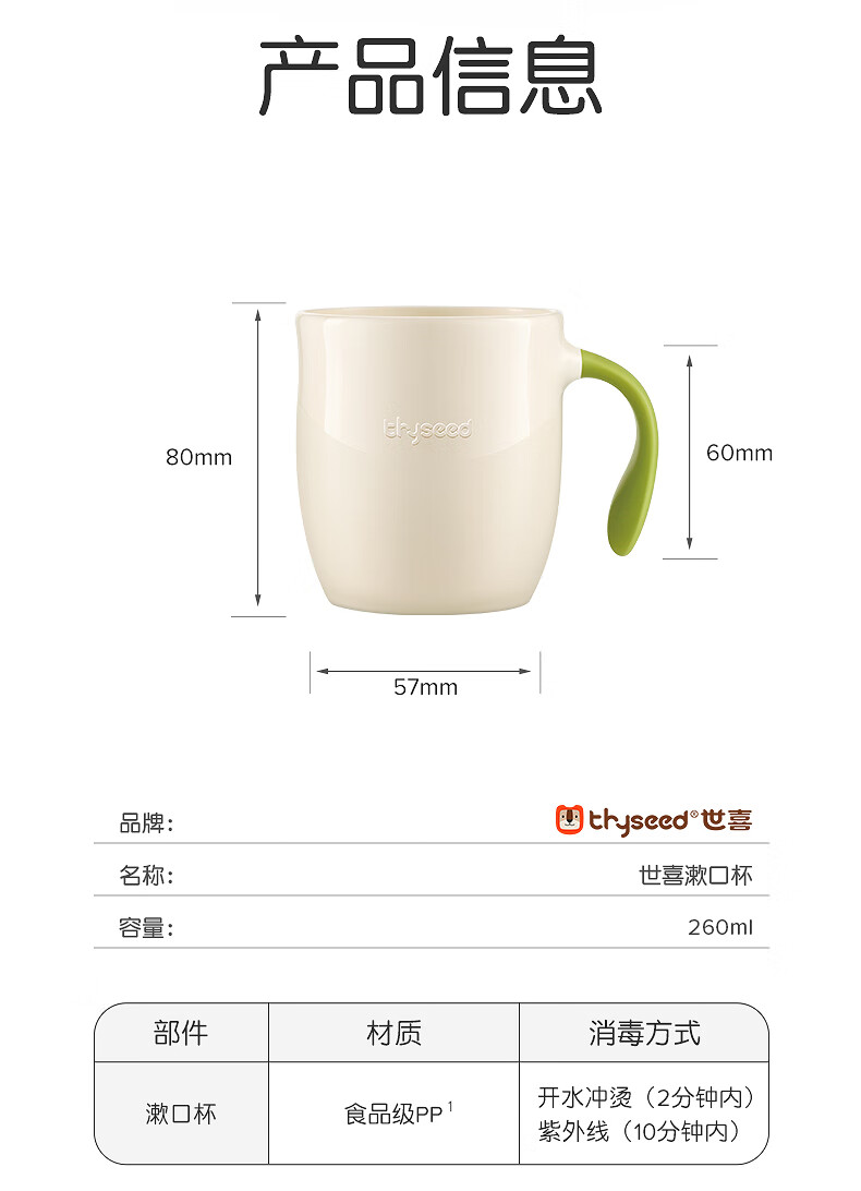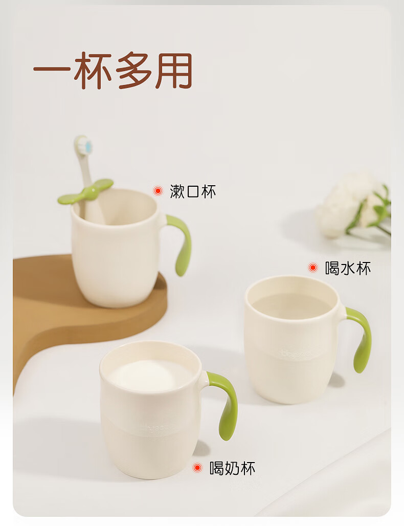世喜敞口杯喝水喝奶 儿童漱口杯子宝宝刷牙杯 一杯三用