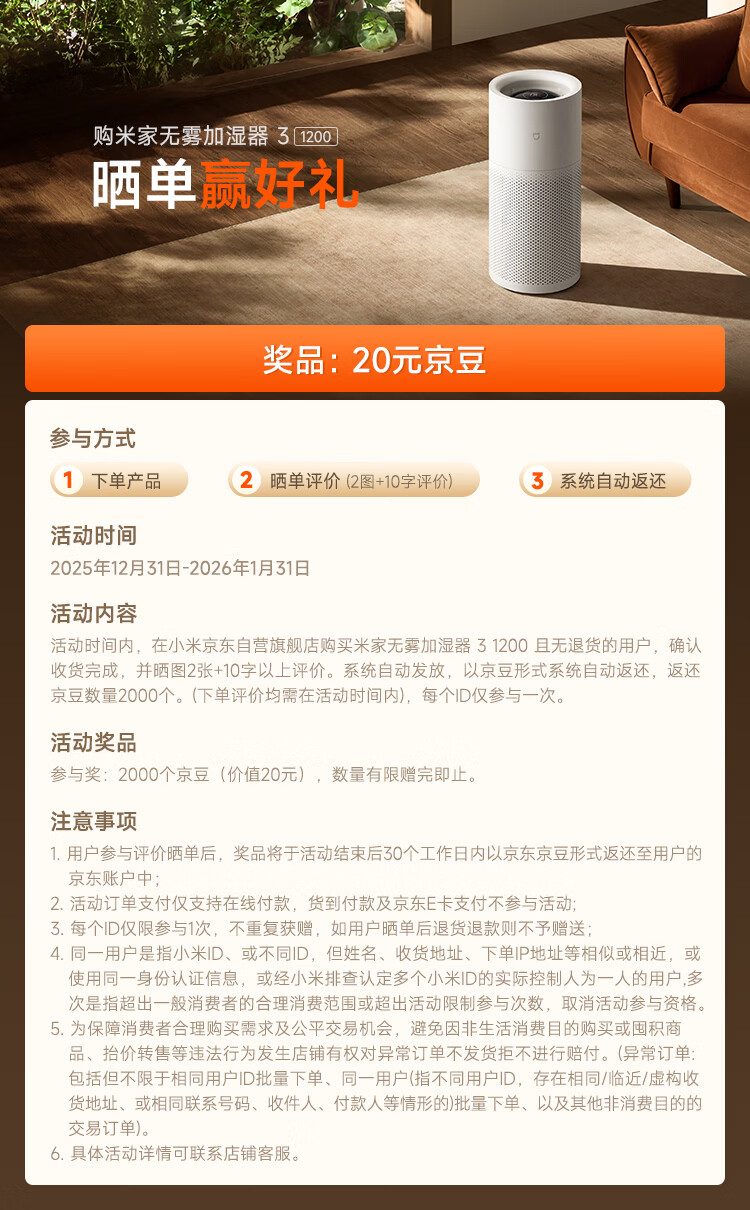 米家小米空气加湿器 母婴级认证无雾加湿器3-1200 保湿礼品卧室大容量家用婴儿孕妇1200ml/h