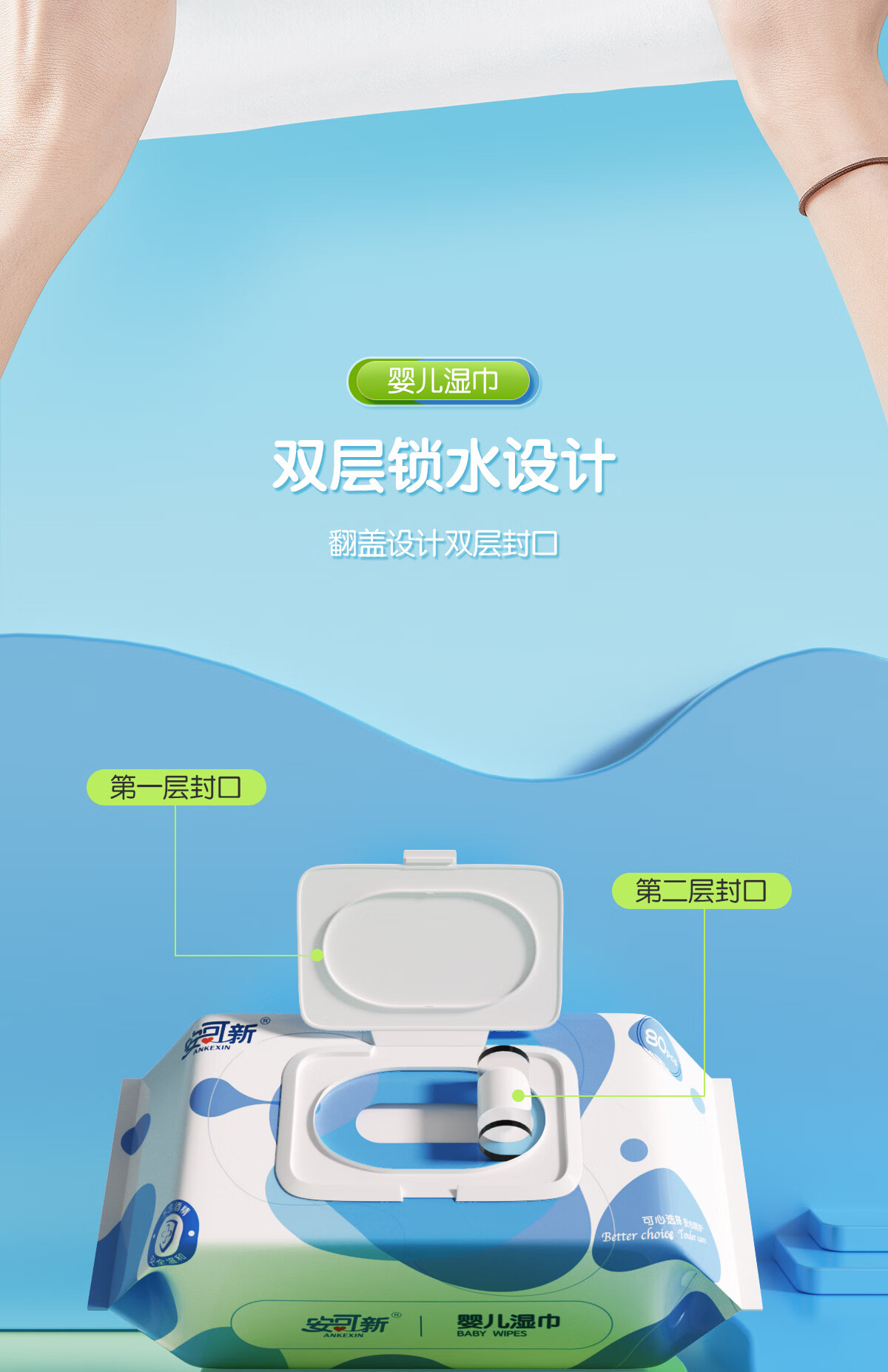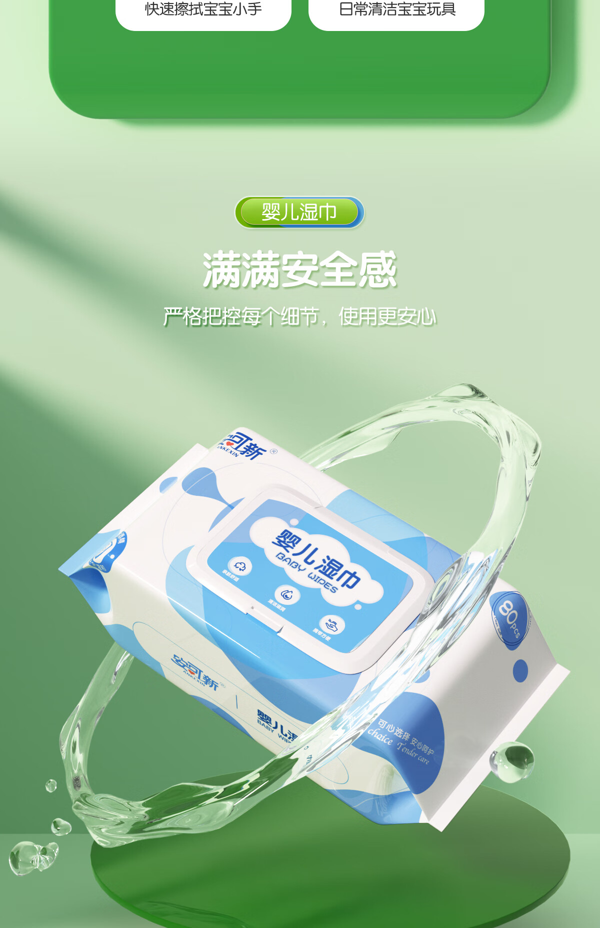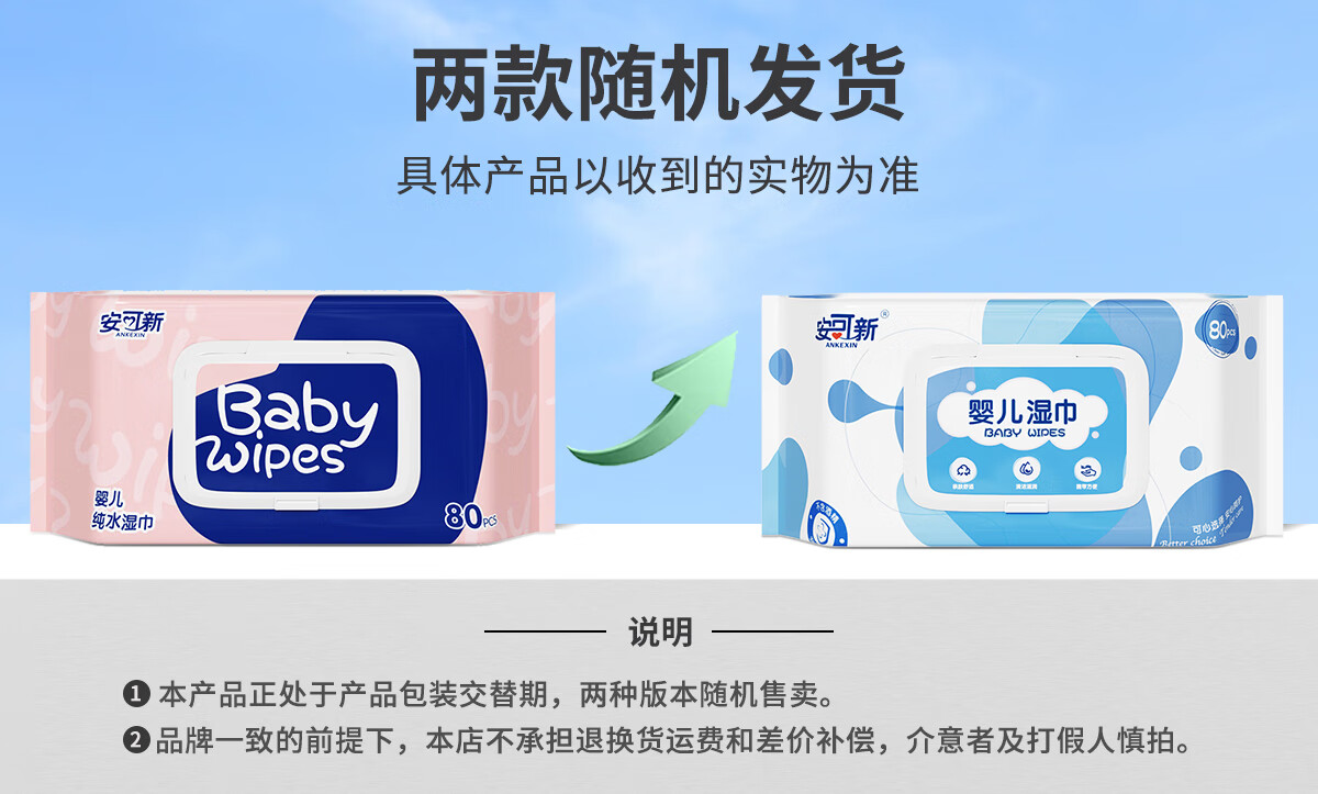 安可新 婴儿湿巾【80片*2包】一次性手口湿纸巾宝宝柔湿巾纯水带盖