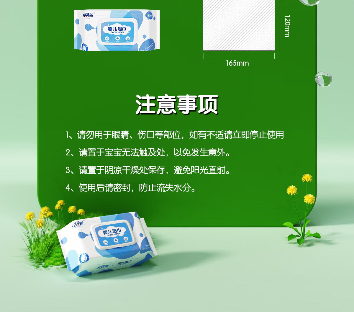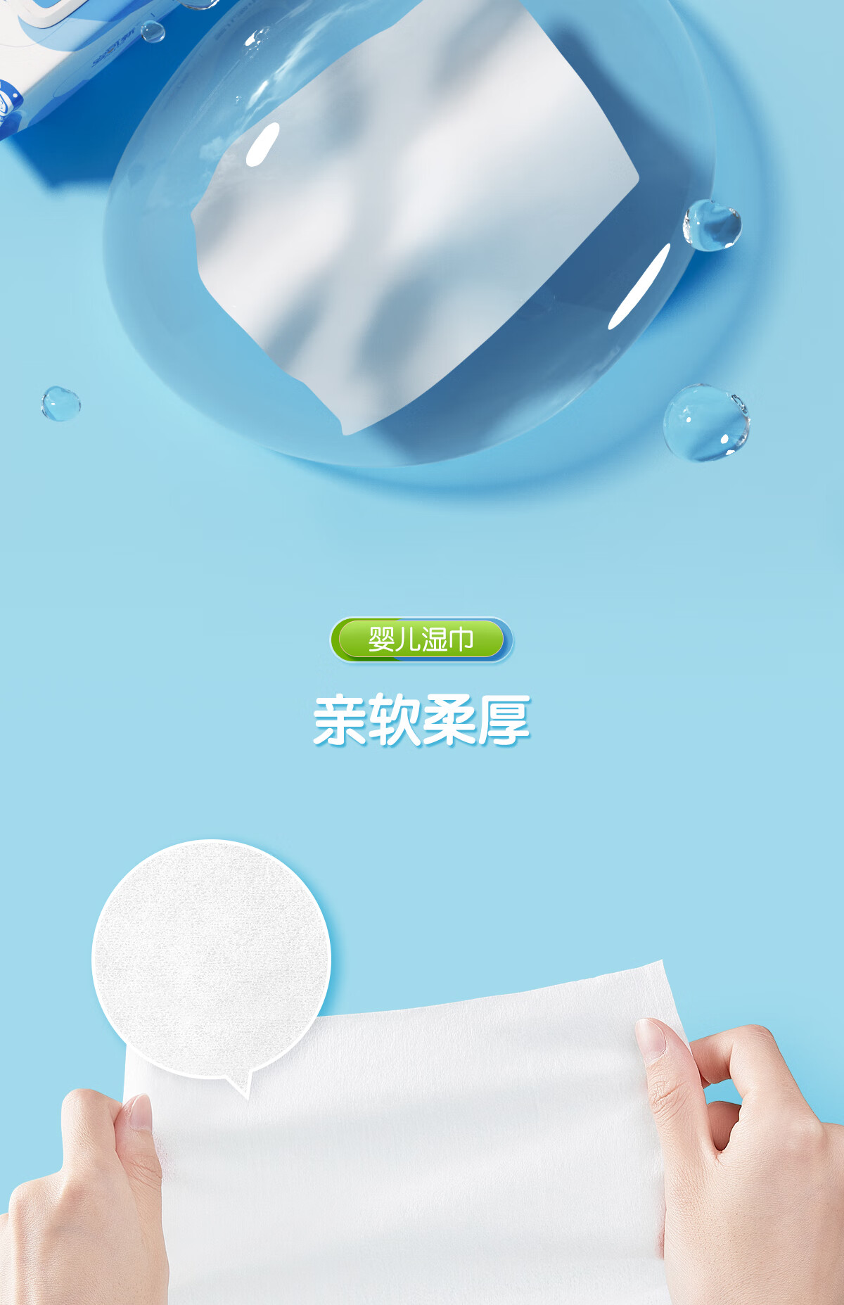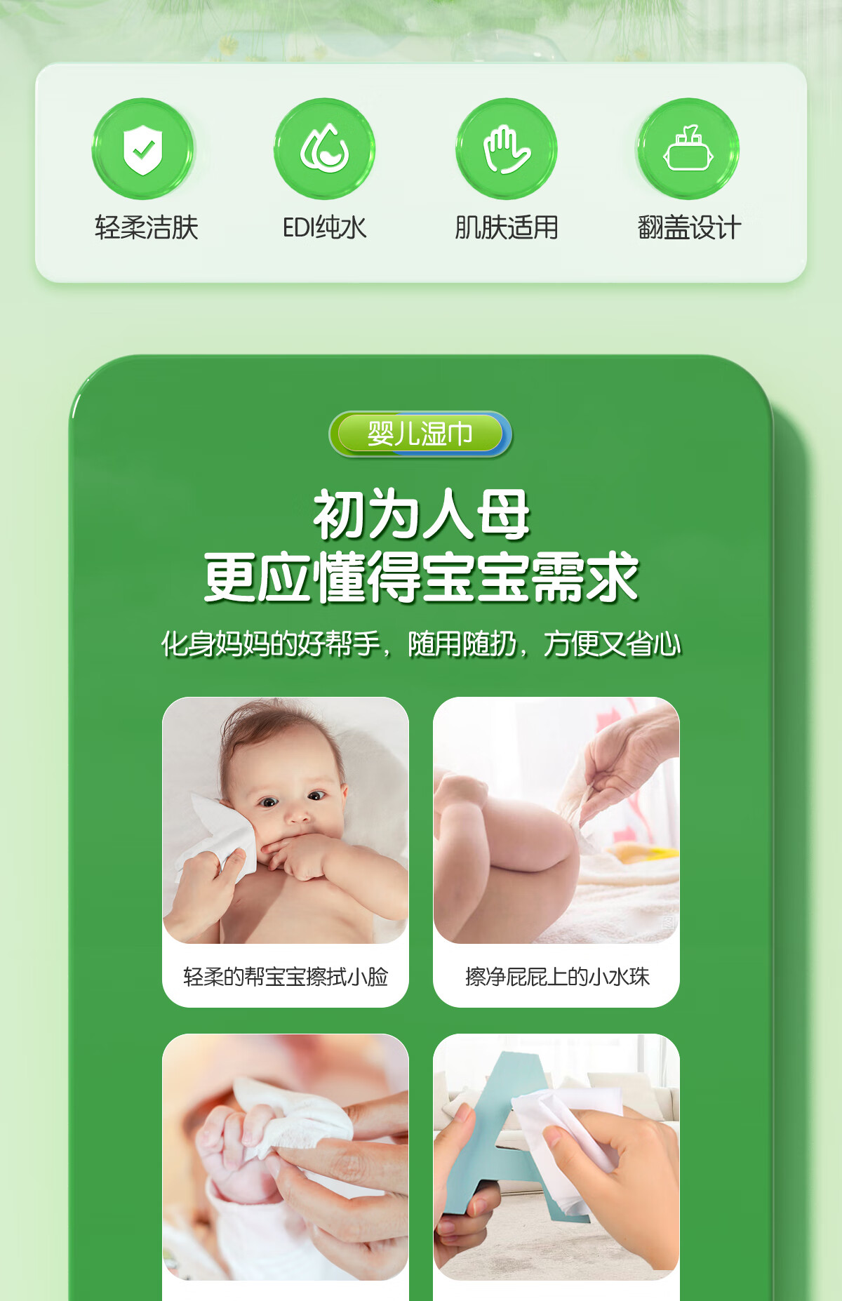 安可新 婴儿湿巾【80片*2包】一次性手口湿纸巾宝宝柔湿巾纯水带盖