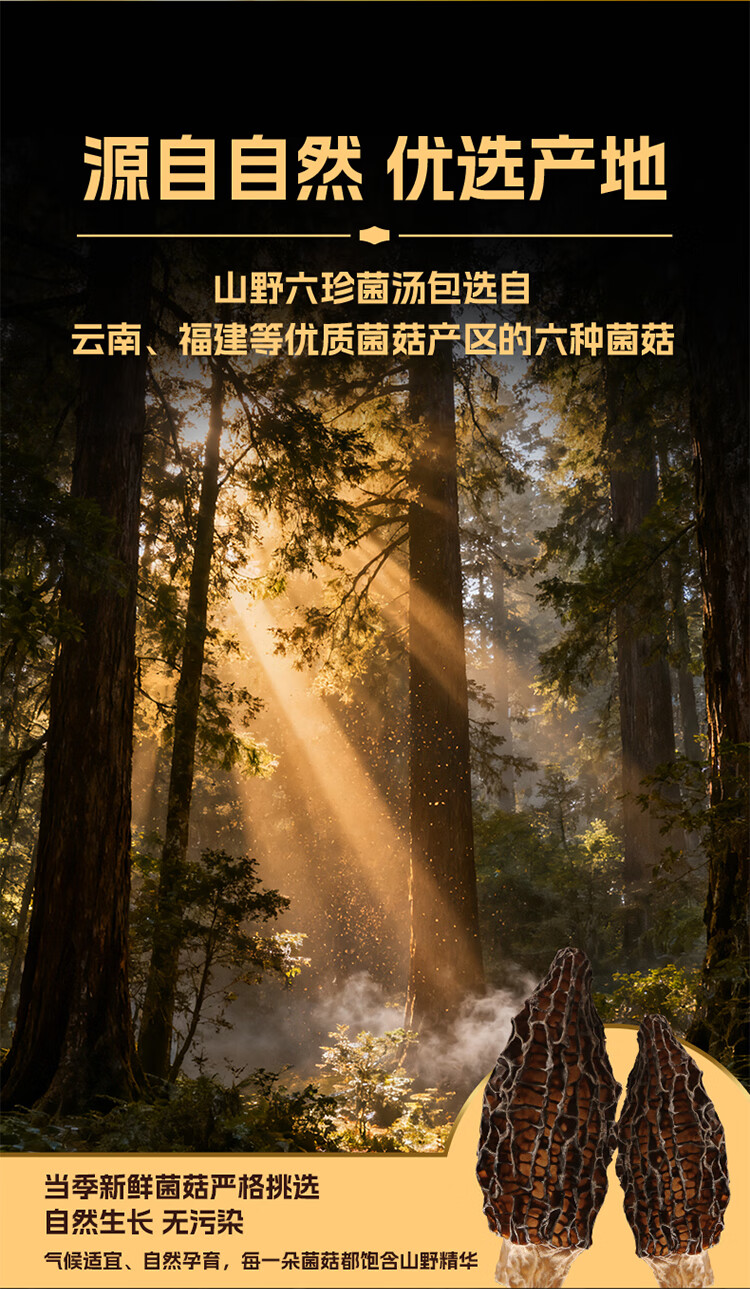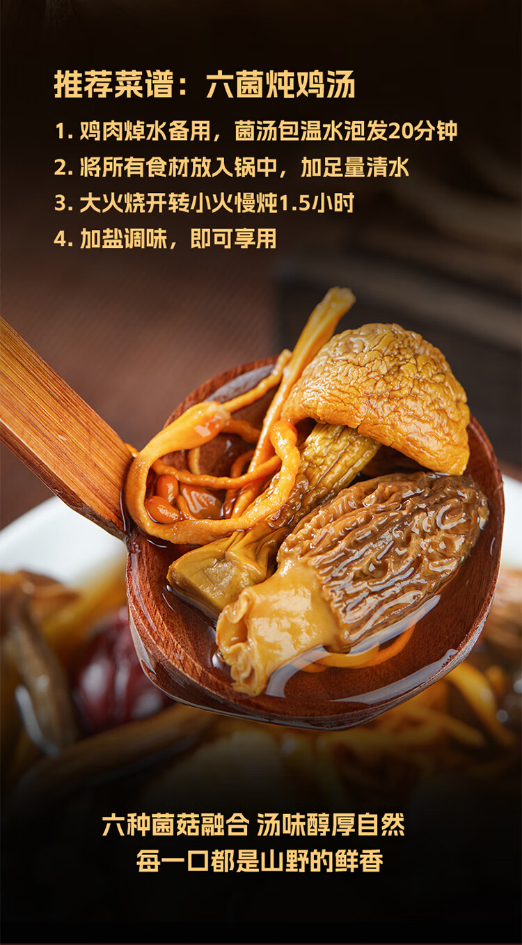 金唐六珍菌菇汤包120g(60g*2袋)羊肚菌松茸山珍干货火锅煲汤食材