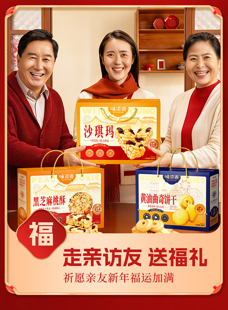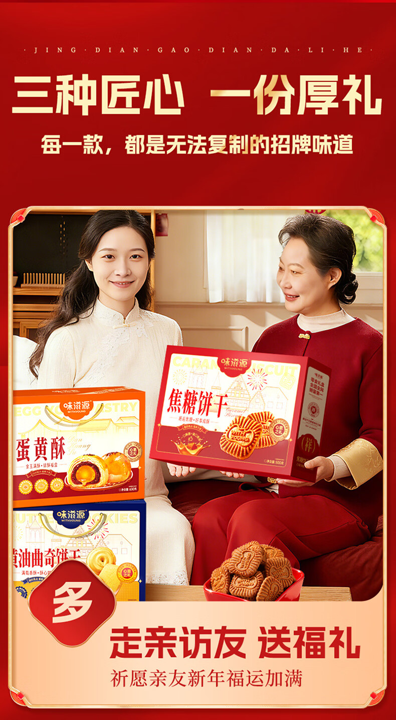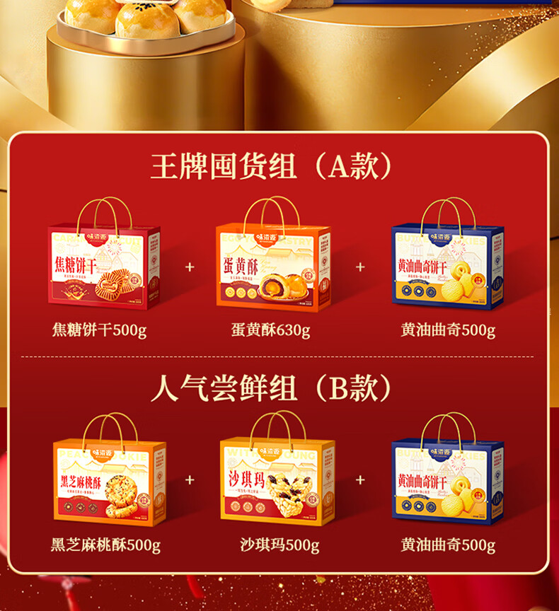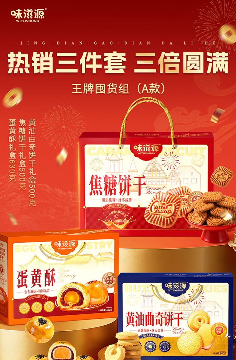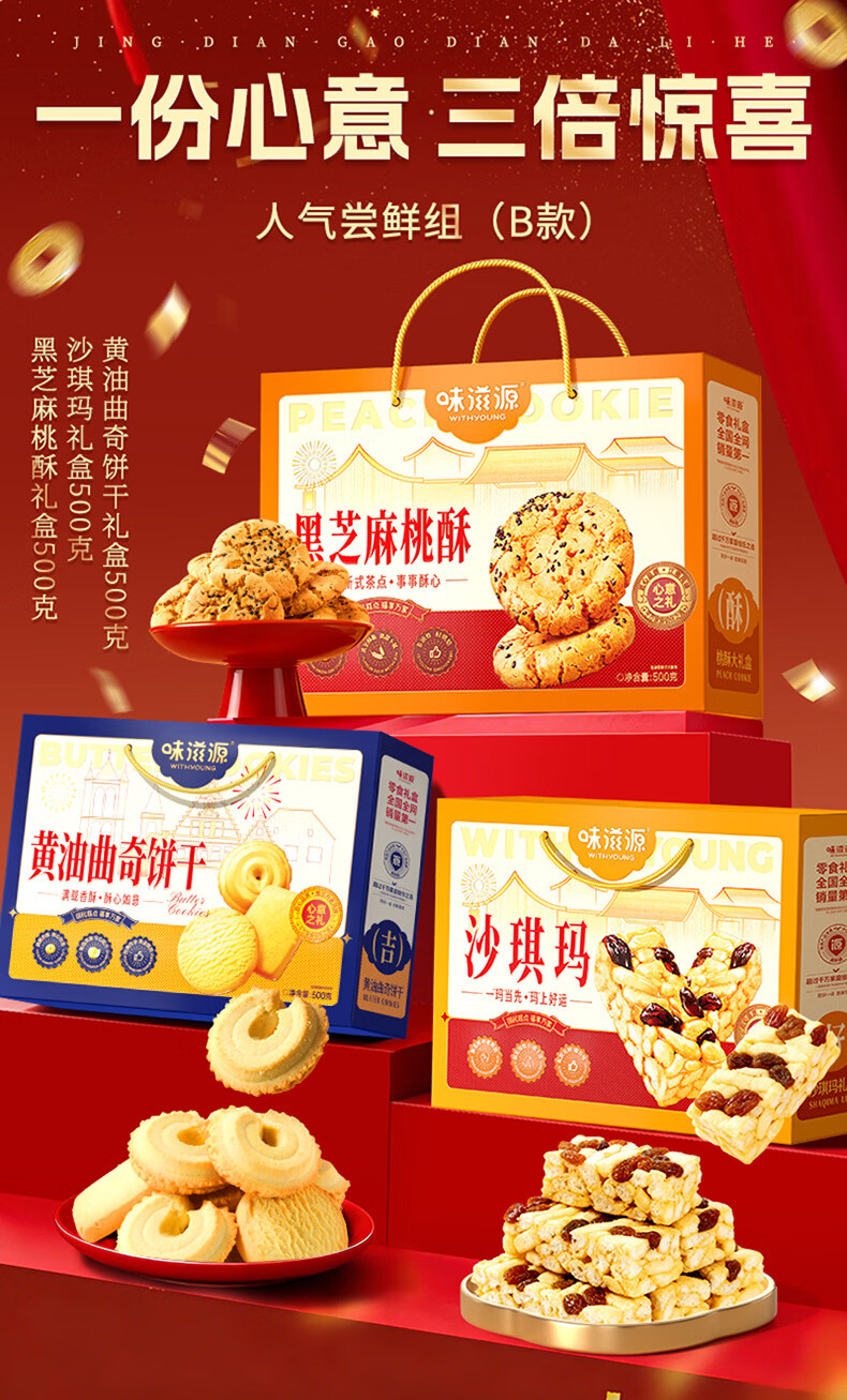 味滋源年货节糕点礼盒沙琪玛桃酥曲奇饼干传统糕点过年送礼企业团购 【三盒超值装】桃酥+沙琪玛+黄油曲奇