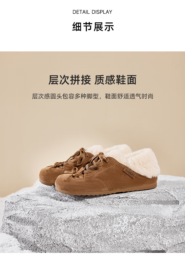 FZT包根雪地靴棉拖鞋女2025冬季新款厚底防滑带毛绒休闲鞋棉拖鞋男 浅卡其 36-37 标准码【内长225mm】